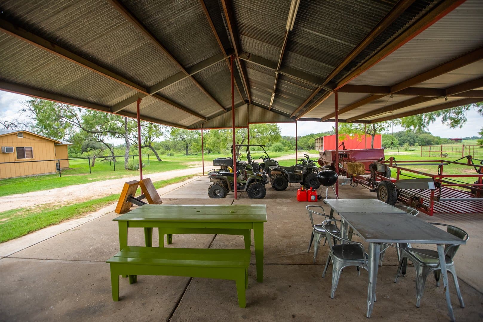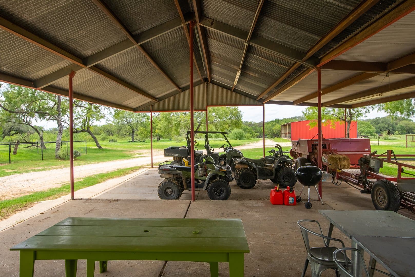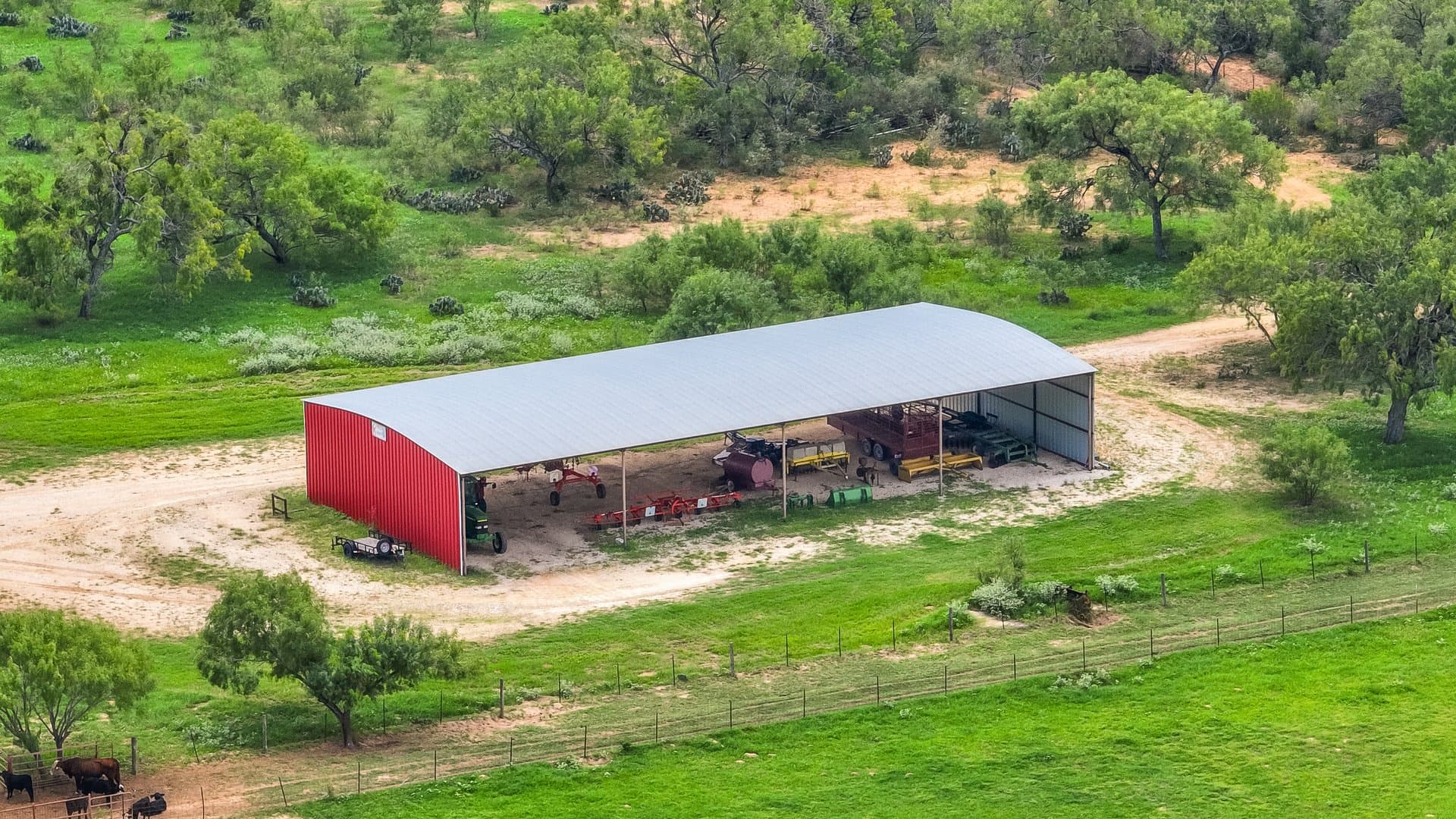 The ranch is unique in the fact that it has numerous improvements, and no expense has been spared. The ranch includes 2 Carrizo Irrigation wells and 2 domestic wells. The 3 center pivots on the ranch irrigate approximately 162+/- acres in total. Water is also piped throughout the ranch to a centrally located set of valves. There are two barns on the ranch that are utilized for hay storage, one being 5,000 sq. ft. and the other 8,400 sq. ft. as well as a 4,500 sq. ft. equipment barn and a smaller equipment barn located by the house. The ranch is cross-fenced and has a well-thought-out set of pens that are centrally located for ease of penning, rotating, and working cows. There is a well-built, 3 BR/2B ranch house that is located near the pens. Electricity is provided by Medina Electric Co-Op.