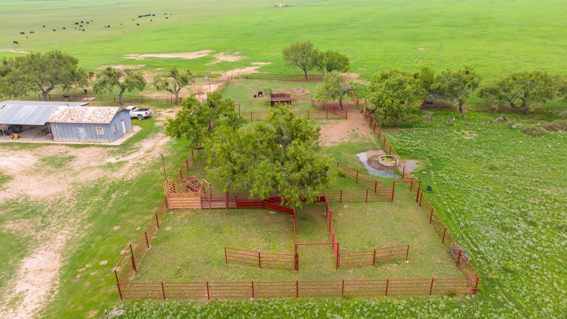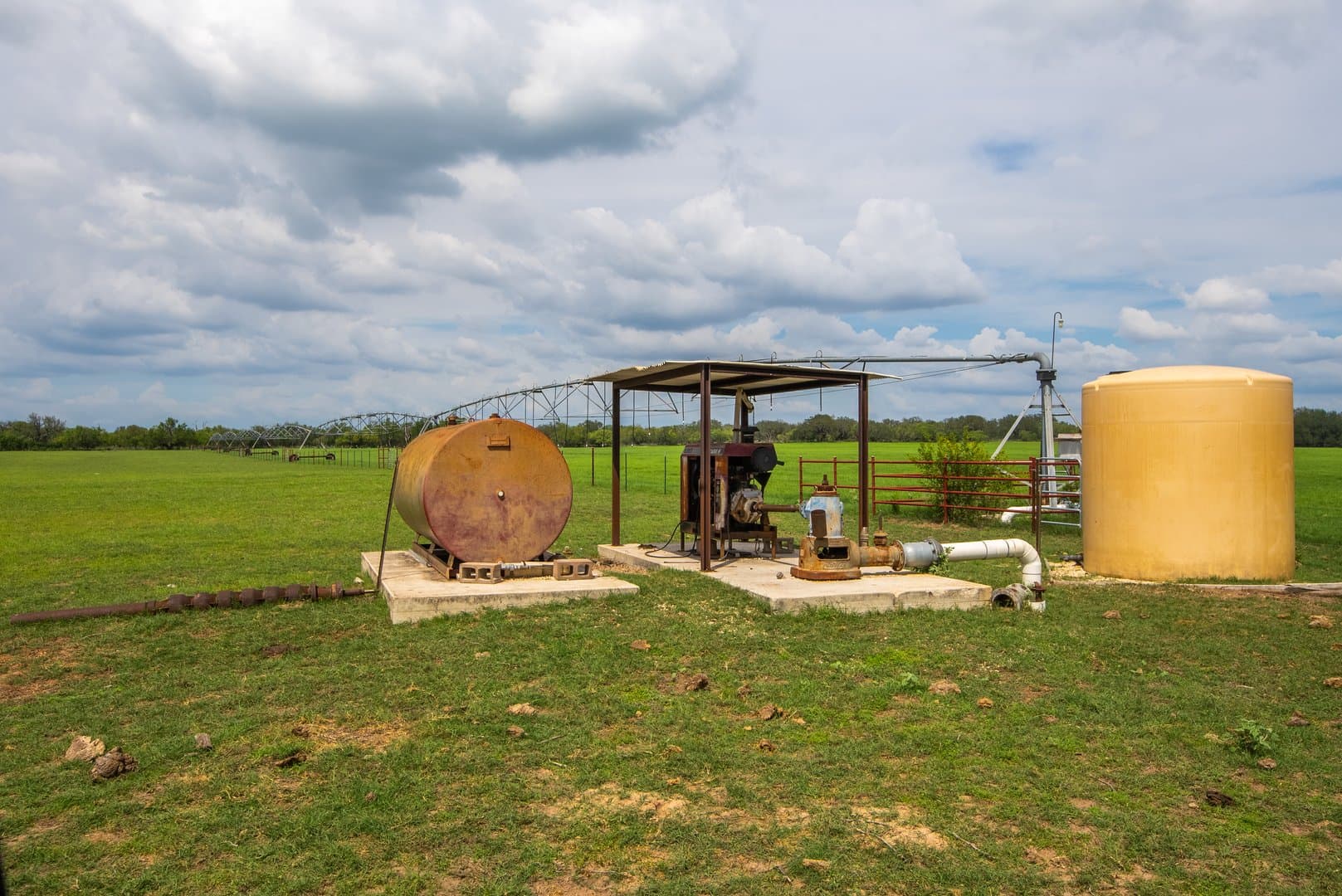 The R&G Ranch boasts numerous water wells including 2 Carrizo Irrigation wells, one of which can provide water to all 3 center pivots. There are also 2 domestic wells, 1 of which provides water to the house/pens. The Carrizo well in the Southwest corner of the ranch was drilled in 2010 and is approximately 387 ft. deep, according to the well report. The Carrizo well in the Northeast portion of the ranch is inoperable. There are 3 tanks located on the ranch which provide ample water to the cattle and native wildlife. 2 of the tanks are supplemented by the Carrizo well and the smaller tank can be filled with the domestic well. Black Creek enters the property on the western fence line and traverses the ranch. Large Oak trees line Black Creek and offer great roosting sites for turkey.
