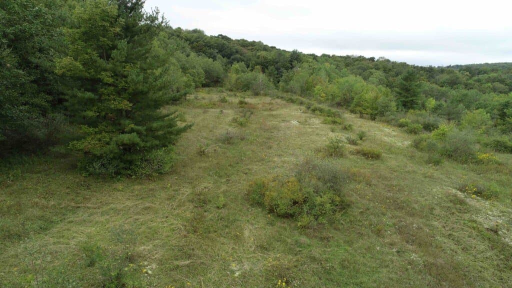 The natural shale base entrance area allows vehicles to easily enter the property to reach an open, but private high and dry pinnacle, with views and building sites. My first visit was on a hot afternoon. After admiring the views and building site potential, I quietly walked into the woods and within minutes disturbed two large bucks that had bedded down in the cool shade. I enjoy seeing wildlife, especially mature, wary deer. Like ourselves, they seek comfortable areas to relax and not be disturbed!