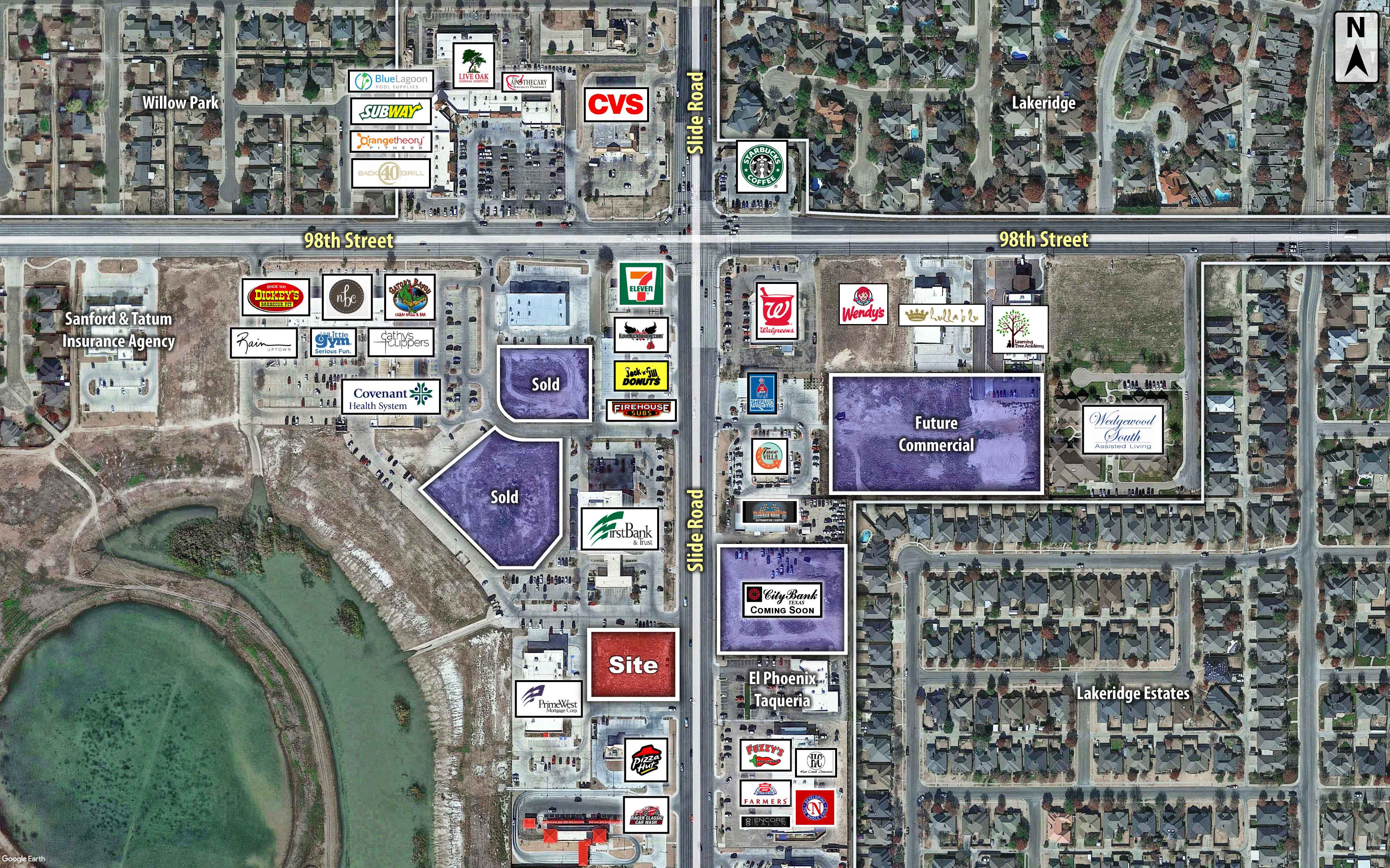 Prime land in the heart of growing southwest Lubbock. This tract is strategically placed in the middle of this retail area and has great visibility. Businesses in the area include Walgreens, CVS, First Bank & Trust, Prime West Mortgage, Fuzzy’s, Pizza Hut, Taco Villa and more.