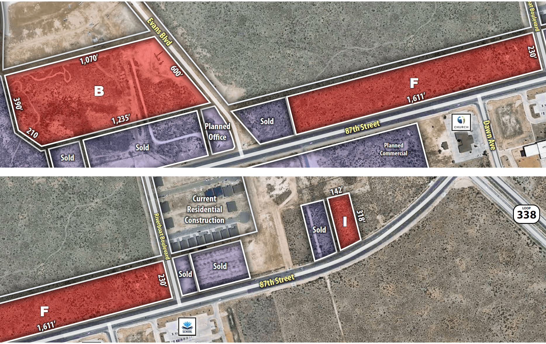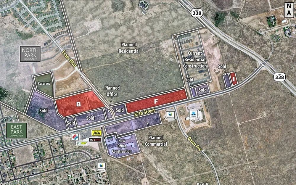 This property sits north of 87th Street on the both sides of Evans Boulevard between the Andrews Highway & Loop 338.