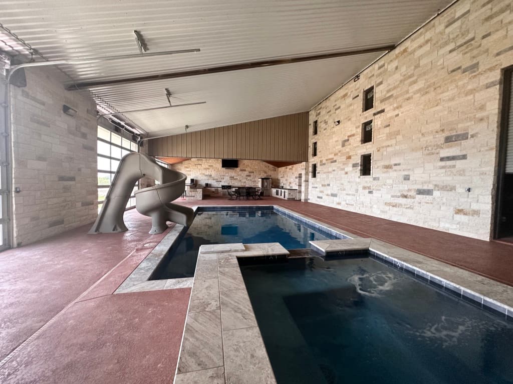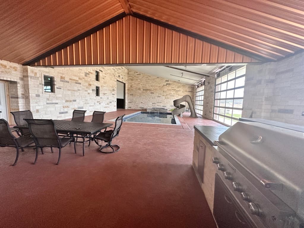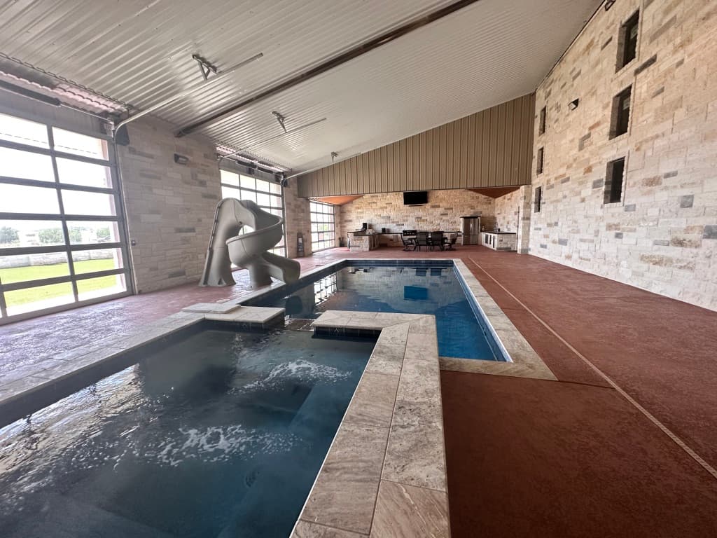 This 610+/-acres is located west of San Angelo just off of Hwy 277 near Hawkins and Bronte. The land offers high hills, bottom land, heavy cover of mesquite, cedar & native brush. The ranch is high fenced with two automatic gates. Wildlife includes oryx, blackbuck, aoudad, and axis and all will convey with the ranch. Throughout the ranch there are feeders including corn and protein, tower and/or ground blinds, and small food plots. Several stock tanks and one small lake provide water for the wildlife and livestock and offer opportunities for fishing. A water well provides water for the homes and shop/barn. Improvements consist of a 15500 sq ft lodge with 5 bedrooms, 5 full baths, half bath, commercial style kitchen, granite and high end stainless appliances, game/living room with bar, vaulted ceiling, and an impressive stone fireplace. The 2nd home is 3 bedroom, 2 bath with granite countertops, carpet and tile, tray ceilings, and covered porches. The 3rd home is a 3 bedroom 2 bath with rock fireplace. There is an additional bunkhouse with five separate units each with bedroom and bath. Located next to the bunkhouse is a lodge with full kitchen, living room, bathroom, vaulted ceiling, and outdoor fireplace and cooking area all under covered awning. In addition to these living facilities there is an inside horse stall area with 8 stalls, vet room, work out room, covered equipment parking, and arena. The master bedroom has a covered deck that extends from the second story to overlook the arena and the countryside. The arena is pipe with wooden inserts, pipe lead ups and boxes and has an outdoor kitchen with bathroom. Pipe working pens and around 40 paddocks complete the horse facilities. There is a newly completed indoor pool with rock finishes, hot tub, kitchen, fire pit, and play area with artificial turf. Three glass doors allow for combining the inside and outside areas. A large parking are complete the ranch for family or corporate entertainment.