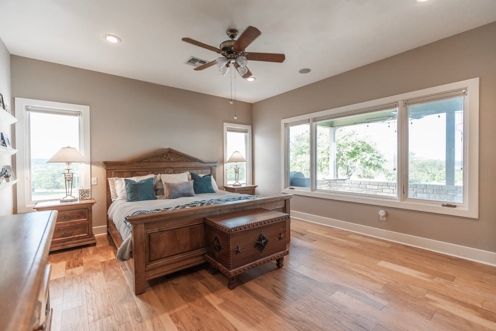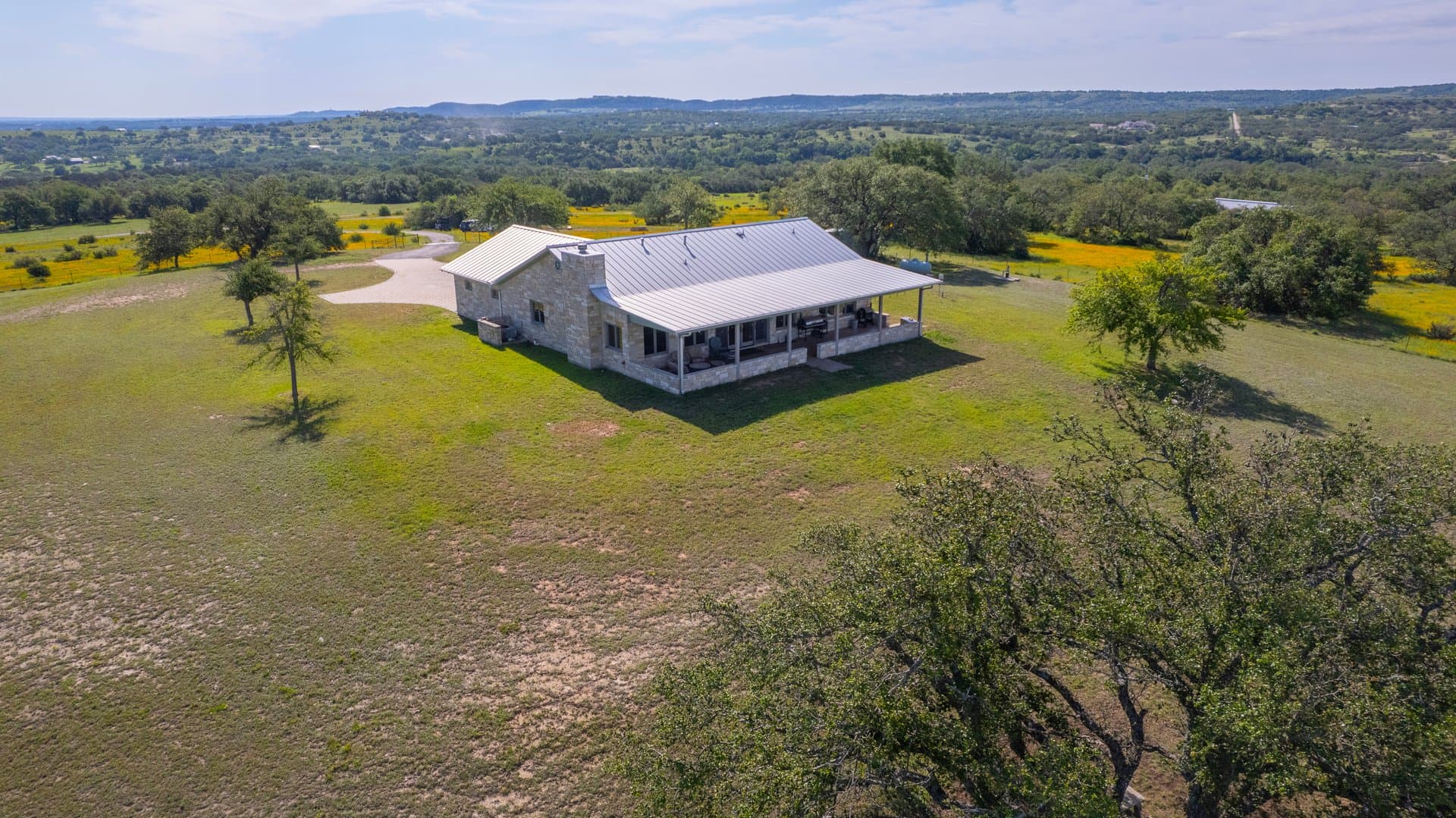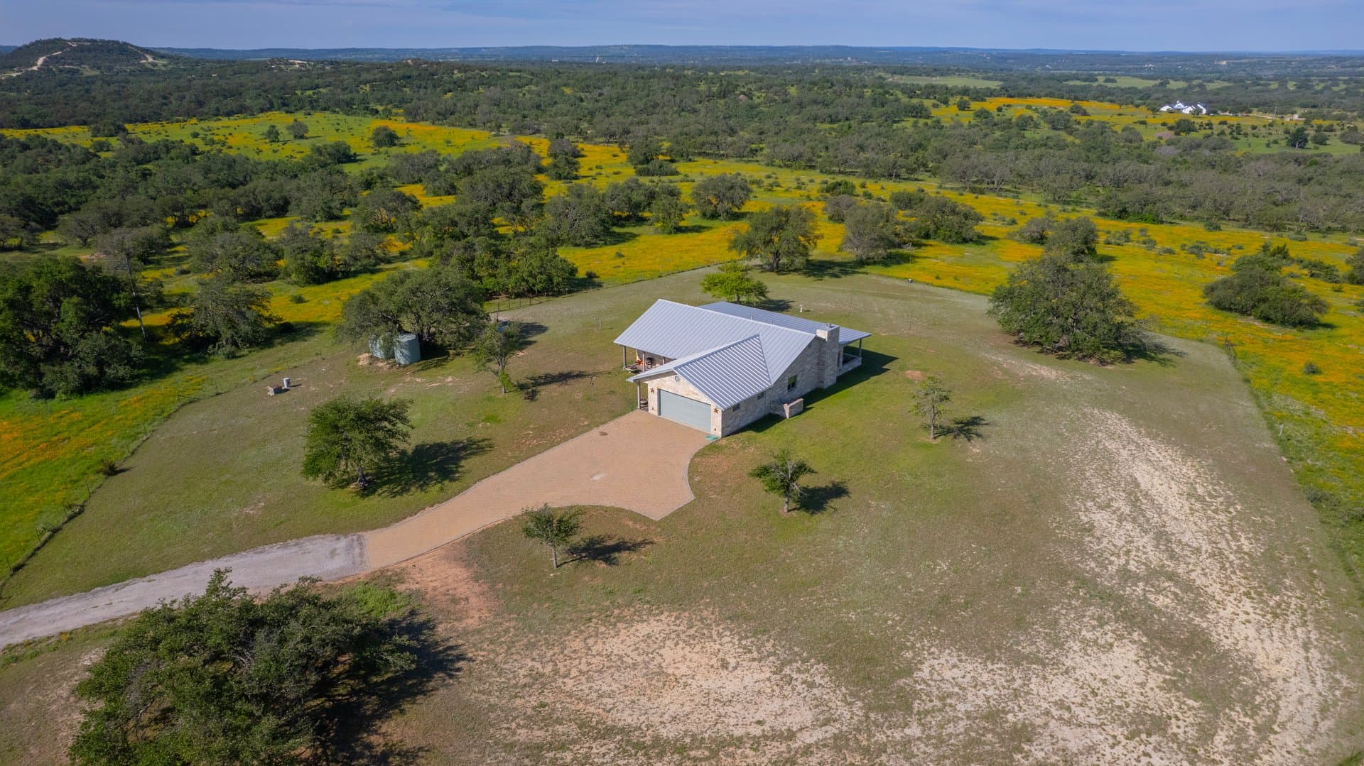 Located on the highest point, with 360-degree views, is a super gorgeous +/- 1,650 sf home built in 2006. This above average home is immaculately built with the intended use of a weekend home but could also serve a primary residence or guest home to a future residence. Built with white Texas limestone, a two-car garage and a metal roof, the home sits on the highest point on the property and features amazing views in all directions.