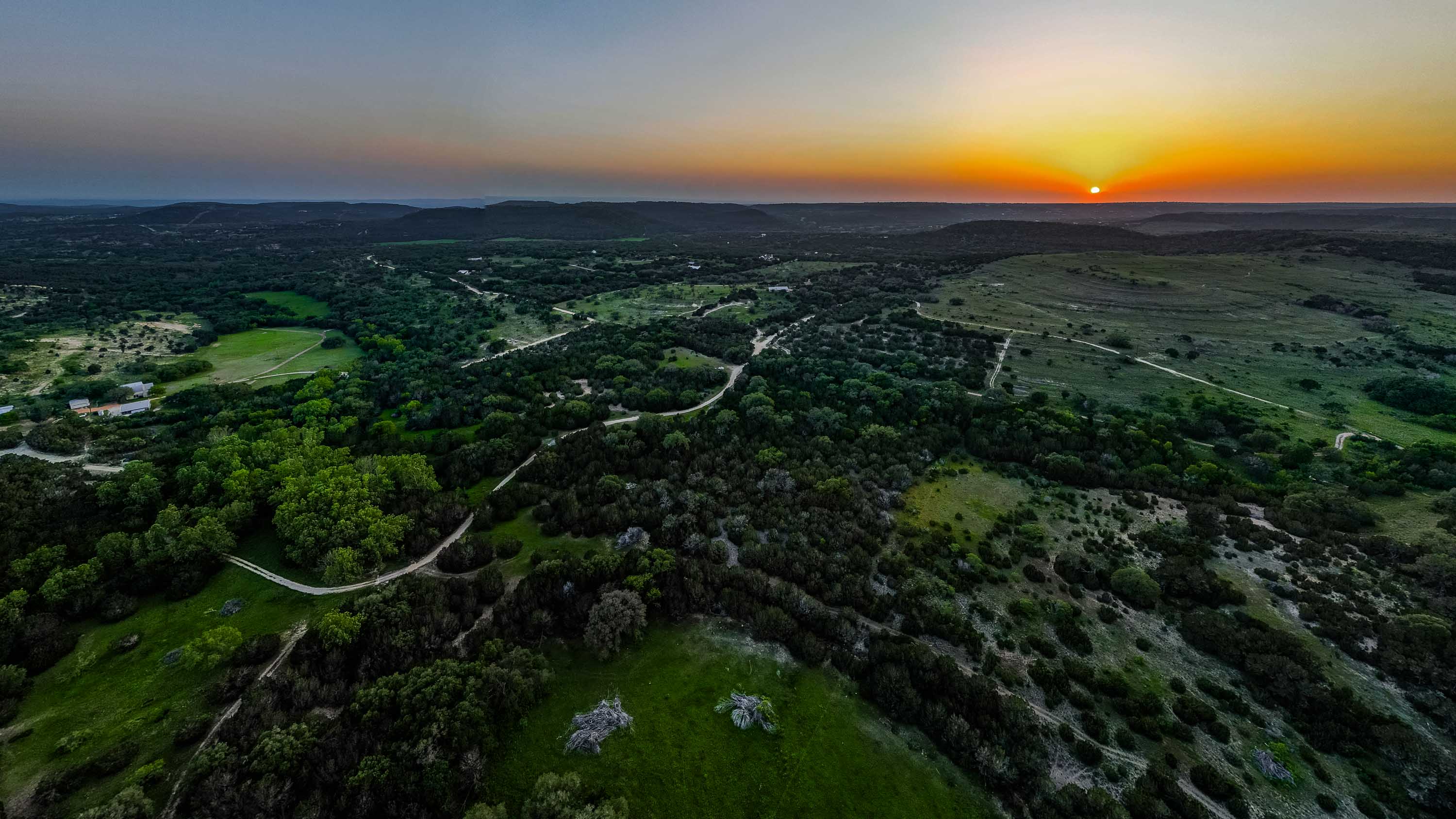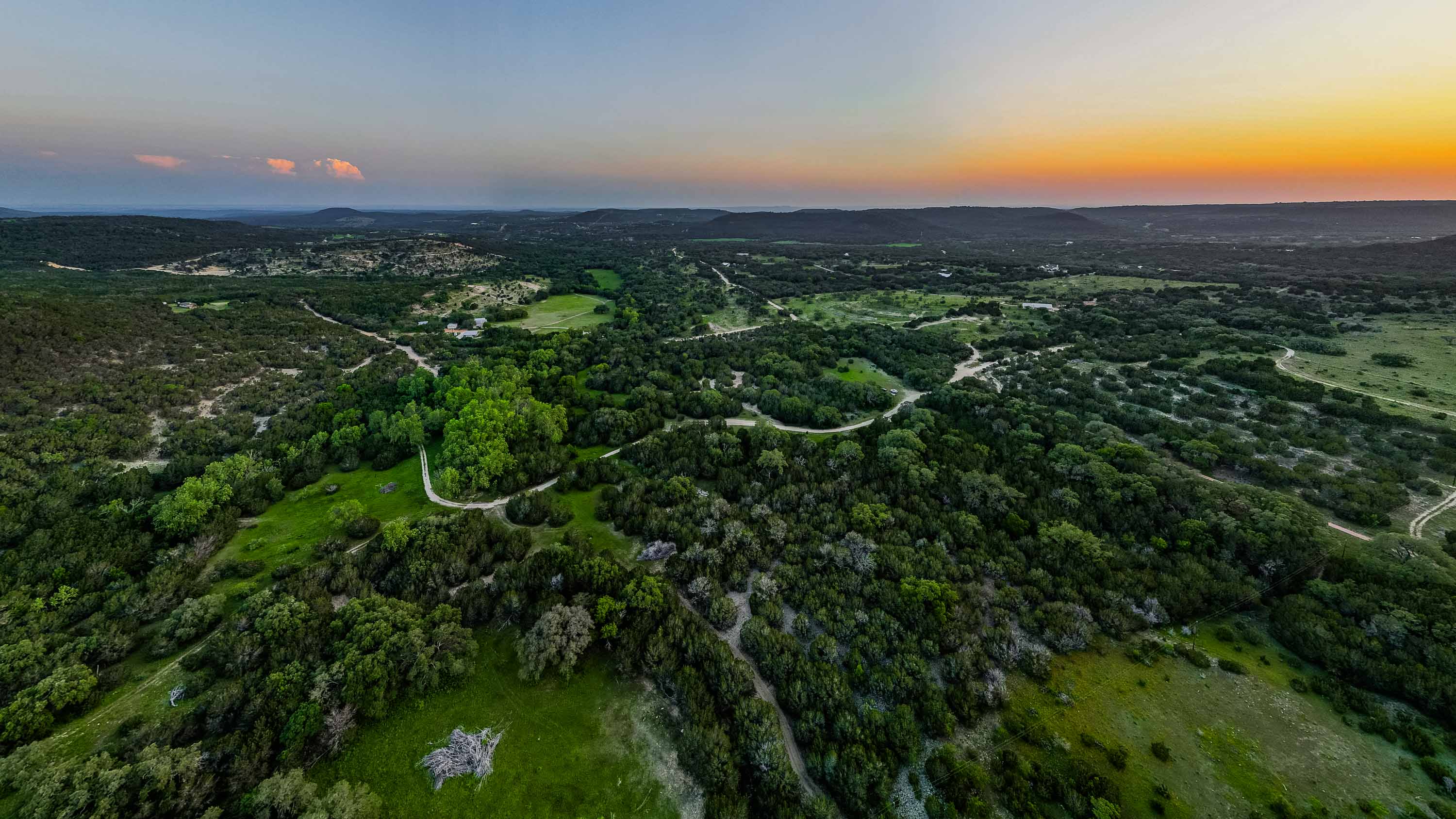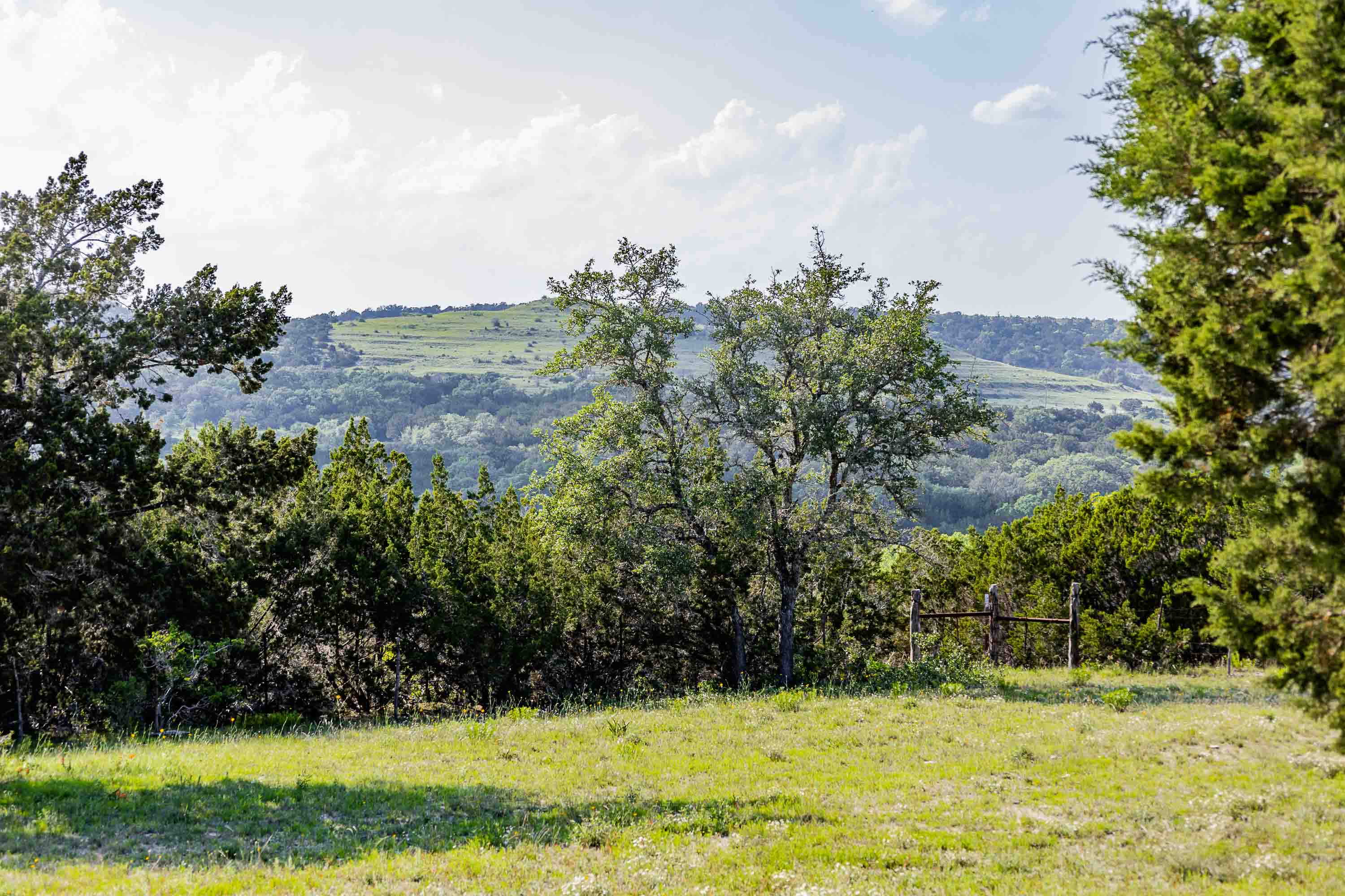 Wet weather Cottonwood Branch Creek runs out of Devils Hollow, through the property and drains into the well-known live water Cow Creek not far away. Elevation changes over 320 feet on the ranch from a low of 1,020 feet at the bottom of Cottonwood Branch on the south side of the property to a high elevation of 1,340 feet on the northeast part of the property. These high elevations create panoramic views of the surrounding Hill Country with multiple high locations and multiple canyons. The terrain is rough, rocky and dramatic and includes some very interesting limestone shelves and outcrops. The soil supports native oak, elm, juniper, and mesquite trees as well as native grasses and other native vegetation. Wildlife includes whitetail deer, coyotes, turkeys, mourning dove, and many other native wildlife species. The property is currently used for grazing, recreation and hunting.
