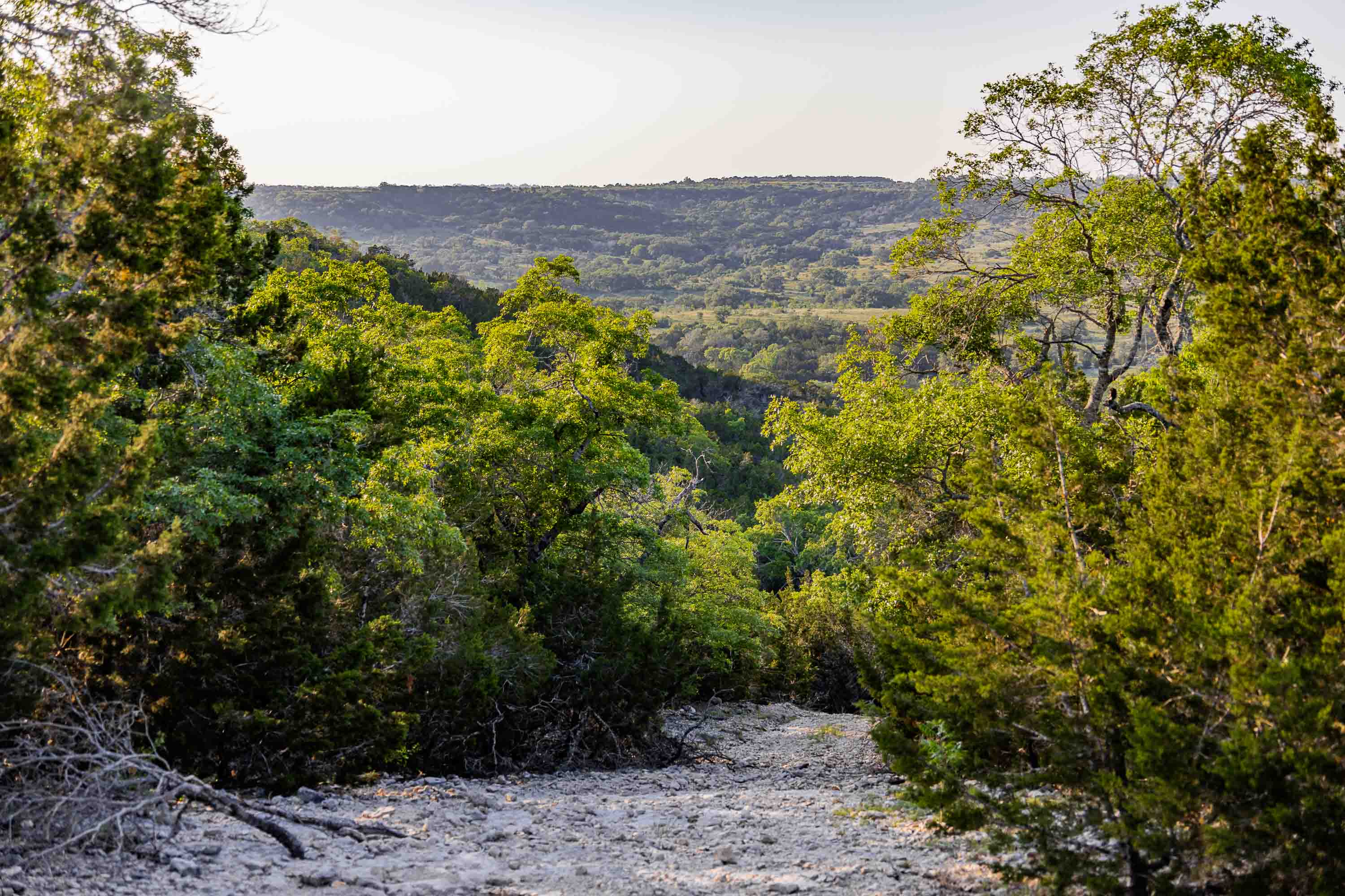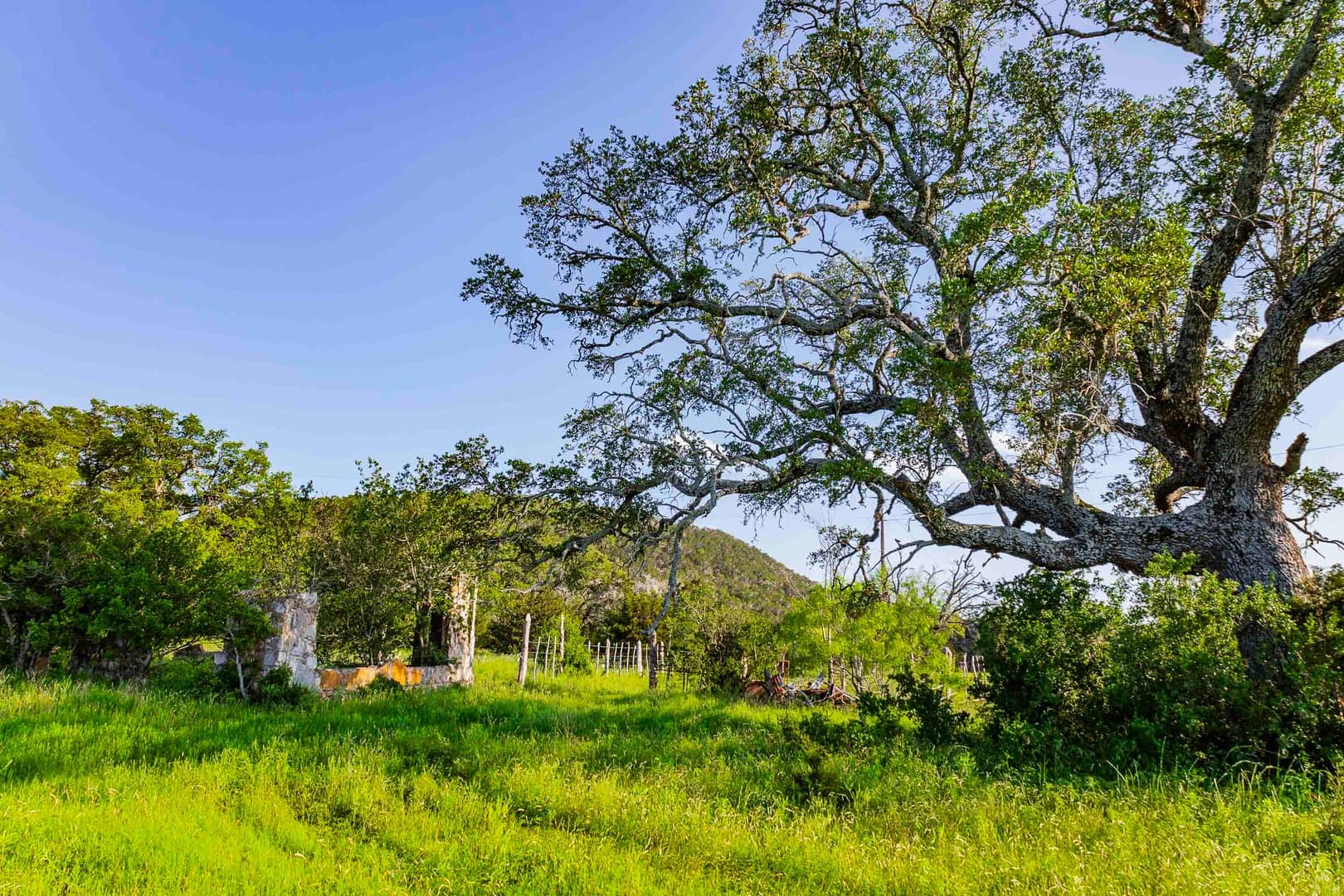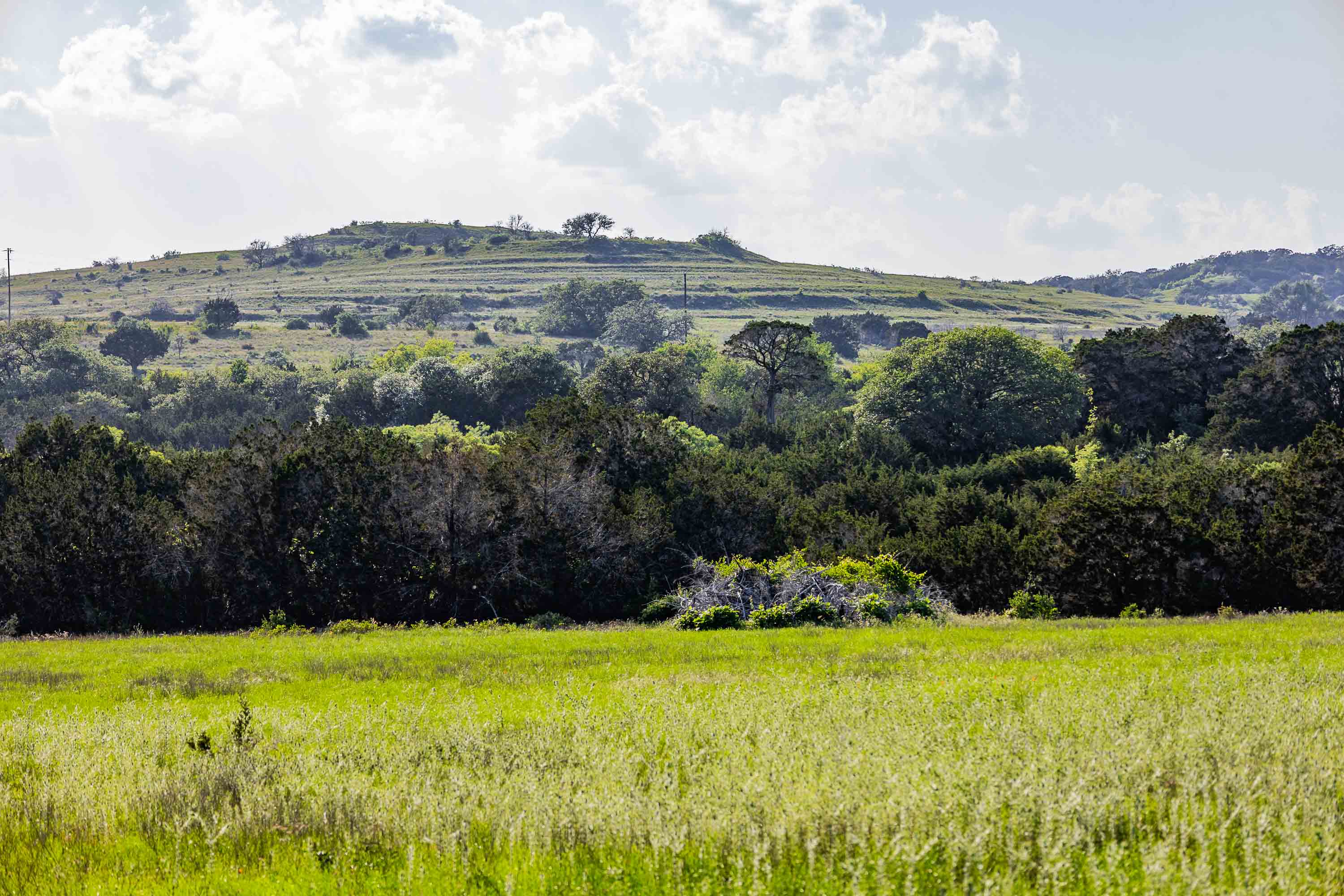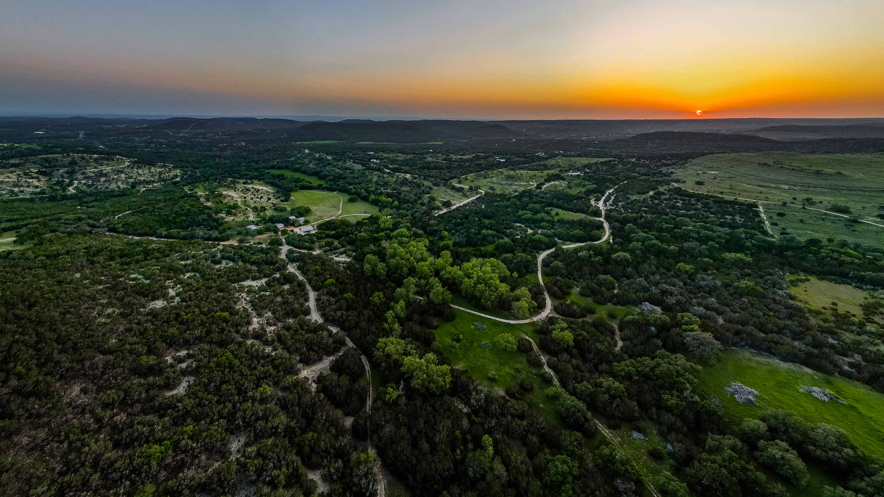 Wet weather Cottonwood Branch Creek runs out of Devils Hollow, through the property and drains into the well-known live water Cow Creek not far away. Elevation changes over 320 feet on the ranch from a low of 1,020 feet at the bottom of Cottonwood Branch on the south side of the property to a high elevation of 1,340 feet on the northeast part of the property. These high elevations create panoramic views of the surrounding Hill Country with multiple high locations and multiple canyons. The terrain is rough, rocky and dramatic and includes some very interesting limestone shelves and outcrops. The soil supports native oak, elm, juniper, and mesquite trees as well as native grasses and other native vegetation. Wildlife includes whitetail deer, coyotes, turkeys, mourning dove, and many other native wildlife species. The property is currently used for grazing, recreation and hunting.