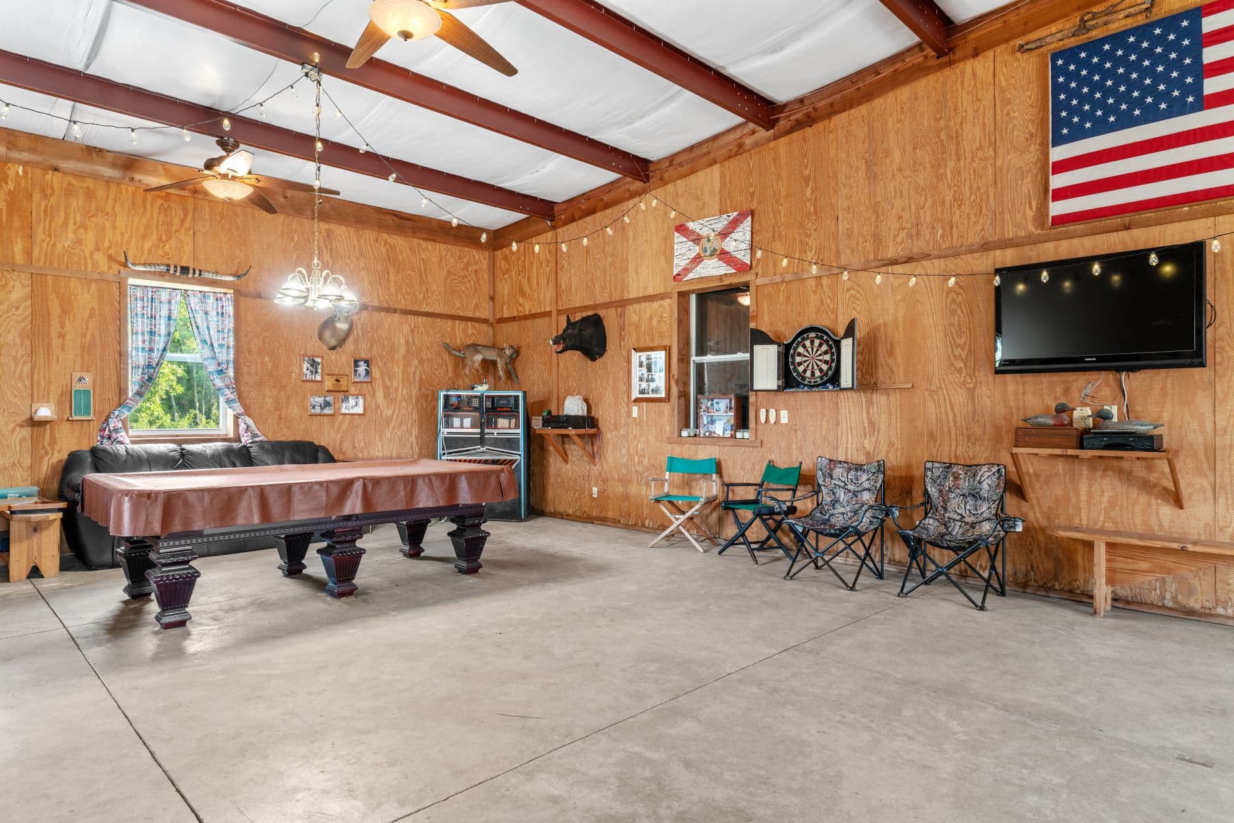 Enjoy the picturesque sunsets on the private dock, while casting a line for largemouth bass on this 13-acre private fishing pond. With 225 feet of direct access onto Lake Buffum, you will have 1,268 acres of ideal fishing for largemouth bass, bluegill, and catfish right from the shoreline. Imagine waking up to the tranquil sound of lapping waves and the promise of a day filled with fishing adventures just steps away from your doorstep, without the hassle of traveling leaving you with more quality time spent outdoors. Explore winding trails of native oak hammocks and pine forests, buffered by 3,178± acres of conservation land. Enjoy the outdoors and all of the wild game this property has to offer! There are two deer stands and three wildlife feeders providing everything needed for plenty of fauna.
