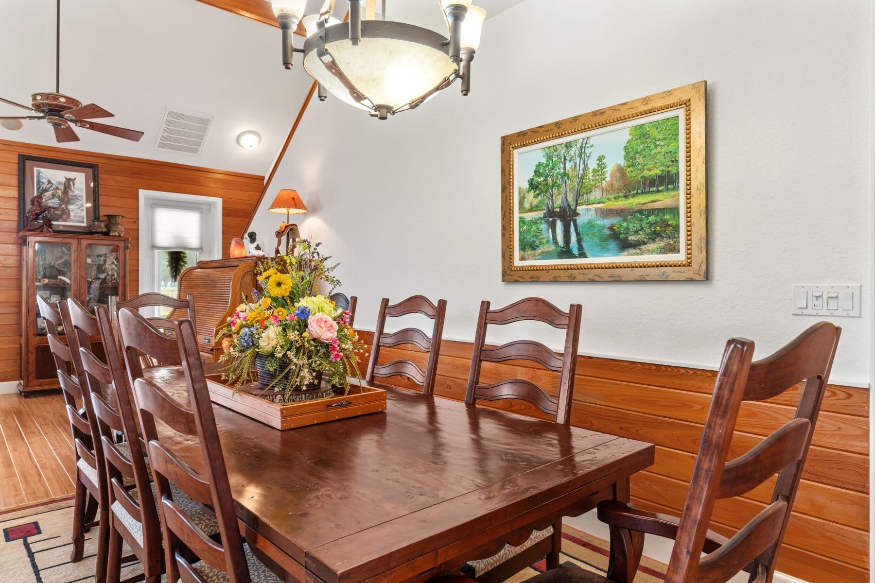 The custom-built main house, designed for entertaining and family gatherings offers glorious waves of natural sunlight and spectacular views of the surrounding ranch. The welcoming front porch boasts gorgeous sunset views across Lake Buffum and the land. The timeless exterior is built to withstand the Florida seasons with a metal roof, and a whole home generator. As you step through the front doors you will be welcomed into the open and airy main living area that flows seamlessly into the dining room and kitchen. Custom woodwork, vaulted ceilings, hardwood floors, exposed beams, high-end finishes, and meticulous maintenance are some of the reasons why this home makes such a unique and lasting impression. The two-story home provides extreme privacy as the second bedroom and full bath are upstairs, next to the loft office. The master bedroom suite provides a sanctuary to relax with a gas fireplace, an ensuite bathroom with double vanity, walk-in-closet, and private access to the front porch where a hot tub awaits for you to unwind and enjoy the sunset.