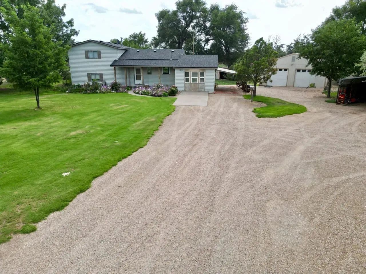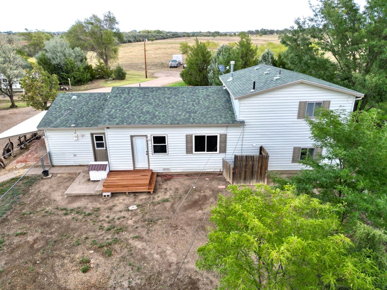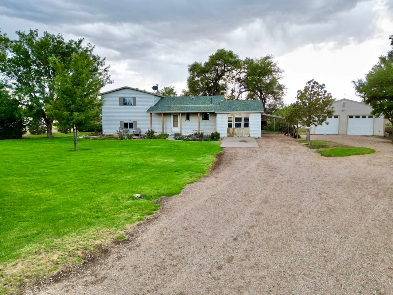 Enjoy country living on 3.45-acres, sitting on the edge of Las Animas City Limits. This 3-bedroom, 1.5 bath home is tucked behind mature trees at the end of a paved road with surrounding open fields. Let the lush front yard and flowering plants welcome you onto the property. The open concept main level includes a newly remodeled kitchen with granite countertops, and luxury vinyl plank flooring that spans into the 2 separate living rooms. The lower level includes 1 bedroom, half bath, and a laundry space with a stackable washer and dryer. The upper level has 2 bedrooms and a full bathroom with a tub and shower combo. Allow the 2 large additional living spaces of the home meet your needs as you see fit. Included on the property is an attached carport, a 2-car carport, and a 2-car garage with a separate workshop. The workshop has 110v and 220v outlets. There is an assortment of established trees watered by a drip irrigation system allowing for shade and additional privacy. The back yard has a chain link fence creating a defined space. This property has so much to offer to a new homeowner, let it be you!