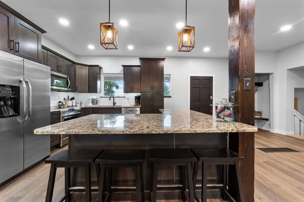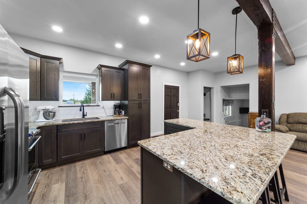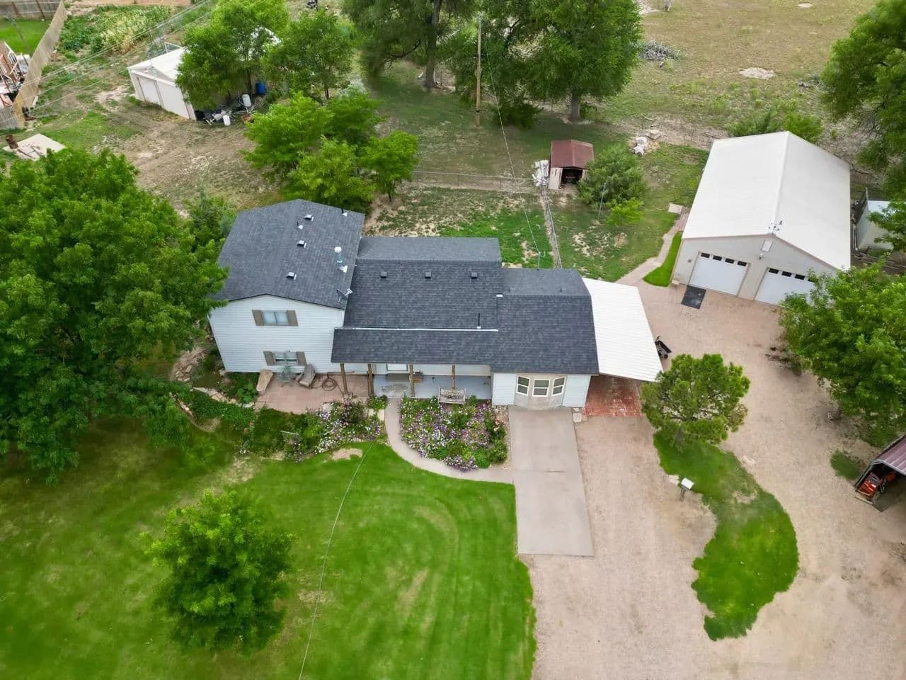 Enjoy country living on 3.45-acres, sitting on the edge of Las Animas City Limits. This 3-bedroom, 1.5 bath home is tucked behind mature trees at the end of a paved road with surrounding open fields. Let the lush front yard and flowering plants welcome you onto the property. The open concept main level includes a newly remodeled kitchen with granite countertops, and luxury vinyl plank flooring that spans into the 2 separate living rooms. The lower level includes 1 bedroom, half bath, and a laundry space with a stackable washer and dryer. The upper level has 2 bedrooms and a full bathroom with a tub and shower combo. Allow the 2 large additional living spaces of the home meet your needs as you see fit. Included on the property is an attached carport, a 2-car carport, and a 2-car garage with a separate workshop. The workshop has 110v and 220v outlets. There is an assortment of established trees watered by a drip irrigation system allowing for shade and additional privacy. The back yard has a chain link fence creating a defined space. This property has so much to offer to a new homeowner, let it be you!