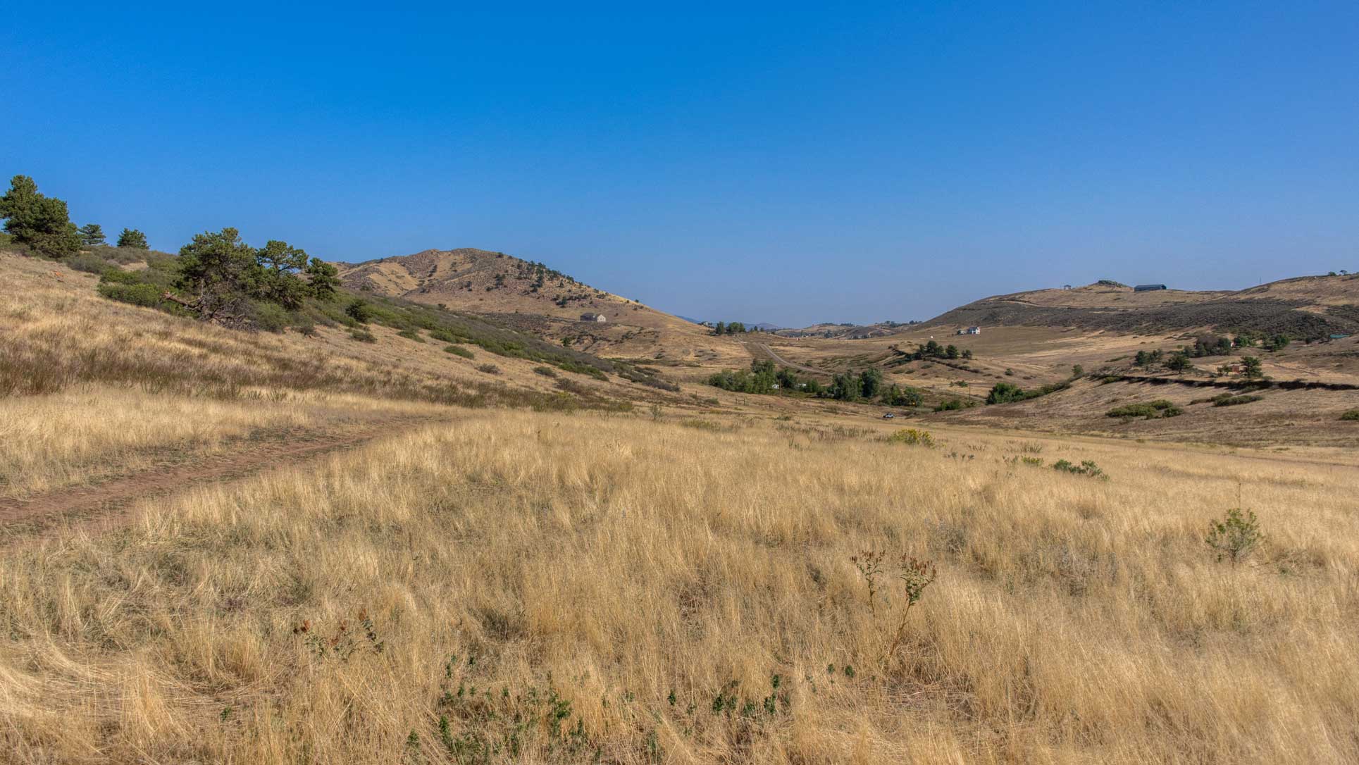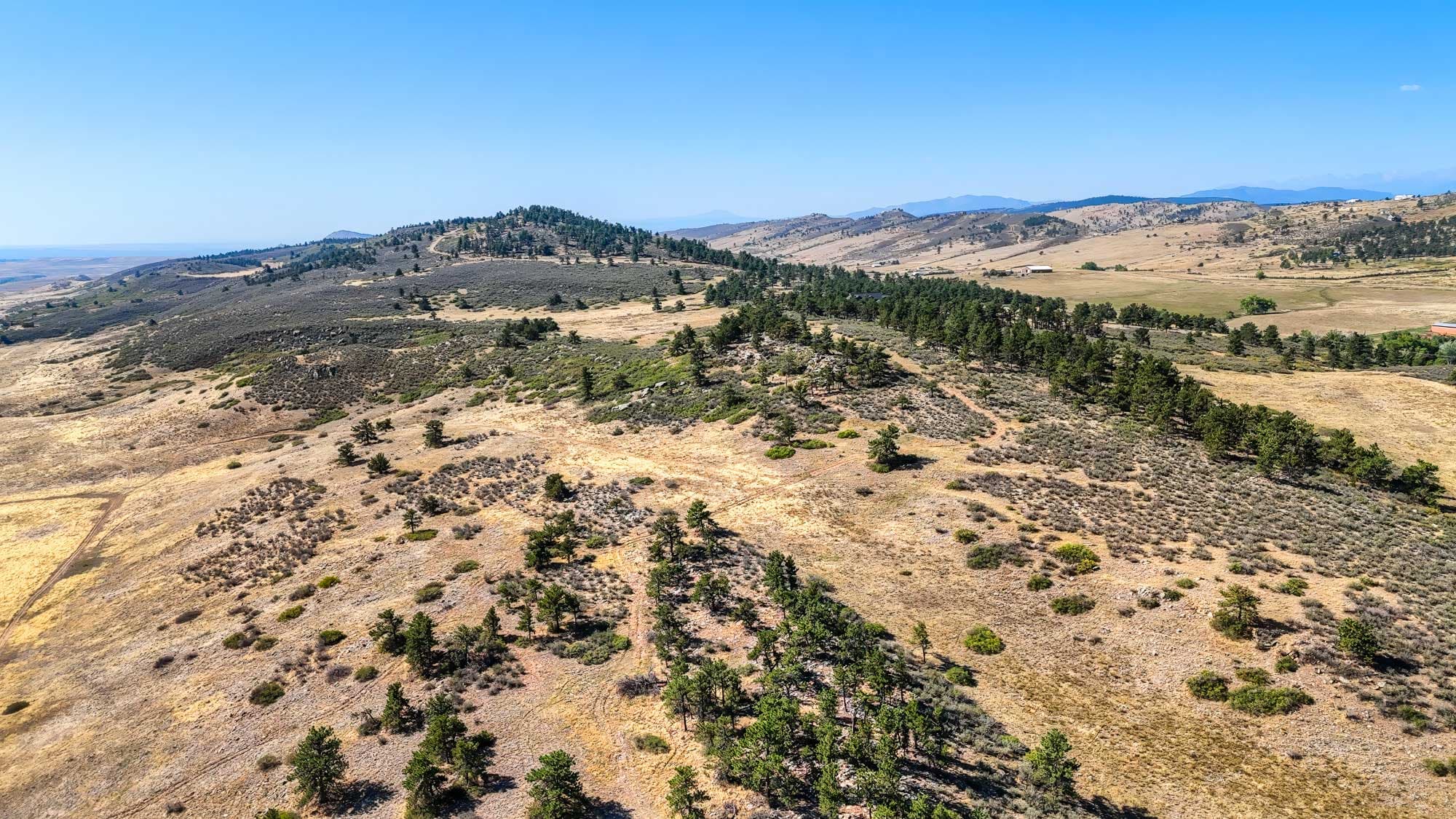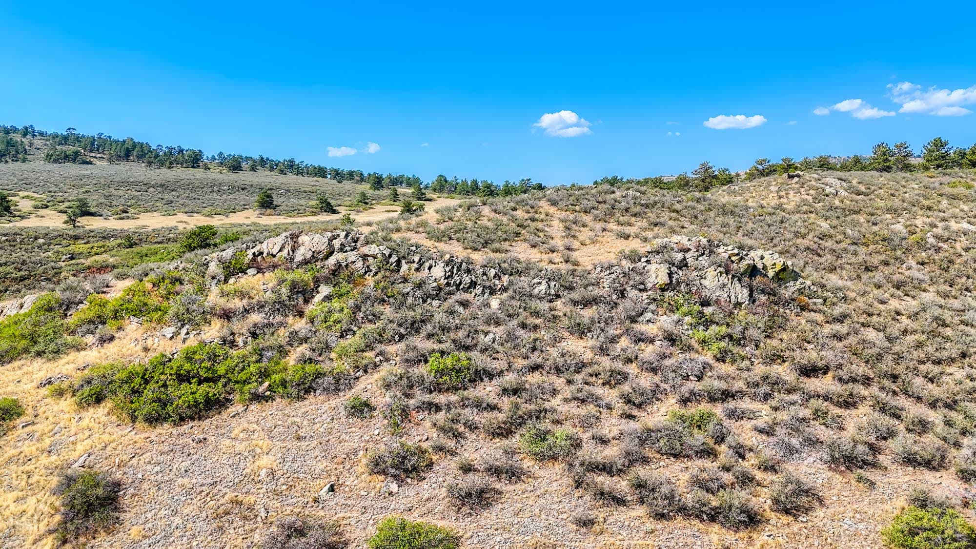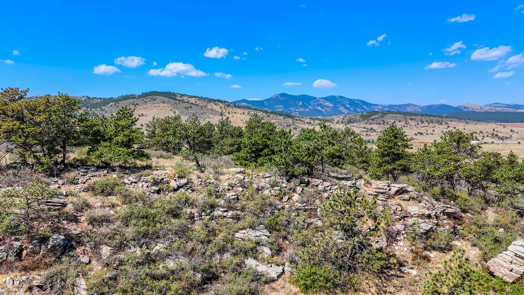 The approximate 106 acres consists of a large native grass valley to the east, with numerous moss rock ridges on the east and west, scattered with mature pines, Mountain Mahogany, Wild Plum and Choke Cherry in the riparian area. The 106 acres is divided into three contiguous parcels of 35 plus acres each, however, the seller will not entertain selling them separately. Although, this would be a perfect scenario for a family compound or ranch. The ridges all have excellent views that can never be obstructed. There are several suitable building sites to choose from at each vista. From the premier ridge top area on the ranch there is a breathtaking 360-degree view of the mountains, back ranges and Front Range, as far as the eye can see.