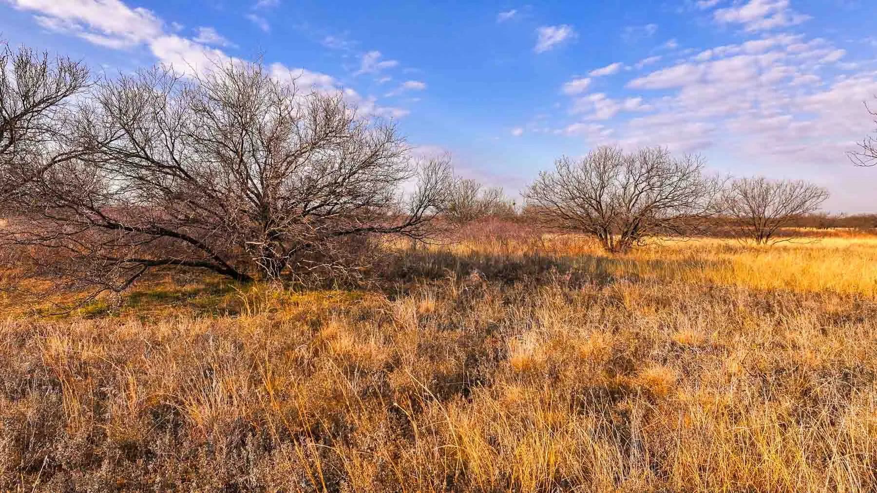 Quail Hollow Ranch is located in North Central Texas, south of Rochester on Highway 6. The property spans 1,370+/- deeded acres with slightly rolling terrain, featuring Indiangrass, little bluestem, side-oats grama, and buffalograss. A 340-acre Bermuda tract planted in 2019, along with cottonwoods, hardwood trees, Mesquite, and Sand Plums, adds to the scenic landscape. The property offers excellent quail habitat and abundant deer and hog hunting opportunities. Well-maintained five-strand barbed wire fences, 90 percent of which are under five years old, surround the property. Water resources include four wells (one unused) with potential for additional wells, providing water suitable for personal and ranching use.