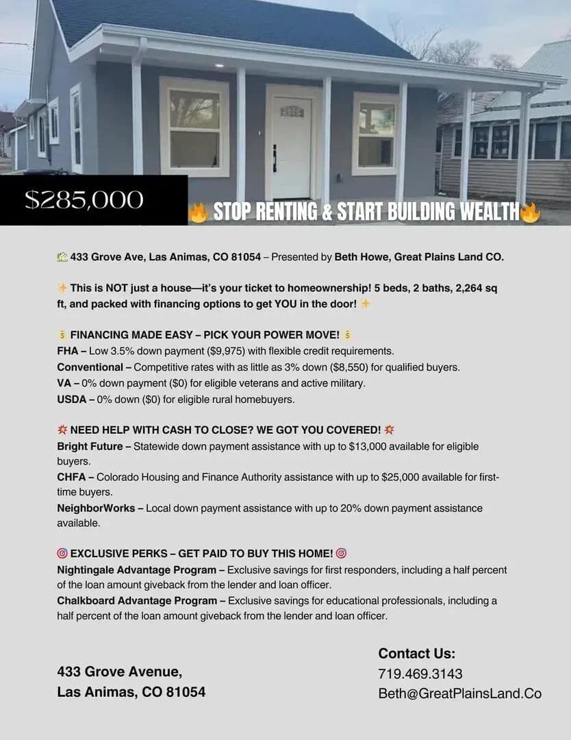 433 Grove Avenue, Las Animas, Bent County, Colorado