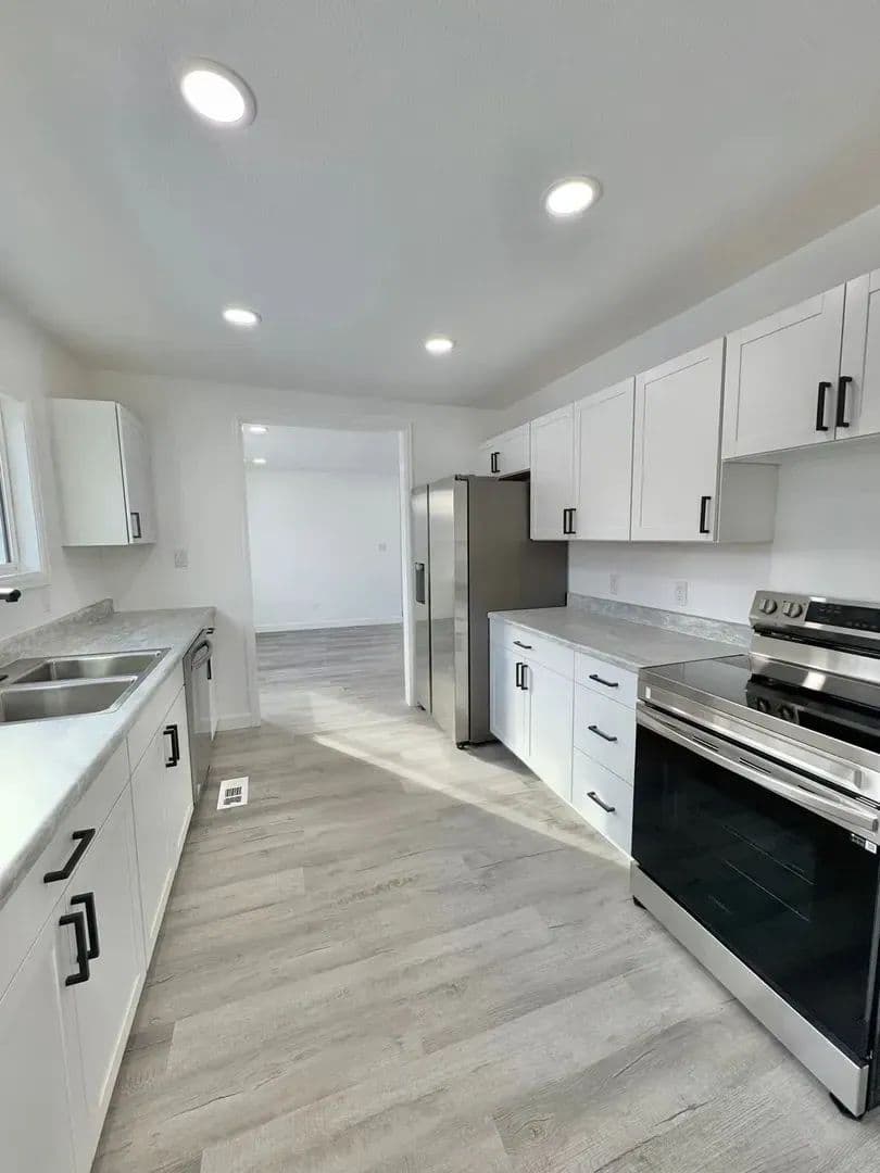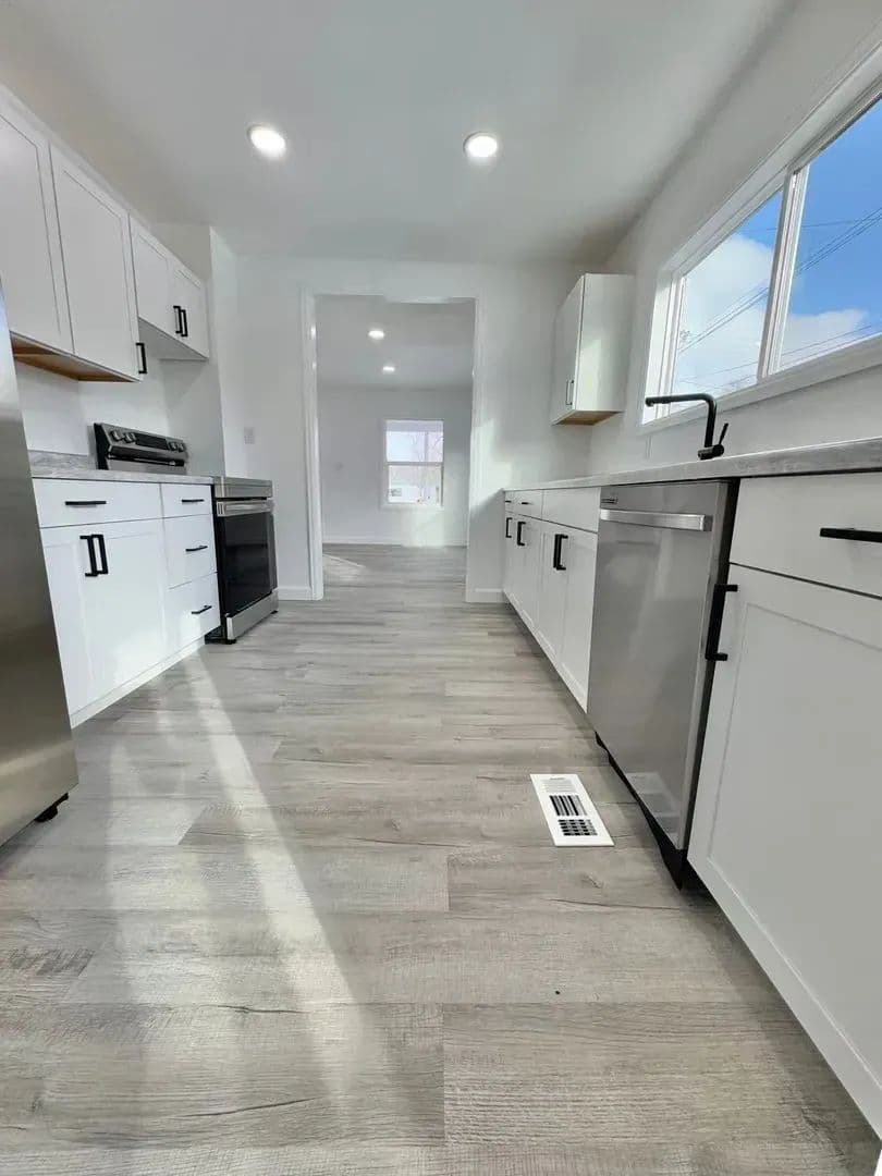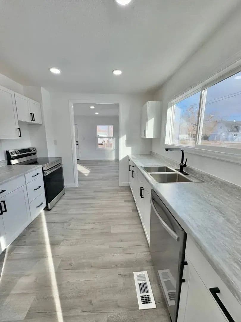 Do not miss out on this completely renovated 5-bedroom, 2-bathroom home located 1 block from the Elementary School and 2 blocks from the Intermediate and High Schools. Every inch of the interior and exterior has been made new, including the electrical wiring, light fixtures, plumbing, windows, doors, flooring, appliances, sidewalks, front porch, roof, and gutters. The main floor has 3 bedrooms with a full hallway bathroom and a master bedroom with attached full bathroom. Both bathrooms have a seamless tub and shower combo, with no caulking ever required. The basement has a large additional living room/rec room, and 2 bedrooms (non-conforming). In addition, there is a laundry/utility room tucked behind bi-fold doors. The entire home has luxury vinyl plank flooring throughout that is water proof and mildew resistant. At the front of the home sits a large porch with poured concrete creating an incredible outdoor living space that will stand the test of time. At the back of the home there is a nice sized backyard, a 1 car garage, and a 1 car carport. Purchase with confidence knowing that this home has been expertly renovated and completely move-in ready!