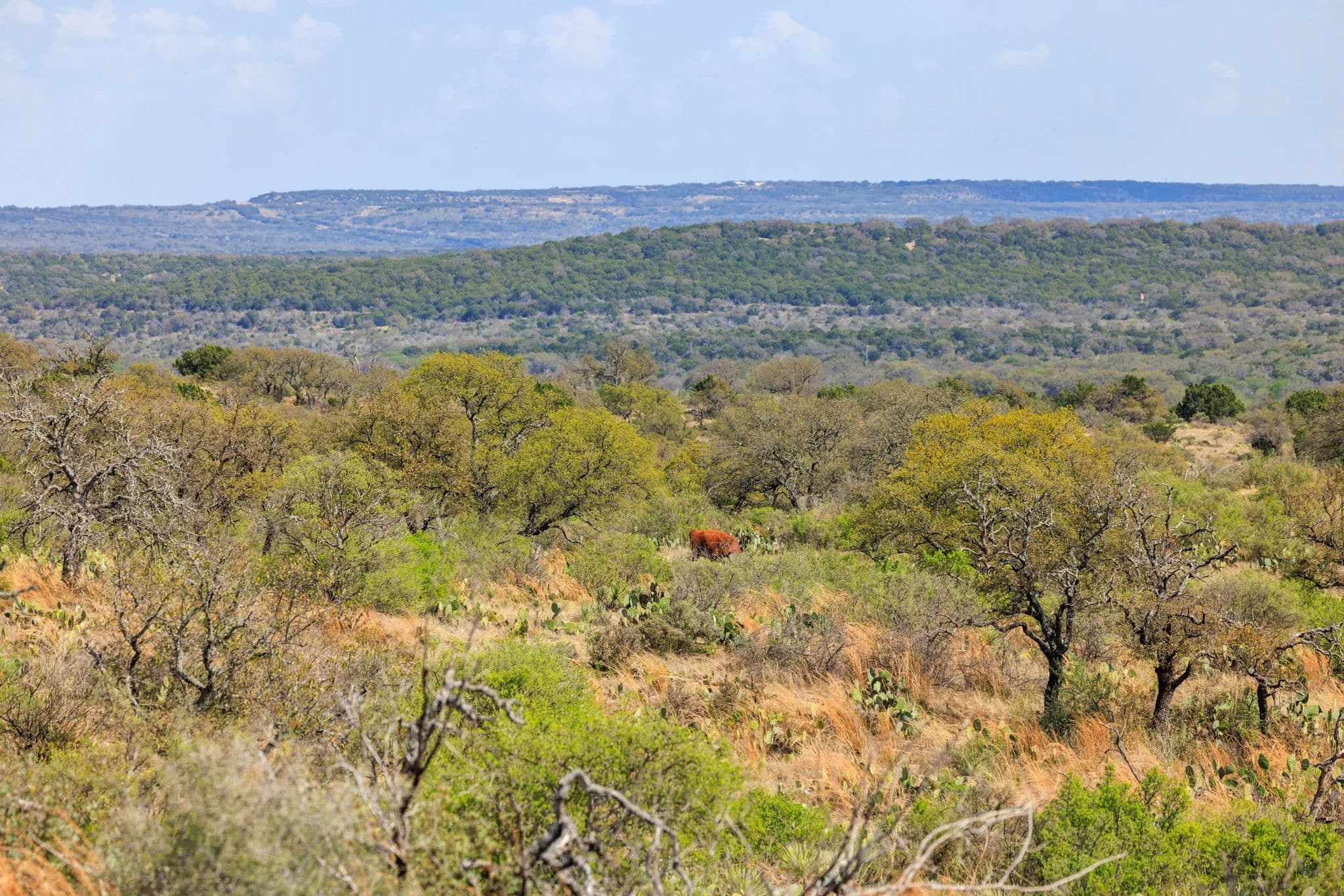 Many, Mini-Valley Ranch is in south-central Mason County’s Hilda community north of Doss. The ranch fronts county maintained, Onion Creek Road. The 601.55 acre Many, Mini-Valley is your opportunity to own a part of some of the most beautiful countryside in the Texas Hill Country. The ranch has been passed down through a number of generations of German heritage. Explore while enjoying the scenic far-reaching vistas it has to offer from its hill saddles and many ridgelines. Birds, whitetail deer, hogs, turkey, fox, coyotes, bobcats call this area home. Wildlife cover includes persimmon, white brush, agarita, cat claw, live oak, cedar elm, cactus and some juniper and at least one of the arroyos has a seasonal spring. A bonus is a comfortable, two-room bunkhouse with a bathroom. One room is a kitchen/living area, and second room is a bunk room. Ranch is served by a water well, concrete water storage tank and CTEC electric service. Ranch cannot be divided into less than 100 acre parcels.