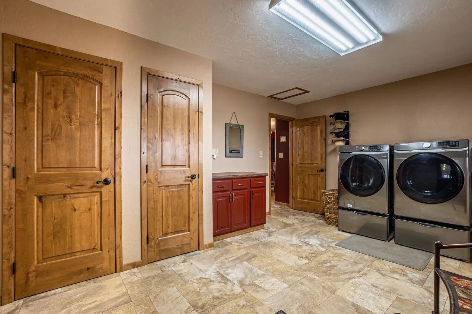 Laundry Room & Storage The laundry room offers a natural gas dryer hook-up and a free-standing utility sink. Ample storage includes multiple coat and vacuum closets strategically placed throughout the home.