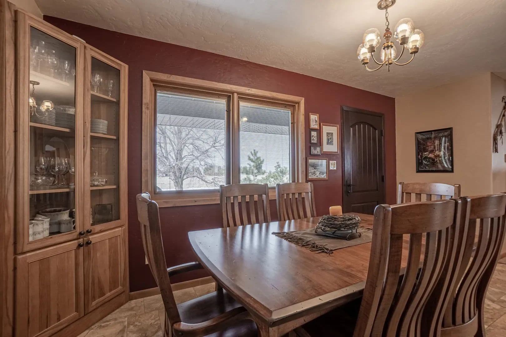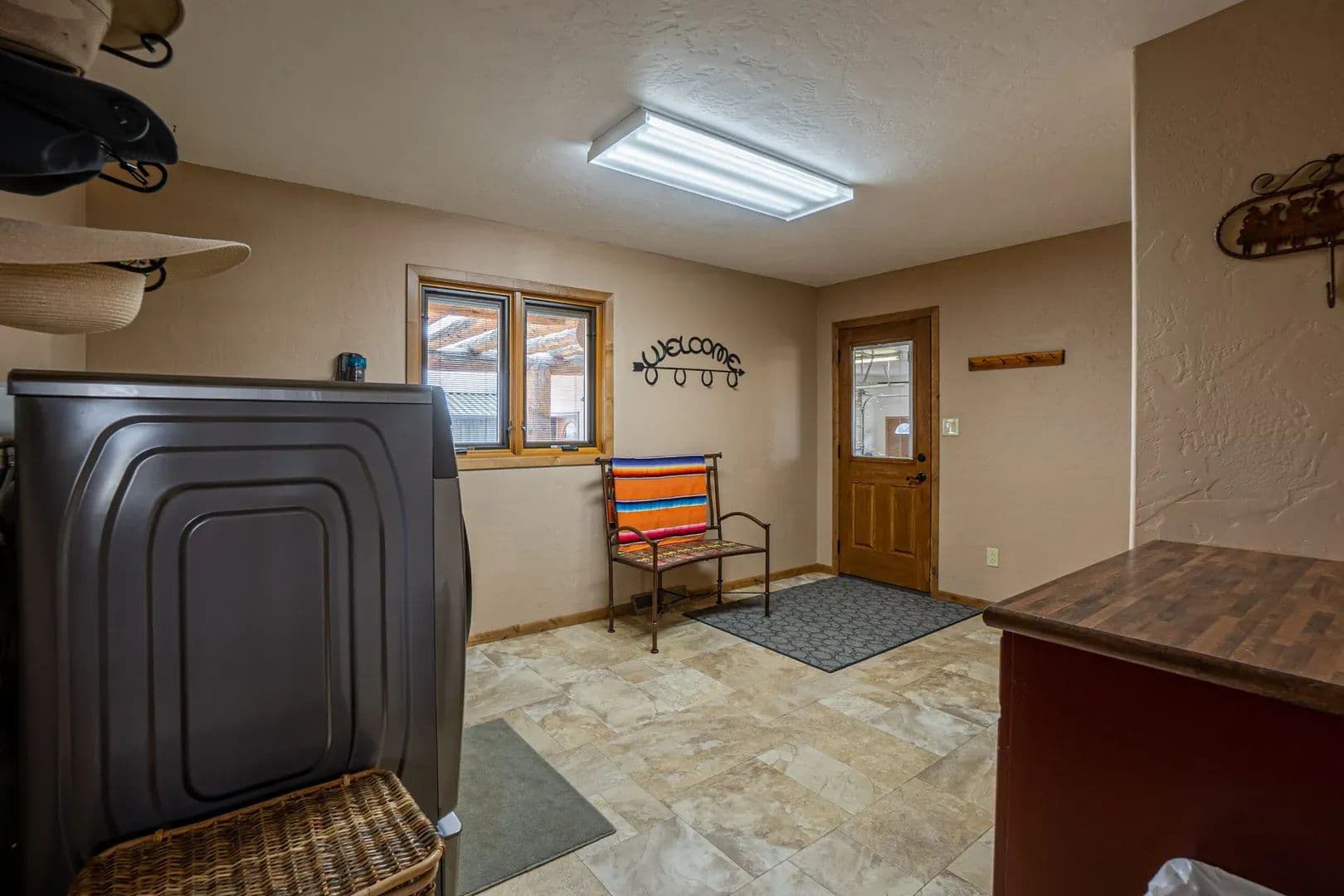 Entryway The welcoming front entry features a grand 96” tall by 42” wide door, with a 4’ electric cove heater ensuring year-round comfort right at the threshold.