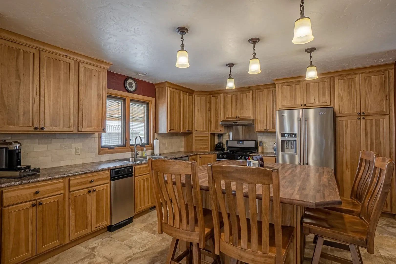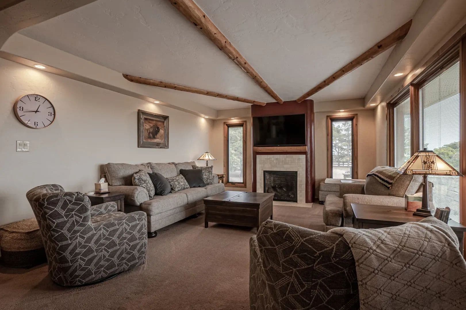 Living Room Warm and inviting, the living room is anchored by a 42” gas fireplace, offering both efficiency and ambiance.