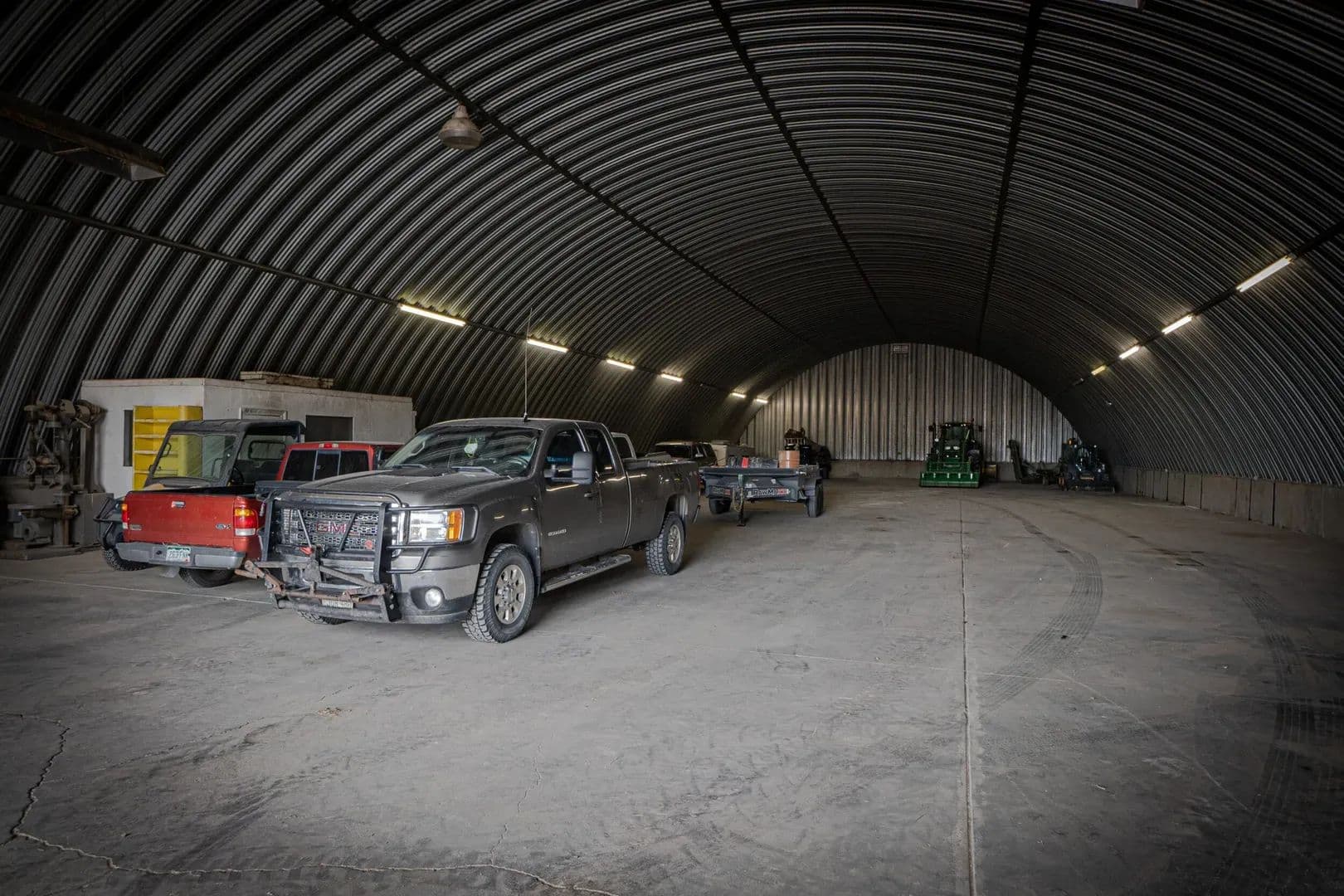 Quonset Building A large 68’ x 175’ Behlin Curvet Quonset provides major storage or working space, heated by a Dayton 200,000 BTU gas unit heater and includes a small cove-heated storage room or office.