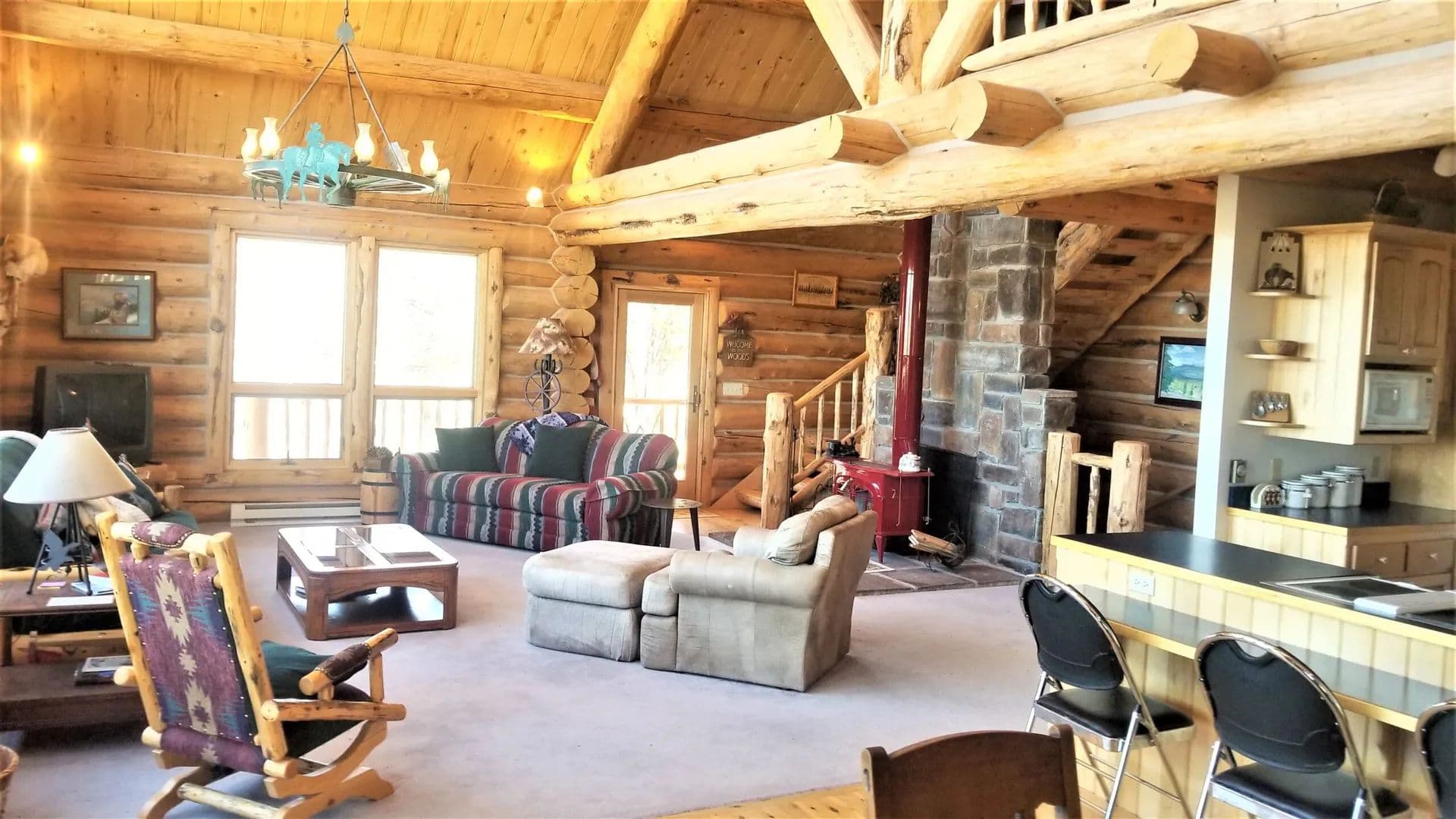 (Priced to sell below assessed value) Come visit the Whispering Pines Ranch. Your Rocky Mountain Getaway. Experience the dark sky nights and the long, home on the hill, mountain views. Land Priced To Sell – Welcome to the Whispering Pines Ranch. This property features an amazing log home with 3029 square feet of living space smartly arranged to allow you to enjoy the privacy of the primary suite upper level, while providing an open living area for entertaining guests on the main level. The lower level includes the 4th bedroom and a full bathroom as well as access to a bonus room/garage area that could be your game room, exercise room or even a great workshop. The rustic porch wraps around the front of the home to allow for long views of the West Elk range.
