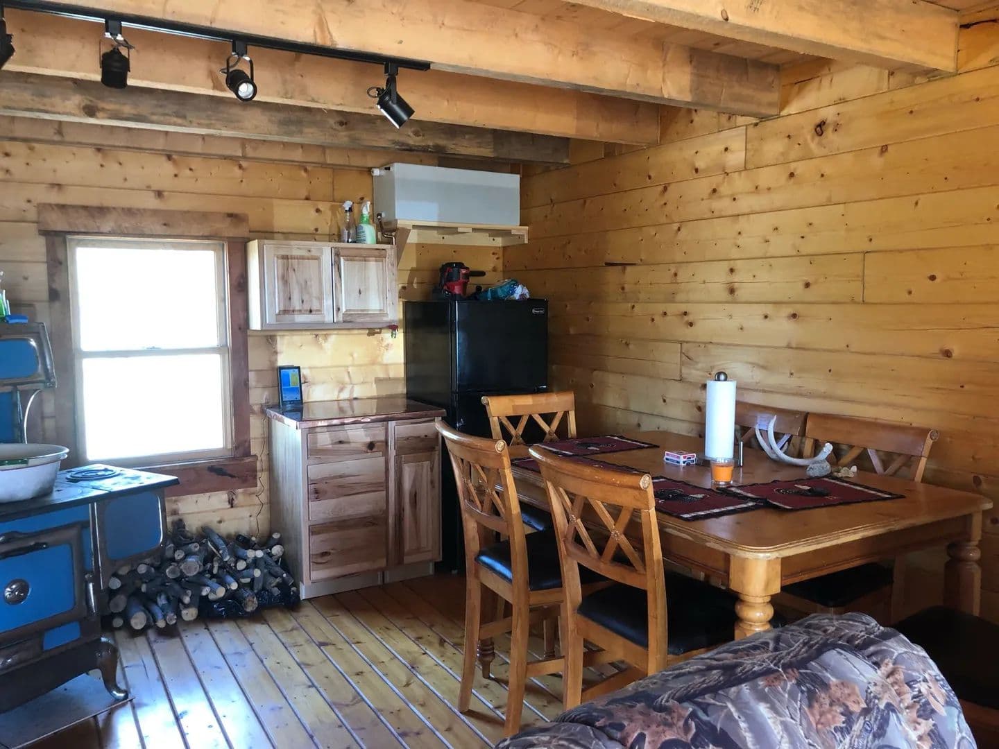 Improvements The cabin has a living room and kitchen on the main level and a loft sleeping area. It’s powered by solar and has all the comforts.