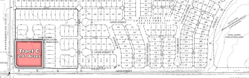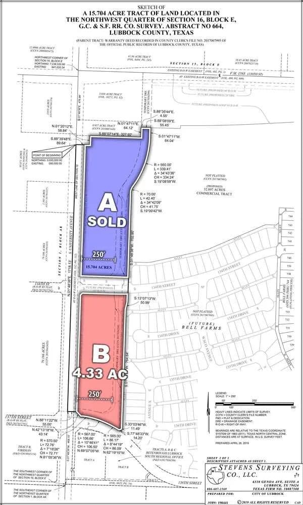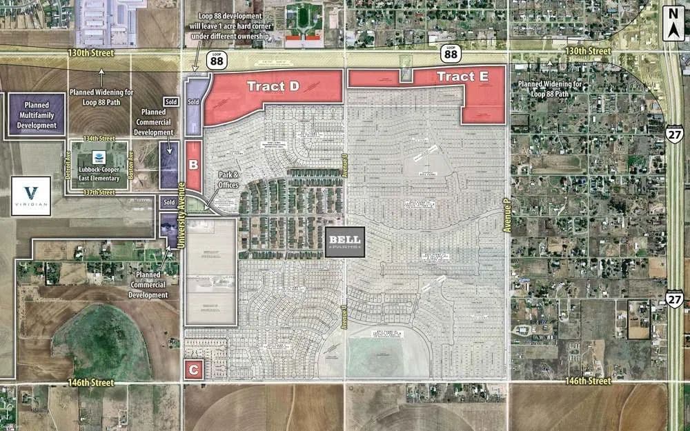 Conveniently located with frontage along the future Loop 88 (broke ground in 2018). This great location is in growing south Lubbock and is the commercial frontage of Bell Farms a 1,677 home subdivision and is ideal and ready for commercial development. Tracts are not in the floodplain.