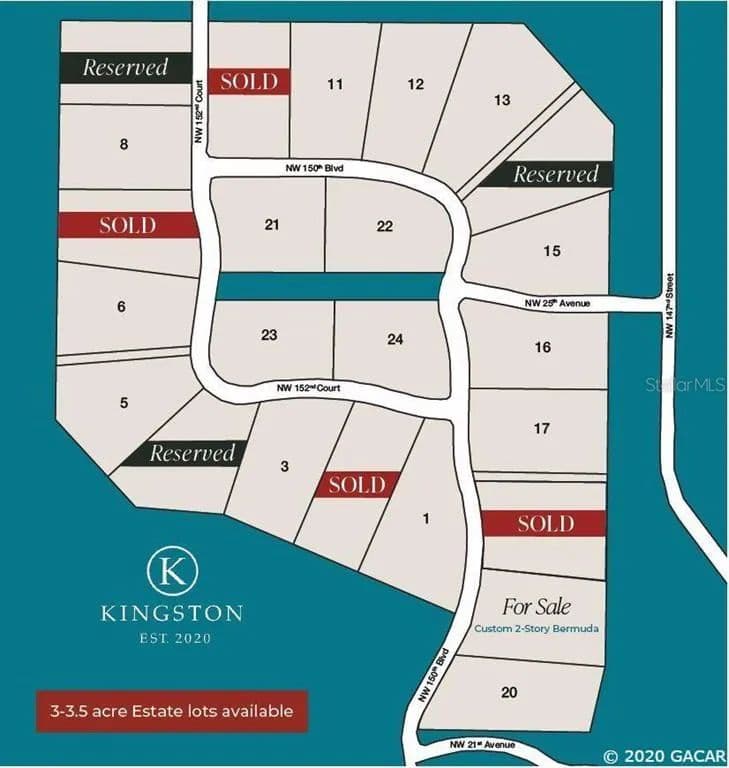 Live effortlessly in Kingston, AR Homes exclusive community in Northwest Gainesville. Located off scenic County Road 241/ 143rd Street, this private community is a short drive to Tioga Town Center, Grocery shopping center, Starbucks, restaurants, and more. Featuring 24-Homesites all 3 +/- acres, location and privacy is afforded in this luxury estate community. Walking trails wind throughout the community with a beautiful backdrop of large southern live oaks. Spot deer, turkey, and birds right from your back yard. Homes range in size from 3,200 to 8,000 living square feet. Whether you are looking for heavily wooded, partially wooded or cleared property, there is a homesite for everyone. AR Homes, one of Gainesville’s most sought-after custom home builders, is the exclusive builder in this community. www.Kingston-Life.com www.ARHomes.com