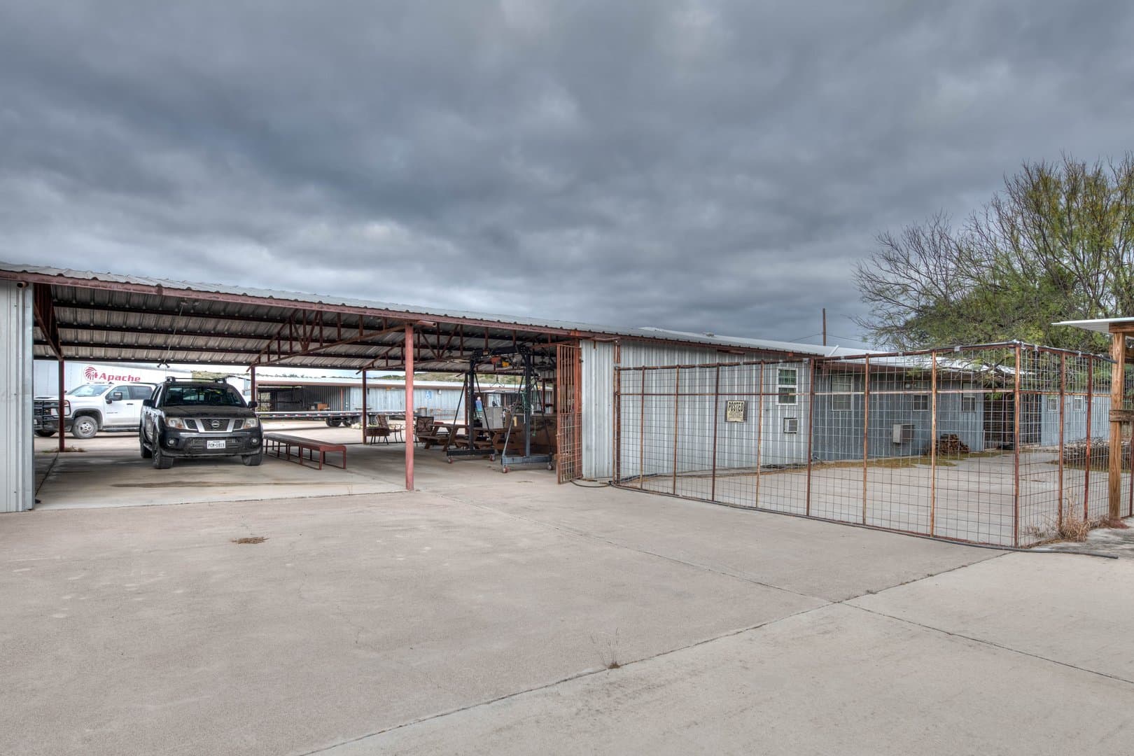 Tract 1 – Includes the main ranch house which is a hybrid manufactured home with wood and metal frame bunk house add-on. The main house area sits on a roughly 40,000 sqft concrete pad and includes 4 bedrooms, 1 bunk room, 3 baths, kitchen and living room. There is over 13,000 sf of covered area including the 3200-sf main house, a large covered outdoor kitchen entertainment area and bar, a 10’x40’ screened front porch, a 2000 sqft dog kennel, game cleaning table and sink, outdoor shower, 1600 sqft enclosed storage room and 4500 sf workshop, equipment shed, land telephone line, satellite TV, water well w/submersible pump, 1500-gallon propane tank. Some bunkhouse furniture will convey. Potential for owner financing.
