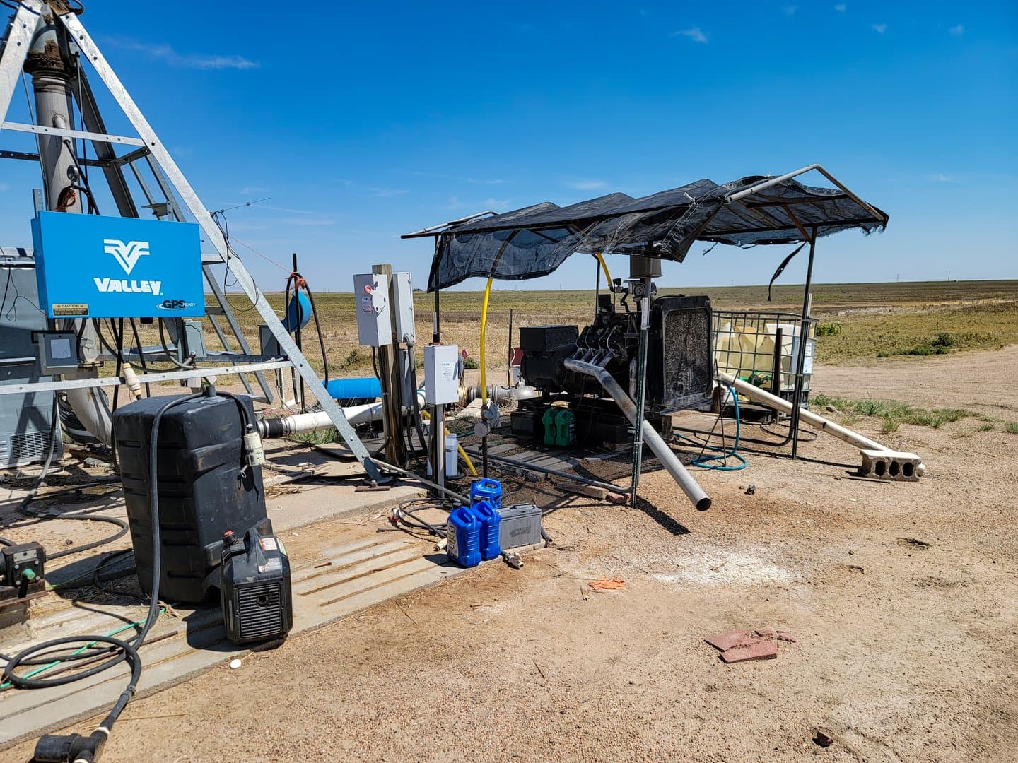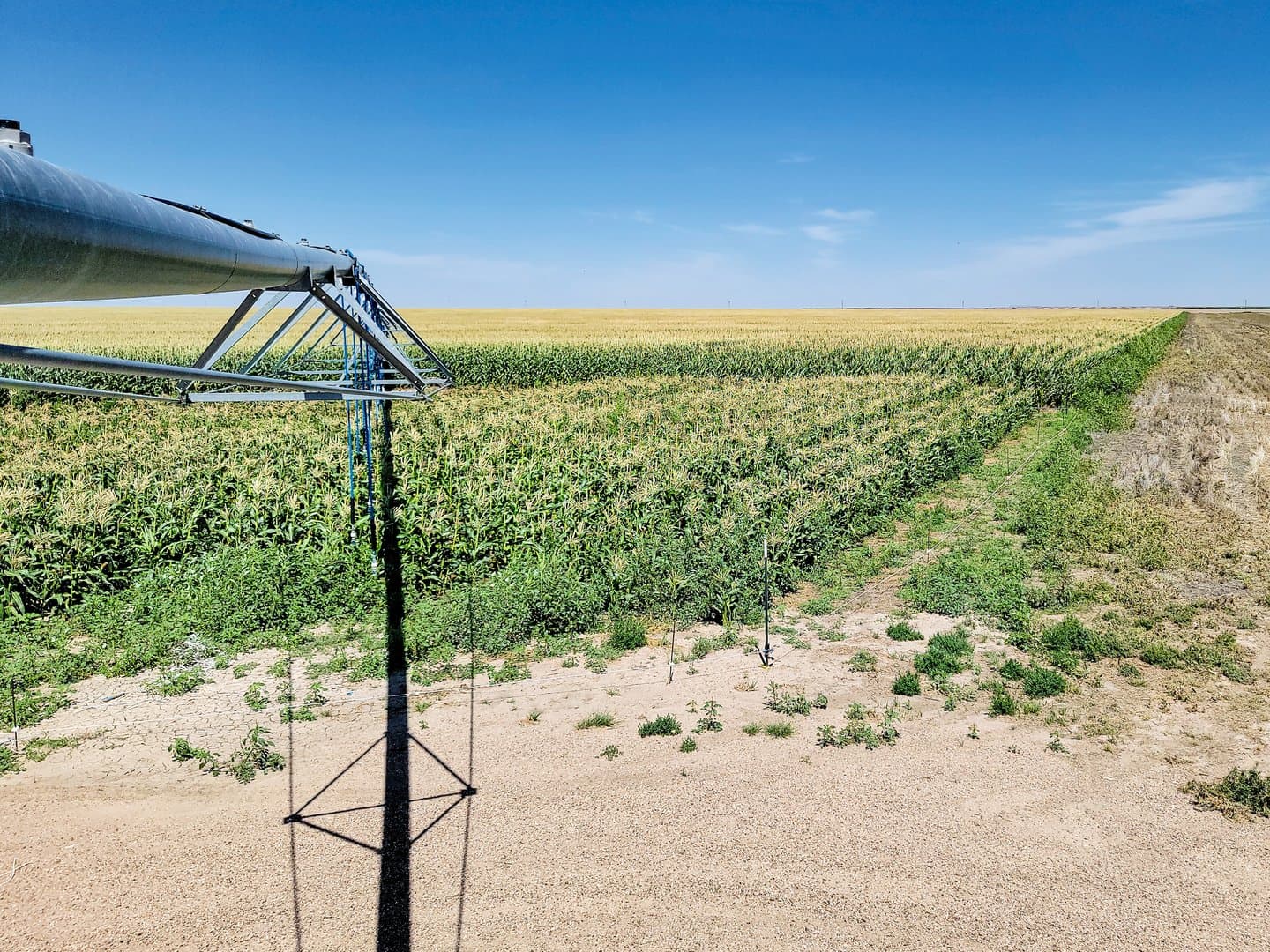 Irrigation System: 2013, 15 tower Valley polylined sprinkler with GPS guidance system which AgSense monitors. The system operates efficiently with 6psi regulators. The sprinkler, system booster pump and generator are driven by an 8.1 ci engine. For improved efficiency the booster pump has a VFD. This generator also powers the nearby submergible irrigation pump. The second submersible pump is powered by a generator driven by a 4-cylinder engine. The third irrigation well is a turbine pump driven via an 8.8 ci engine. All engines are PSI (Power Solutions Inc) engineered and run-on natural gas. The underground pipeline system connects all wells into a central system.
