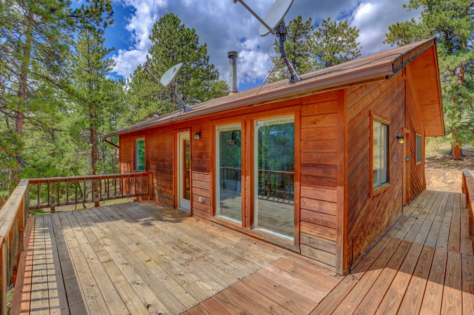 Welcome to your escape away from the City. This 3 Bedroom/ 2 Bath cabin sits on over an acre is in an area that is surrounded by the Pike National Forest and Staunton State Park in Pine Colorado. Recreation and privacy abounds yet the cabin is only minutes to dining, shopping and entertainment. Clean air, abundant wildlife and amazing views await you, just 35 miles outside of Denver via Hwy 285. Don't miss out on this opportunity to breathe. Land The property is comprised of two parcels, totalling 1.14 Acres with sloped terrain and towering ponderosa pines.