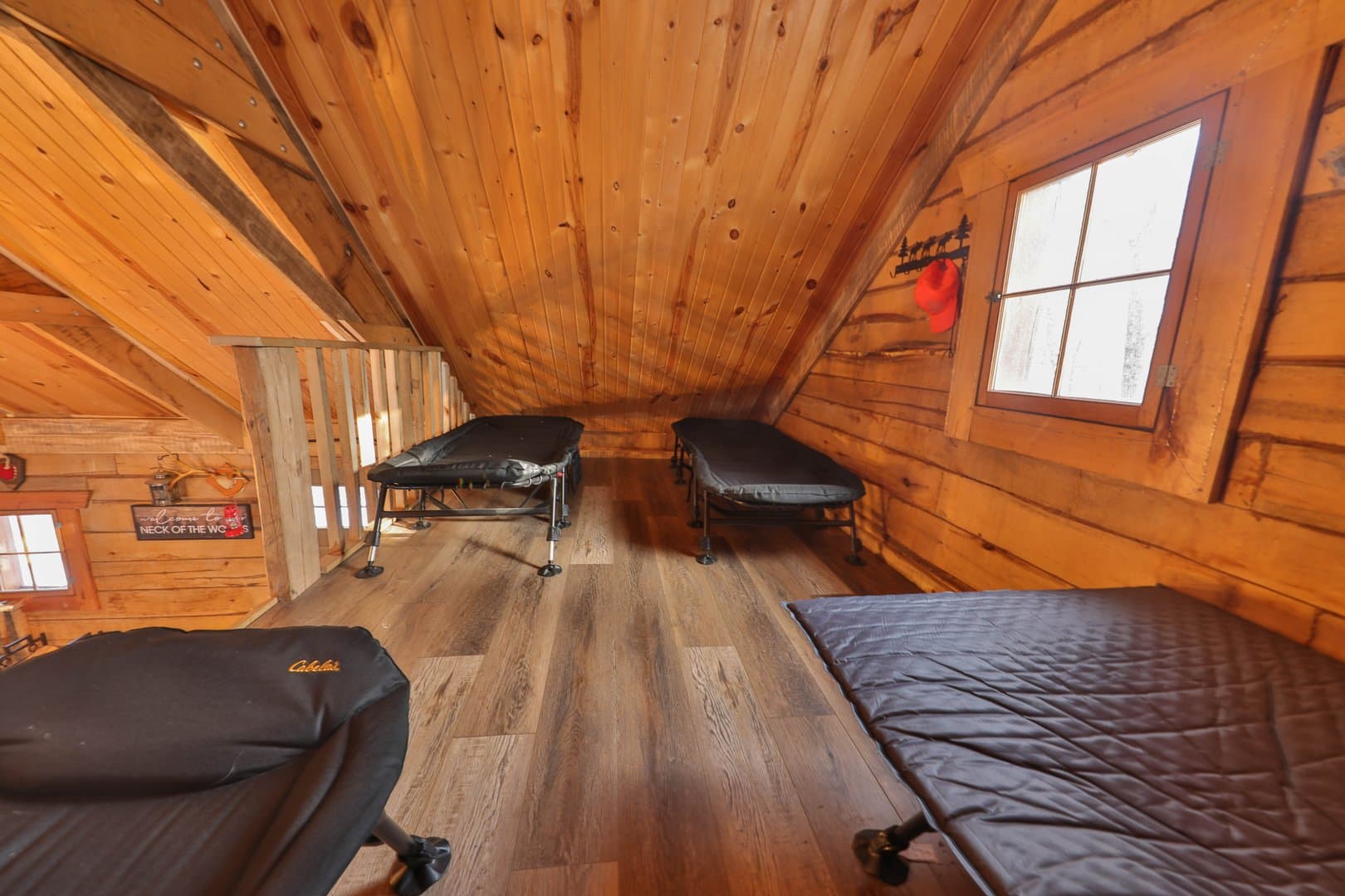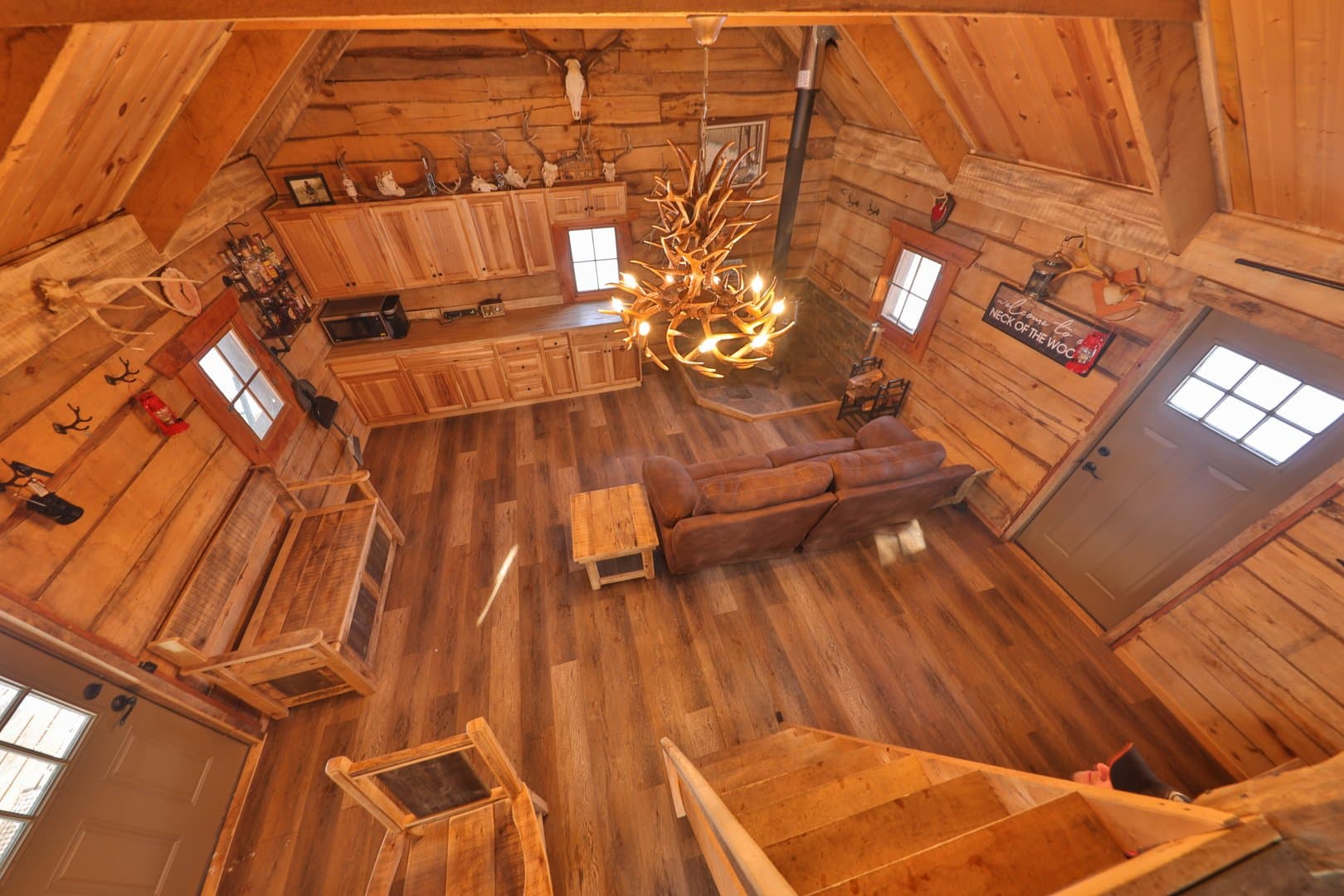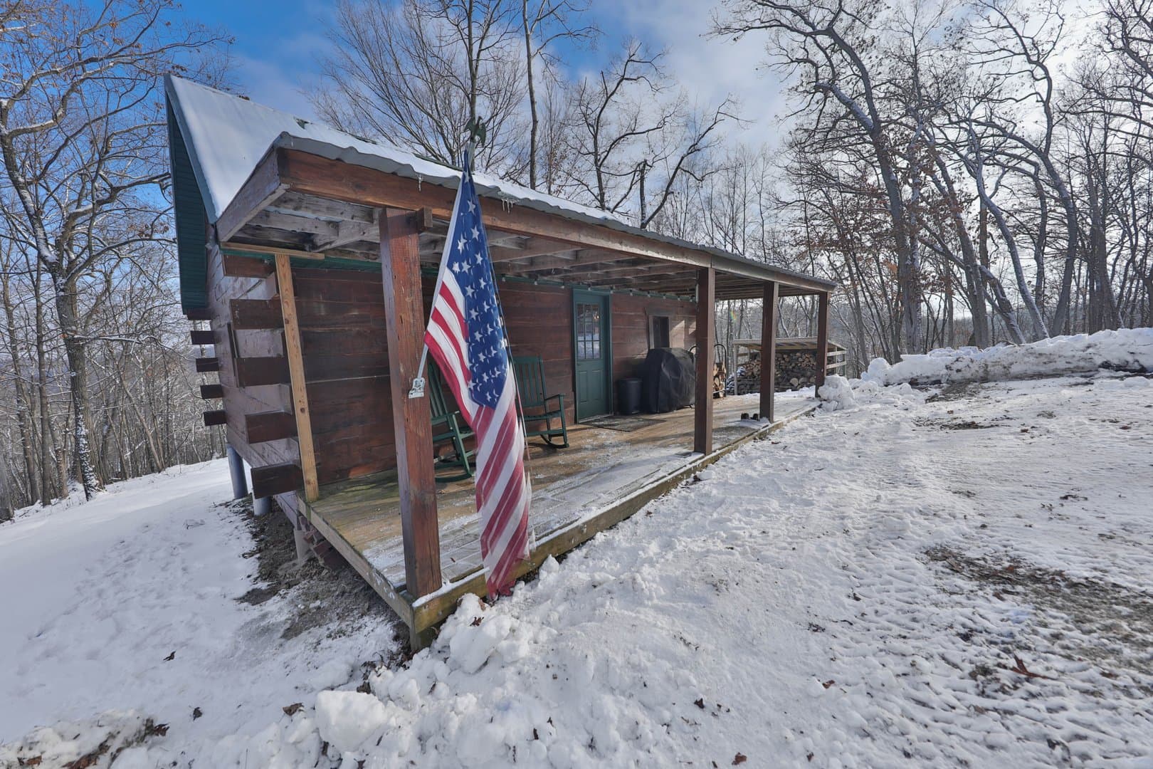 Enter the estate from an extensively excavated gravel road system that leads to a masterful outdoorsman’s retreat. Here, you’ll find a charming tucked-away dry cabin setup for years of memories and sleepless nights dreaming of Booners. The rustic cabin is a cozy 600+/- sq ft pad with loft that’s recently been both chinked, stained and renovated. The cabin is furnished with furniture that was custom-built and reclaimed from rough sawn lumber. This includes a beautiful table, bed and bench made from the original timbers that were in the cabin before the remodel. In addition, you’ll find a reclining sofa, microwave and rocking chairs on the porch. While there’s currently no well, septic or electrical lines serving the cabin, a remote start Champion Generator provides adequate power. The cabin is setup with a sleeping loft, wood burning stove and small kitchen perfectly fit for a comfortable stay along with an outhouse. A maintenance-free steel roof crowns the cabin with a proper covered porch to hang your hunting clothes, kick back and formulate your day’s game plan. There’s even a small woodshed already stocked with cut and split wood. A storage shed was also built to store your additional hunting equipment or lawncare items.