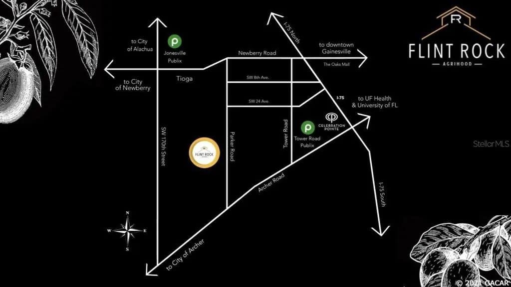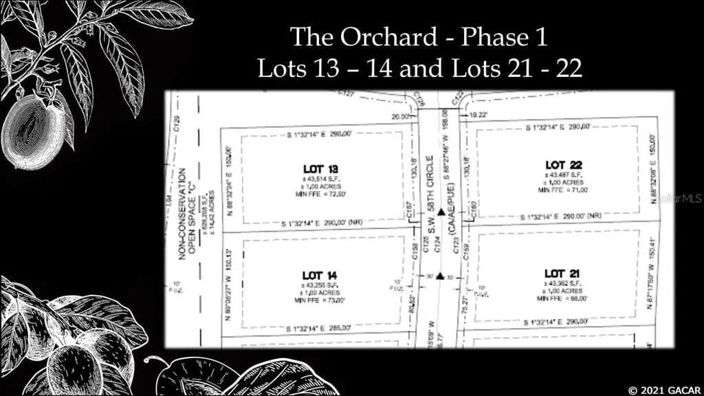 Lot 13 is a one acre corner lot that expands 150 feet across its rear property line. With a south facing front yard, its backyard abuts a large greenway. Gainesville's first Agrihood, Flint Rock promotes a lifestyle of healthy living and wellness, carefully crafted to embrace the farm-to-table lifestyle. This luxury residential community is centered around its recreational spaces, nature trails, gardens, orchards and conservation preserve. With 2.5 miles of walking paths and expanses of land, its residents will enjoy more green space than your average Gainesville subdivision. Owners will have access to their Event Barn, a unique venue for hosting outdoor activities. The Residents' Farmhouse offers a catering kitchen with spacious indoor gathering areas, surrounded by a fire pit area for casual outdoor entertaining. Offering expansive green space, The Orchard gated subdivision has a unique U-shaped center that is almost 9 acres in size, featuring a collection of fruit and nut bearing trees along paved community walking paths.