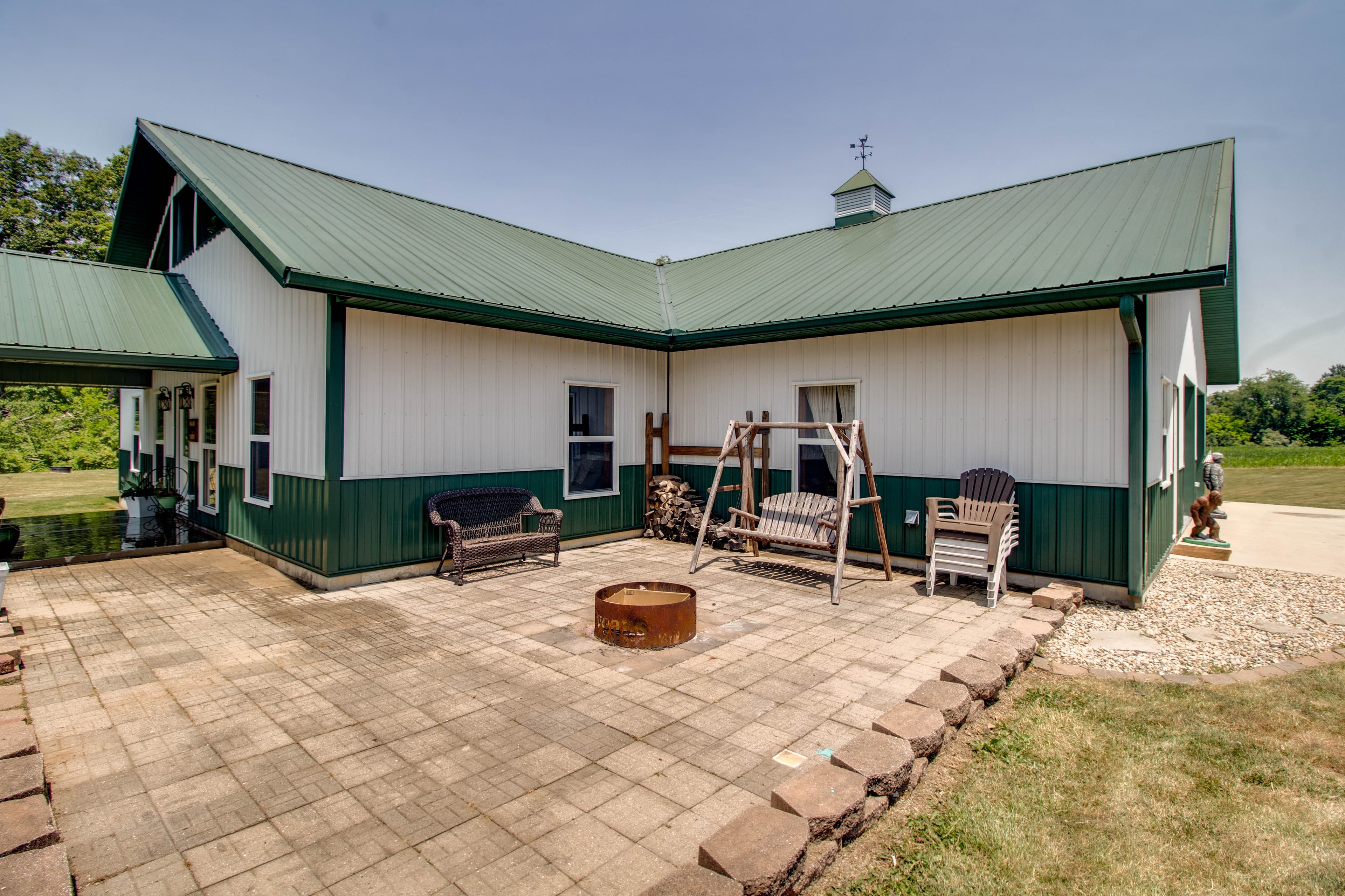 Tastefully designed pole barn house situated on 5 acres in a nice country setting. This home offers a wonderful open floor plan, vaulted ceilings, custom kitchen cabinetry, epoxy floors, spacious main floor, walkout basement, large deck, covered front porch and much more. In addition to the attached garage there is an outbuilding with a concrete floor. The lot offers seclusion and plenty of room for enjoyment. Also included is a recently built sand volleyball court.