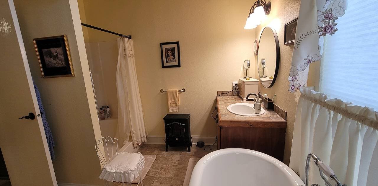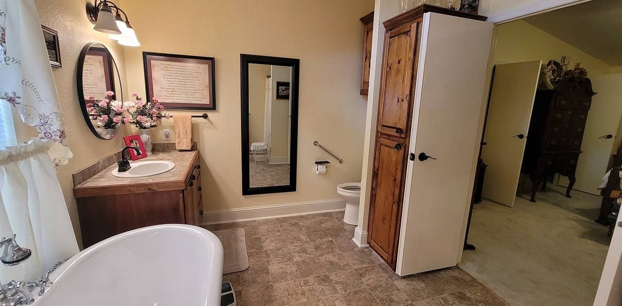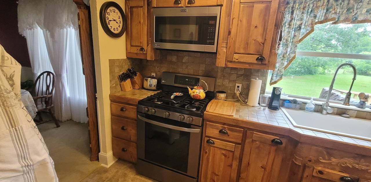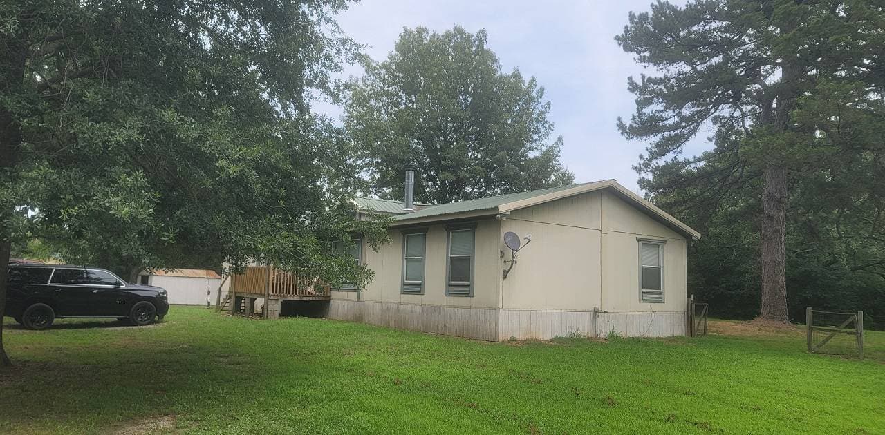 NICE! NICE! NICE! 4BR/2.5BA Completely rebuilt, better than new! This home is located in the quiet little community of Buffalo Valley, OK. Nestled near the end of a little dead end street, it has a feel of seclusion although there are a couple of homes nearby. It sets on nearly 2 acres so one has to some room to breathe. The home is a 28’x76′ manufactured home, that’s 2128 sf of beautiful completely renewed heated and air-conditioned living space, that looks better that new! The home is set up on runners so it is not settling or going anywhere. The sellers completely gutted the interior down to the stud walls, ceilings and floor joists, completely rebuilding the entire inside all new with first class material to do the finest home proud! All new sub-floor, sheet rock, plumbing, electrical and propane lines. Like I said, completely new. There are 3 bedrooms, the hall bathroom, utility/laundry room and half bath on the west end. Kitchen, living room, dining room in the center, with the master suite on the east end. This amazing home was appointed with all new custom cabinetry throughout the entire home. Check out the pictures, this place is awesome! This wonderful home was completed approximately 2 years ago and has had light use, therefore it is all the same as new. A few of the amenities are as follows: The kitchen appliances, including a propane gas cook stove, Bosch Dishwasher, Samsung side by side refrigerator with huge drawer freezer at bottom and eye level microwave. The master bedroom boasts a luxury claw footed soaking tub as well as a huge shower! There are 3 backup propane heaters strategically located throughout the home to provide heat in case of an unexpected power outage. The home is all electric otherwise, except for the gas kitchen range. The living room, dining room and all bedrooms are very nice carpeted in luxury carpeting. Bathrooms and laundry room have very nice vinyl flooring. There are nice ceiling fans in the living, dining and master bedrooms. One very attractive feature of this home is the wood-burning fireplace in the living room! Don’t miss out on this one. FOR BEST INFORMATION, please call Chuck Clark at 580-380-7093 or Terry Humphreys at 918-839-2106. You really need to see this one and appreciate the quality of the home. You’ll be glad you did!