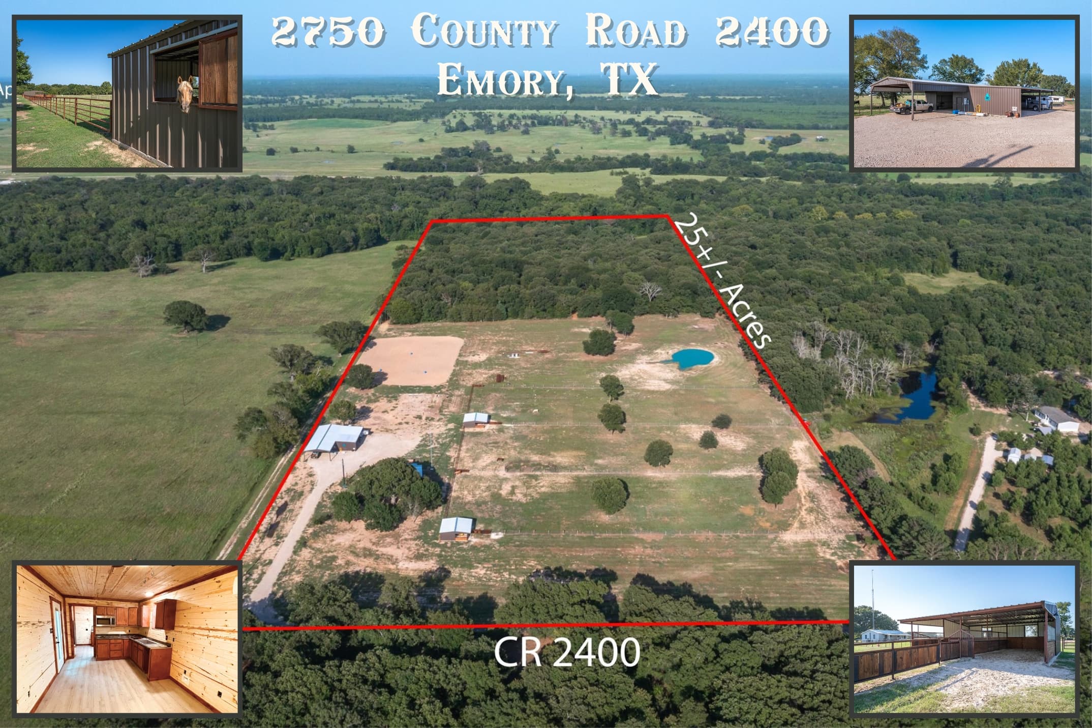 Horse lover’s & hunter’s paradise situated on 25+- AC features workshop, 2 loafing sheds, arena, pond, scattered mature trees & precious apartment in the workshop! Incredibly well built 1500 SF workshop w spray foam insulation, 200 amp electric, plenty of covered parking w 25x50 awning & 30x30 awning, and 300 SF apartment perfect for simple living, a guest house or for you to live while you build your dream home. Beautiful & practically designed loafing sheds w two custom stalls, fans, auto-waters & 3 large runs. Complete w arena, great mix of 50% woods& pastures, plenty of trails for hunting& exploring, no flood & a pond. Loaded with whitetail& wildlife! Enjoy wide variety of recreational activities-hunting, fishing, roping, riding, barrels, ATV& any other hobbies. Move-in ready, bring all your animals. Between Lake Tawakoni & Lake Fork, one of the most premier trophy bass lakes in the world. Pad site ready for barn or home. Seller is in process of continuing improvements & upgrades.