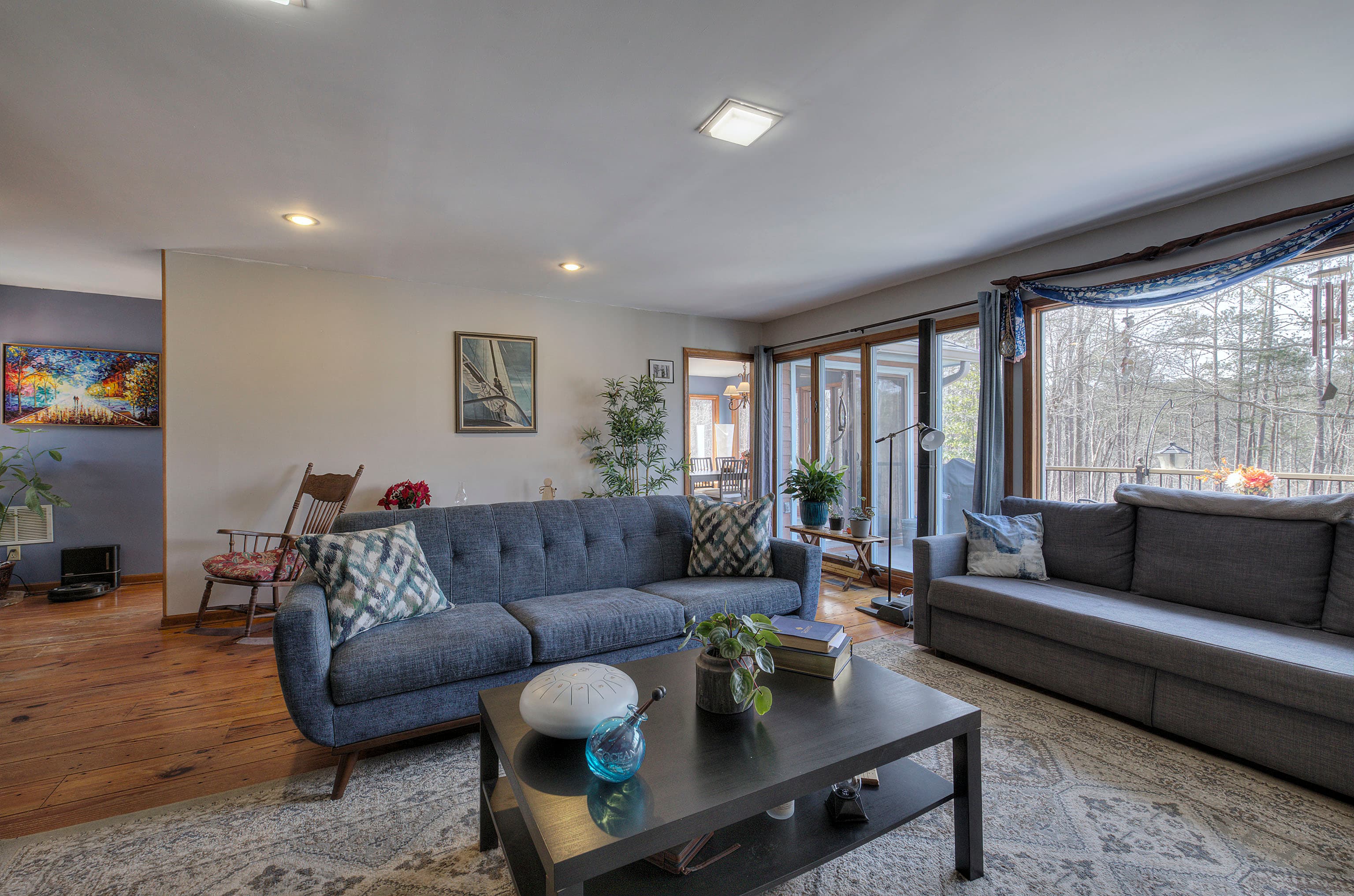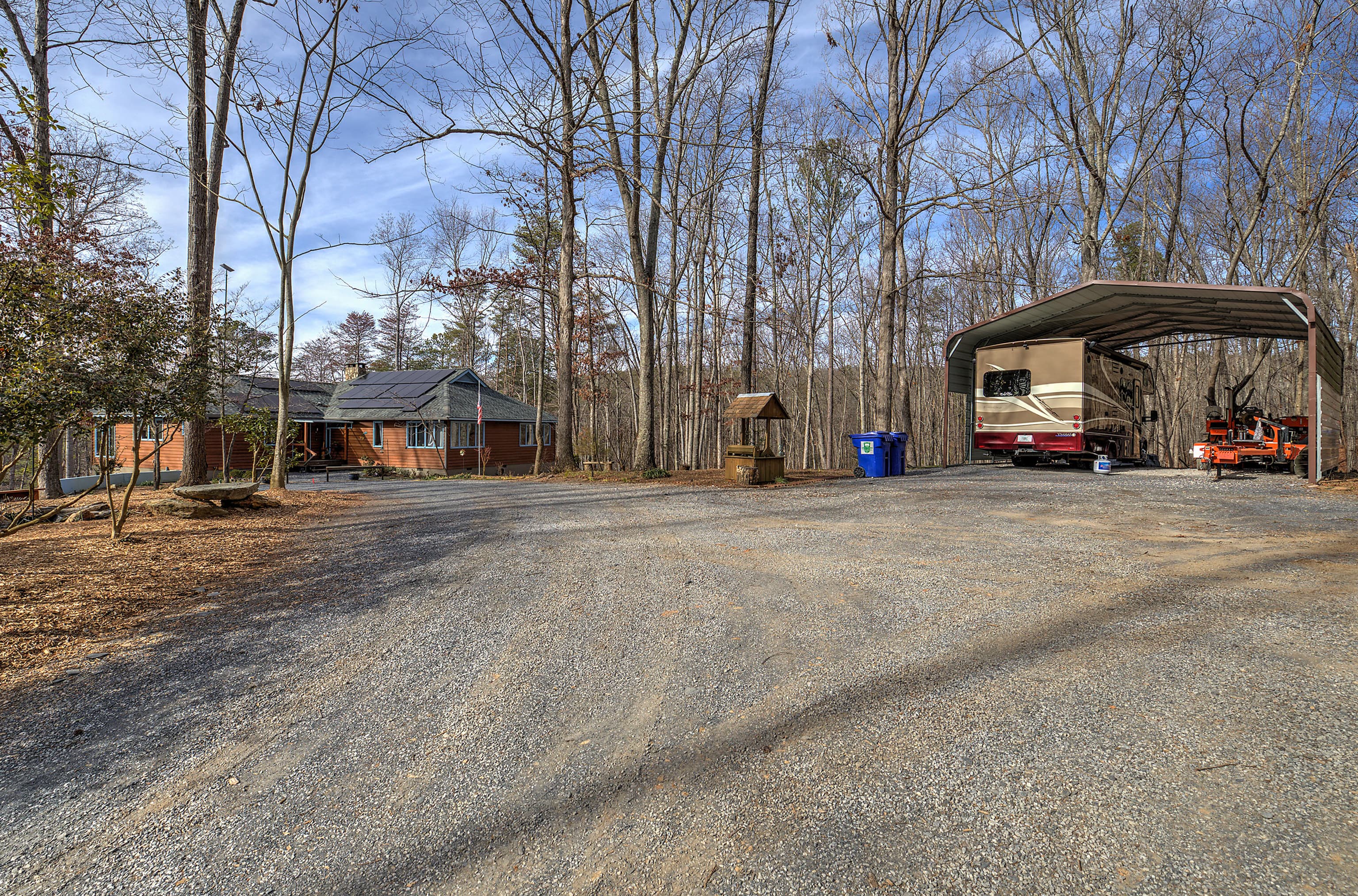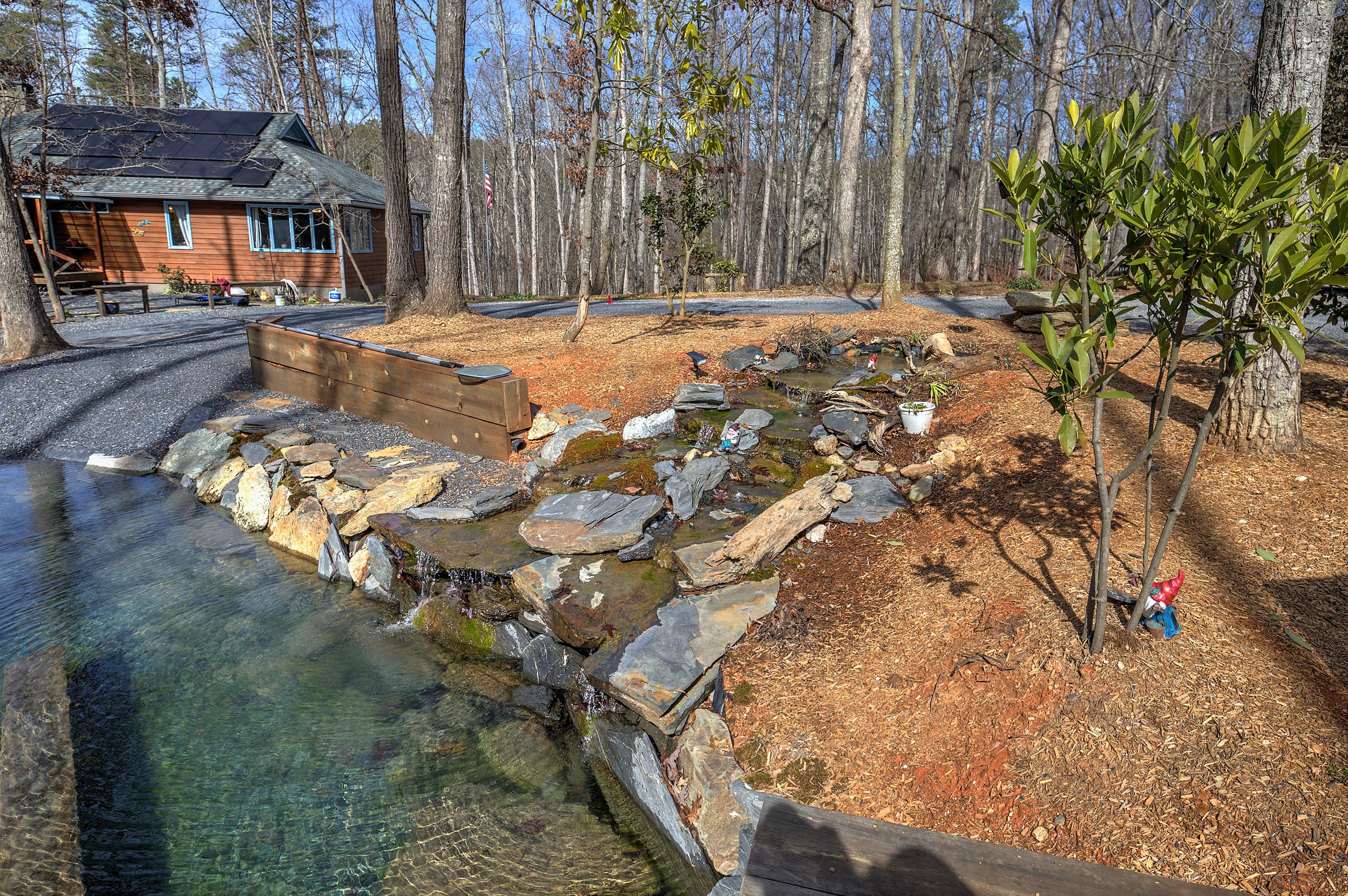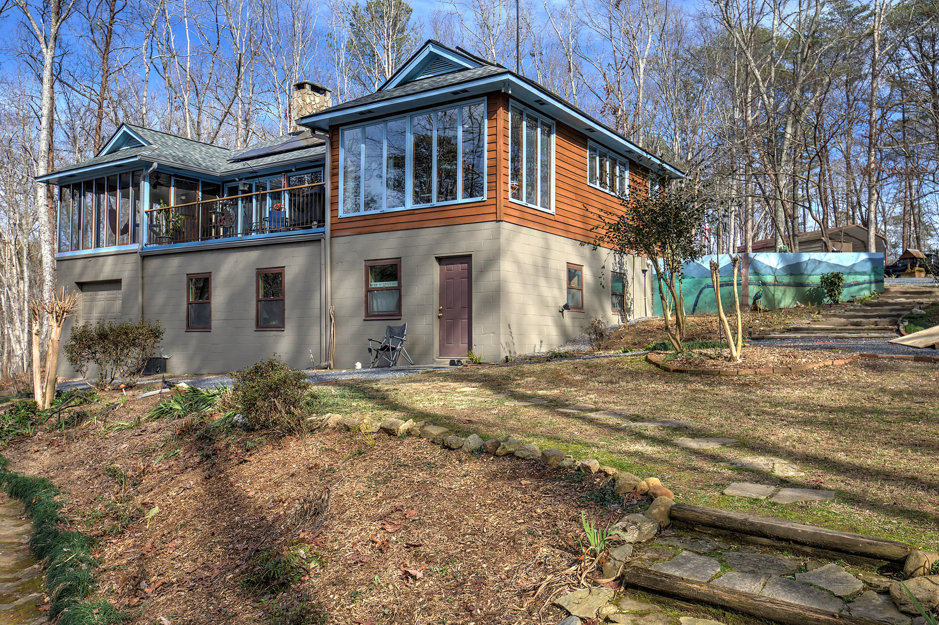 7 Acres of amazing views will take your breath away at this spacious retreat all while minutes from modern conveniences. Enjoy the nature views, watch the wildlife or just enjoy the tranquility from almost any room of the 5 bedroom/3 bath home or on the back deck or screened porch. And nighttime views are spectacular with no city lights to obstruct the starry skies! This retreat is almost self-sufficient with 15kw backup solar panels including inverter and lithium batteries, wood-burning stoves incorporated into the new highly efficient HVAC system, and a fireplace plus a 250 gal propane tank. Newly updated with many thoughtful upgrades the home features new glass walk-in showers, tile, countertops, and faucets in the baths as well as a completely painted, new roof with foam insulation in the attic and a finished basement that has 1 bedroom, a office or 2nd bedroom, full kitchen, bath, living room plus a private entry with mudroom and private parking offering a true home office or guest/in-law quarters. Outside you will find additional attention to every detail with a natural pool with a waterfall, a raised garden bed, and an irrigated garden area from the nearby Crawford Lake which offers lake views, newly planted fruit trees, berries, and flowers. There is also a chicken coop with runs and tunnels and a 12x30 workshop with 30a 220v power. The 7 acres include 2 parcels which will allow for a second home and/or a large garage apartment. If you would like a family complex, a third home could be built on the additional acreage. An adjacent 71+/- acre parcel is available featuring creeks tumbling down boulders, magnificent vistas, a waterfall, and space for another home. Call today for a private tour. The property does not join the lake but has lake views. See the additional land listing that adjoins this property.