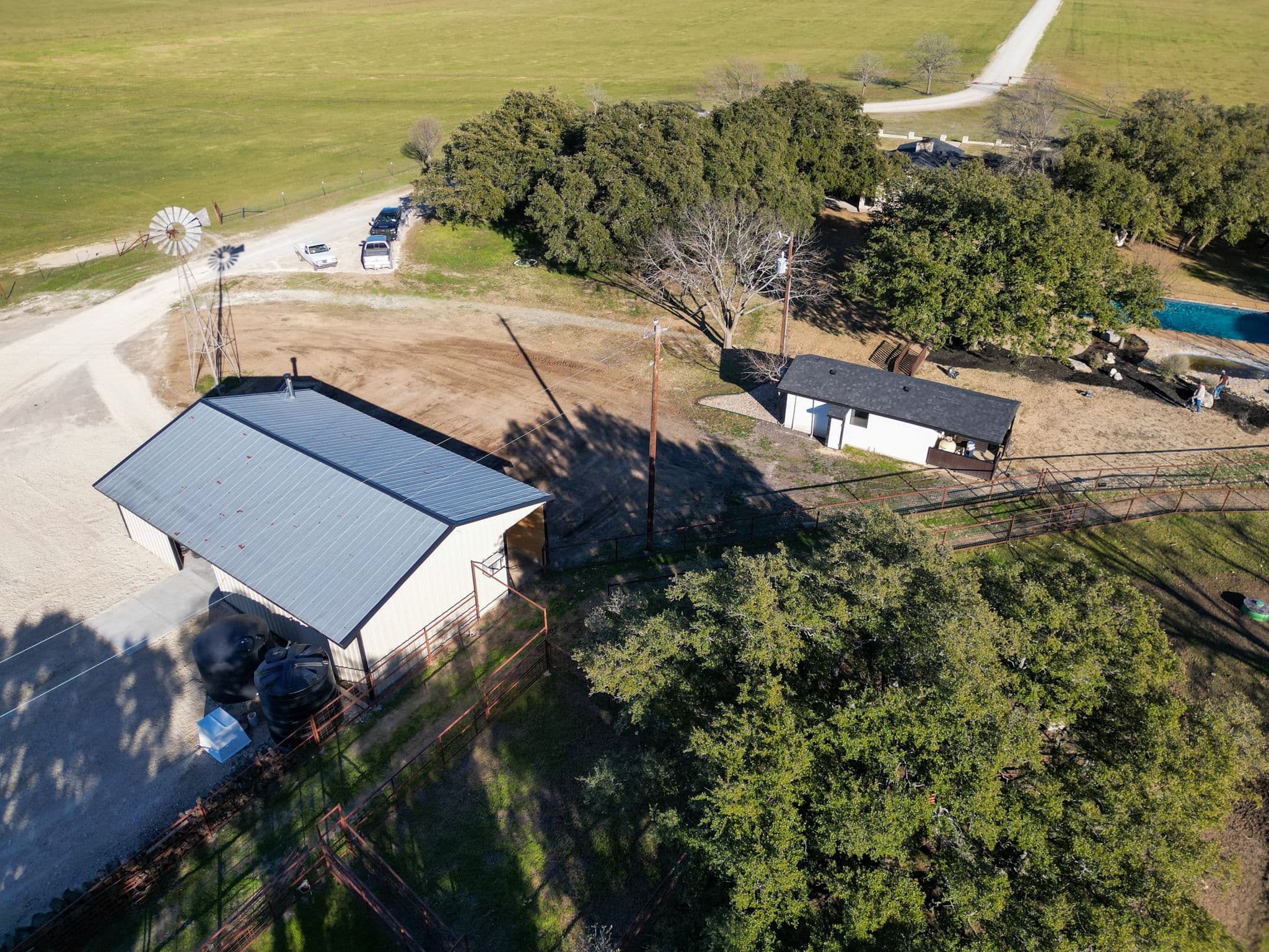 Stock tank has been reworked with heavy equipment to increase water flow to tank and water running into creek behind the house.