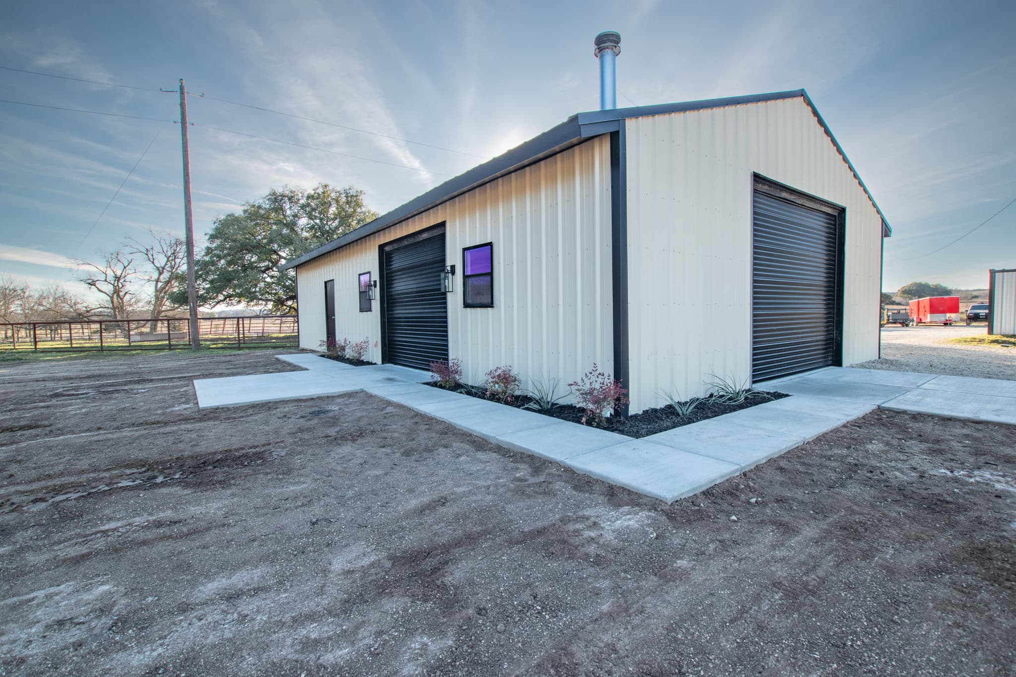 New metal siding was added as well as three roll up doors for access from all sides