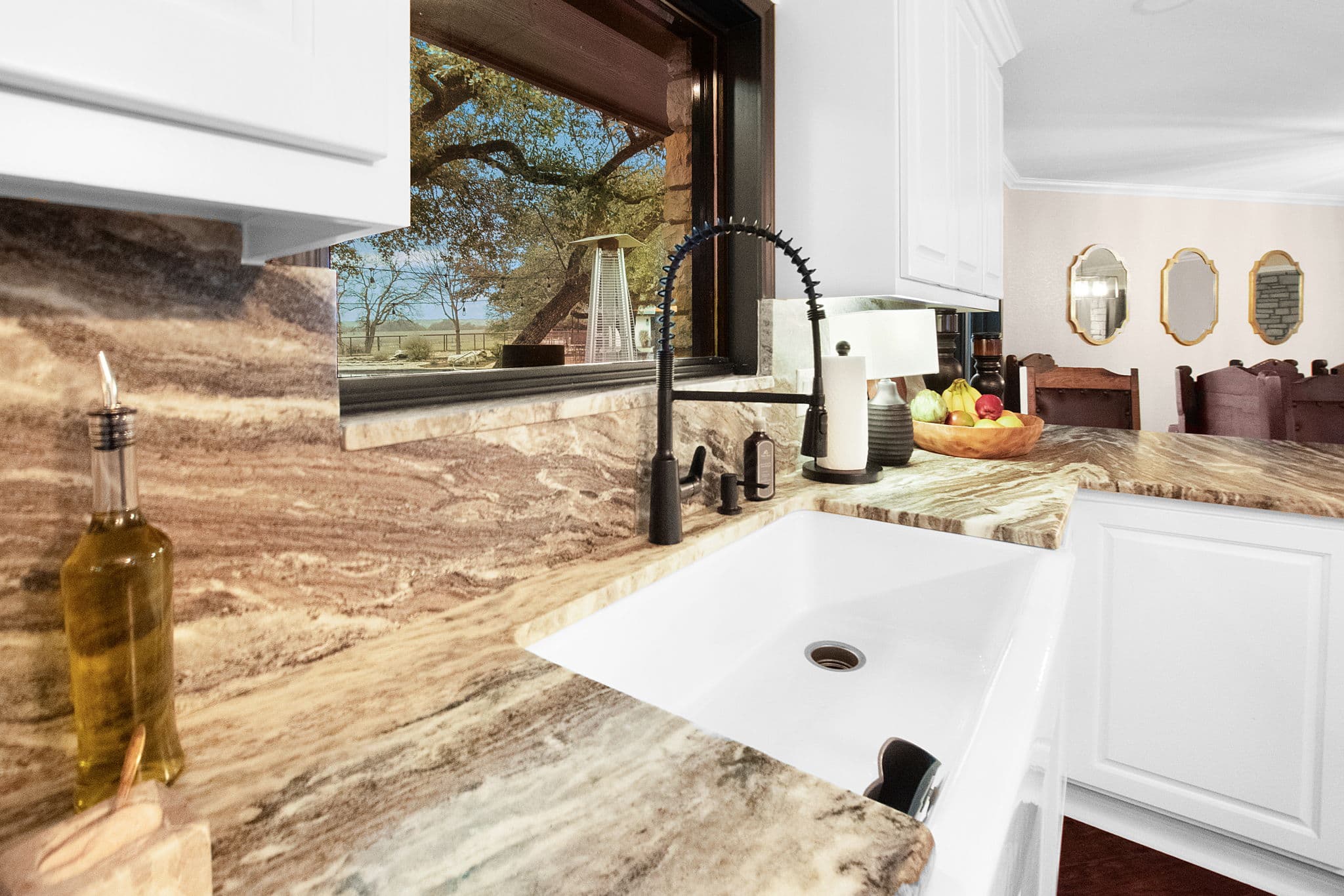 The window above kitchen sink was enlarged to improve the view overlooking backyard and pool