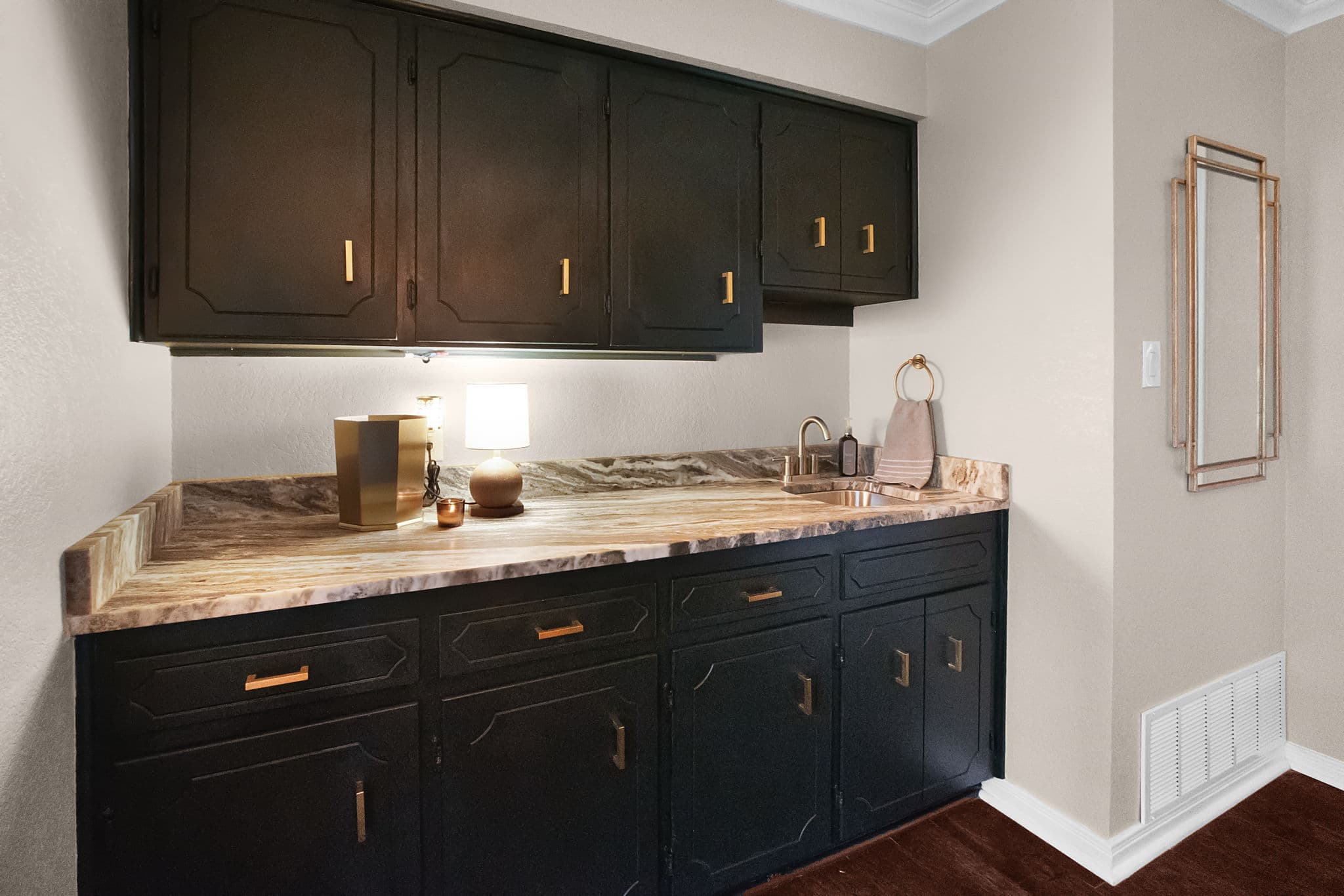 Custom upper & lower cabinets & sink added into the bar area