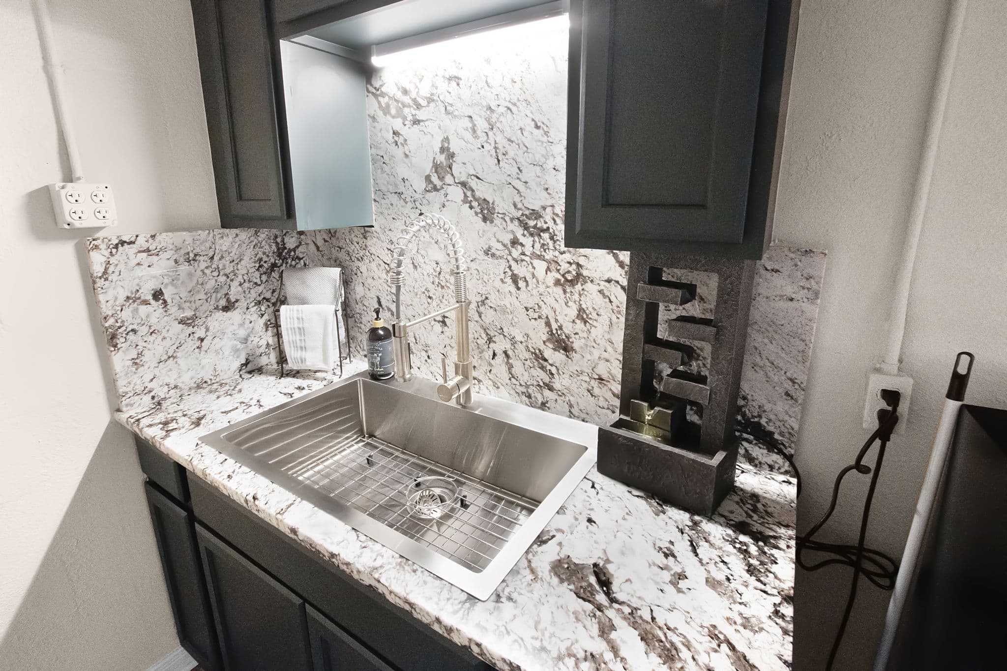 Kitchen sink added with cabinets above & below