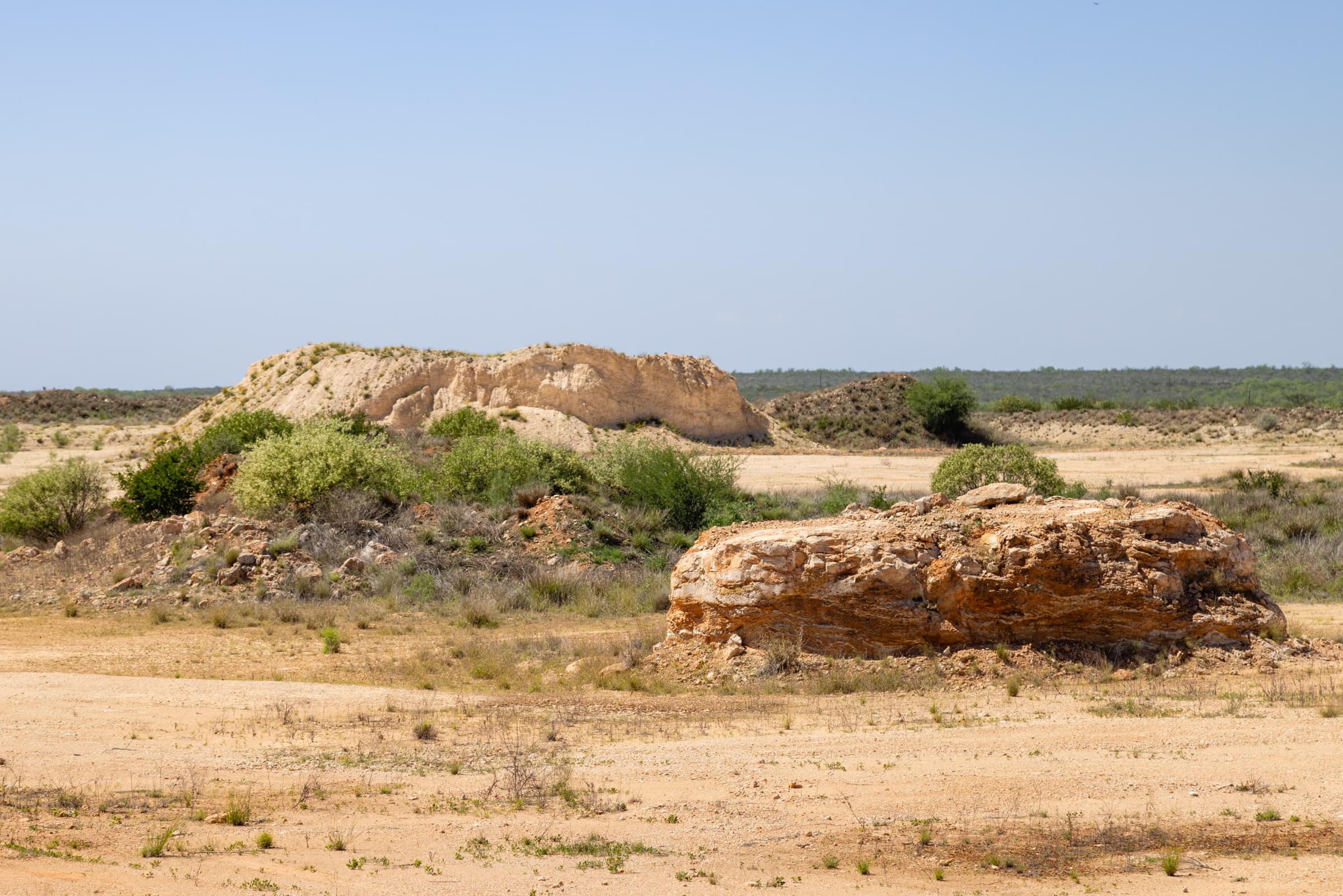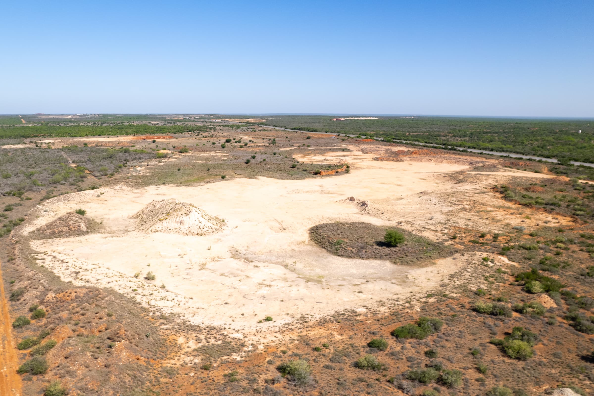 The majority of the property was once used as a caliche pit, with some large mounds of caliche still remaining on the property. A small amount of the southern portion of the property appears to lie in a portion of FEMA 100-year floodplain.