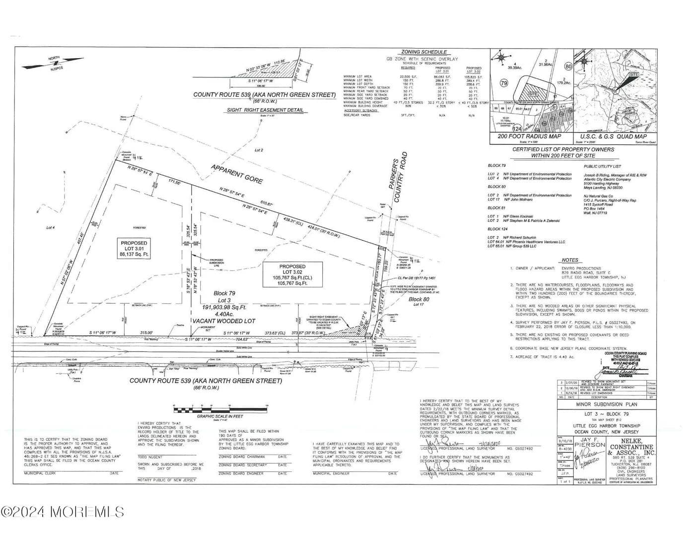 Route 539 vacant land is getting rare to find, especially a large parcel like this. 4.4 acres and plenty of frontage (688 feet) along this busy corridor this property might be perfect for your new or expanding business. Located in the General Business Scenic Overlay Zone in Little Egg Harbor there are many uses that could be approved. This is for two lots. Seller would consider selling one of the lots individually. Please ask if interested.