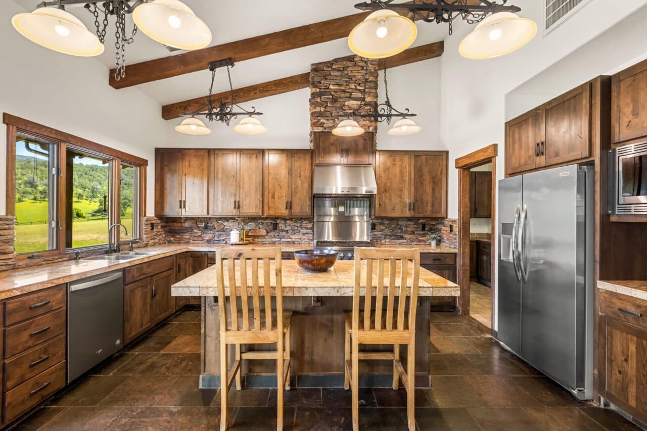 Welcome to the historic Gann Ranch, a sprawling 325-acre paradise offering the perfect blend of rustic charm and modern luxury. Nestled amidst rolling hills, this off-grid oasis is powered by solar energy, complemented by battery and generator backup for uninterrupted comfort. The custom 1,995 square-foot main home features three spacious bedrooms, three elegant bathrooms, a high-end kitchen, and vaulted ceilings that create a sense of grandeur. Relax on the covered patio or entertain guests in the cozy guest house. Equestrian enthusiasts will be delighted by the remodeled agricultural barn, a seven-stall horse barn with a tack room, and a 160-foot round arena. The property is a natural wonderland, boasting seven springs, multiple large ponds, and a seasonal stream with a picturesque waterfall. For aviation enthusiasts, a 1600-foot airstrip with expansion potential is a unique bonus. Located just 15 minutes from Hogan Dam Reservoir's boat ramp, this ranch offers both seclusion and convenience. Embrace the unparalleled beauty and tranquility of the Gann Ranch, where every detail has been thoughtfully designed for a life of luxury and adventure.