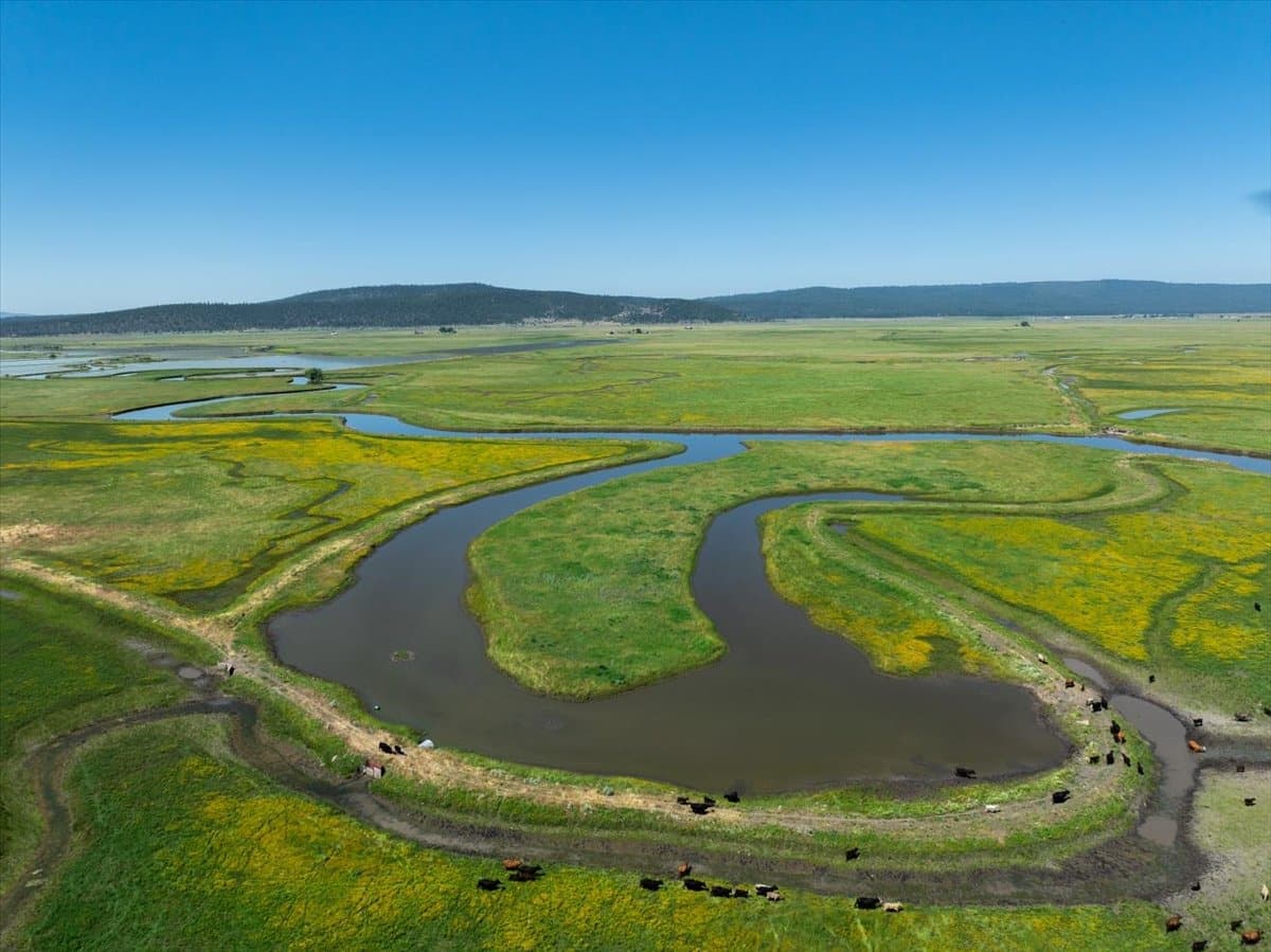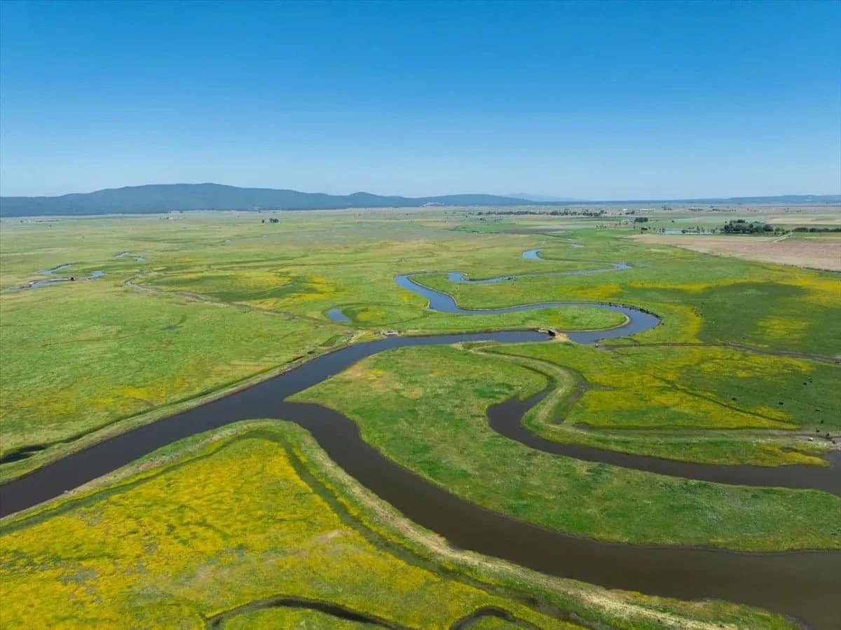 For the cattle rancher, this is a dream come true. 1850 acres of level grazing land, with approximately 1200 acres irrigated. Add a river running through the length of the property for 1.5 miles, two sets of corrals, and cross fencing: you’re looking at a well-set-up operation for around 400 pair and 100 +/- yearlings. That’s not all; the ranch also offers approximately 150 acres of farm ground irrigated with wheel lines. Recreational opportunities are abundant. The ranch qualifies for two landowner tags in the X1 deer zone, and there are several duck blinds along the river, which is perfect for the avid waterfowl hunter. This property has been owned by the same family since the early 1920s and has been used for grazing, hay, and recreation throughout history. What a ranch! APN’S: 001-530-007 160 acres; 001-530-015 320 acres; 001-530-017 160 acres; 001-530-018 640 acres; 001-530-019 320 acres; 001-530-023 90 acres Located in Big Valley near the town of Bieber, at an elevation of 4100 ft. The ranch has two access Roads. Derick Road is directly off HWY 299 just west of Bieber and Punkin Center Road, driving through town and heading South on the right-hand side
