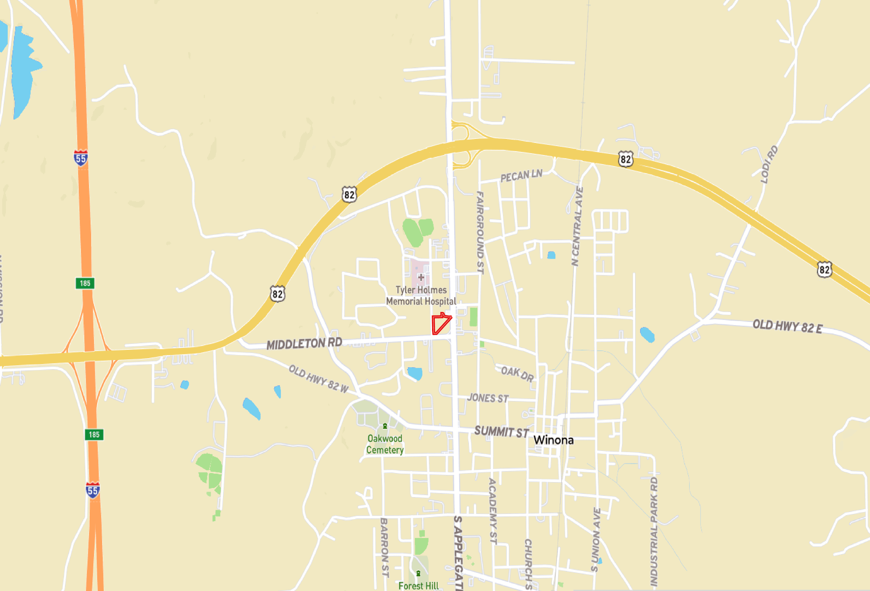 The property has adequate access to major roads in the city of Winona. Off-site improvements include a ditch, streetlights, and an asphalt street; all public utilities are available. With heavy road traffic, your business will have ample opportunity to catch the eye of existing and new customers. The Mississippi Department of Transportation has logged the daily traffic count at 6,200 vehicles for Middleton Road and 11,000 vehicles for North Applegate Street (Highway 51).