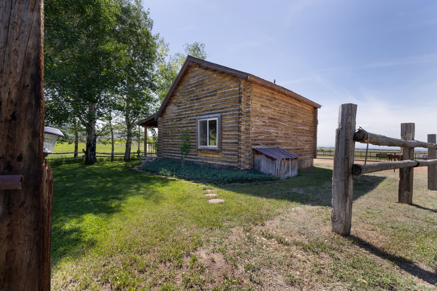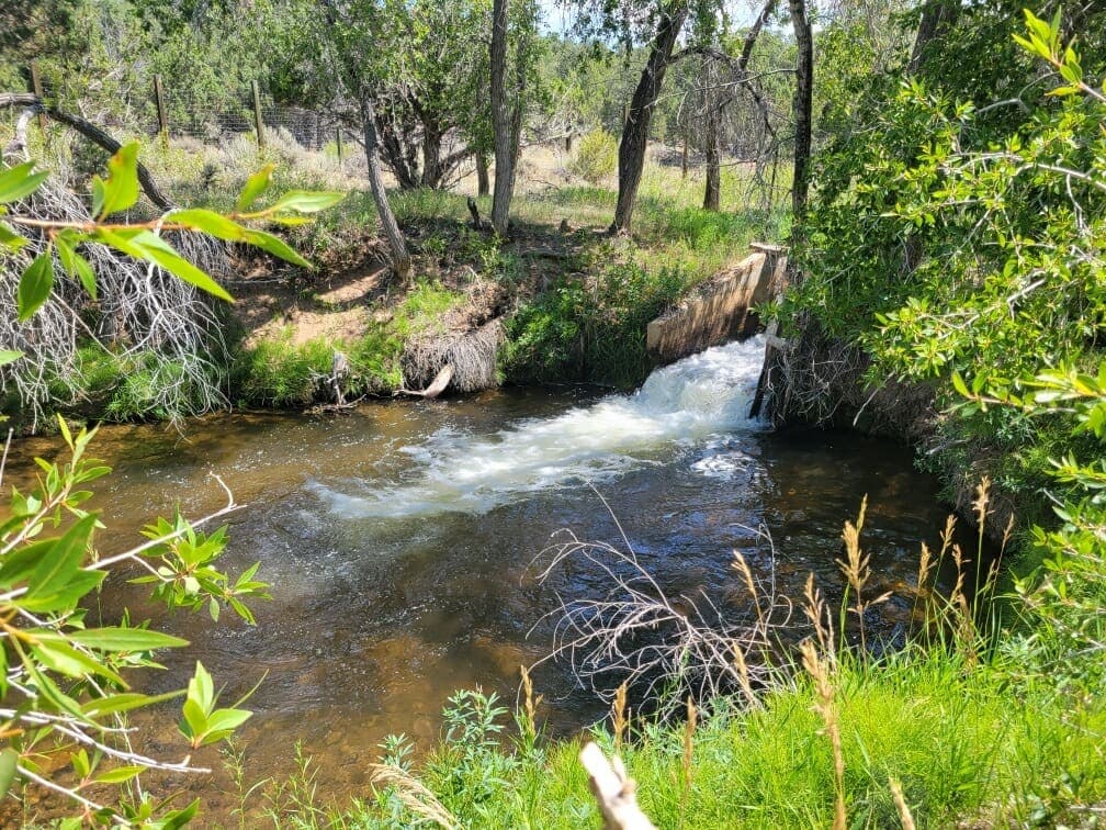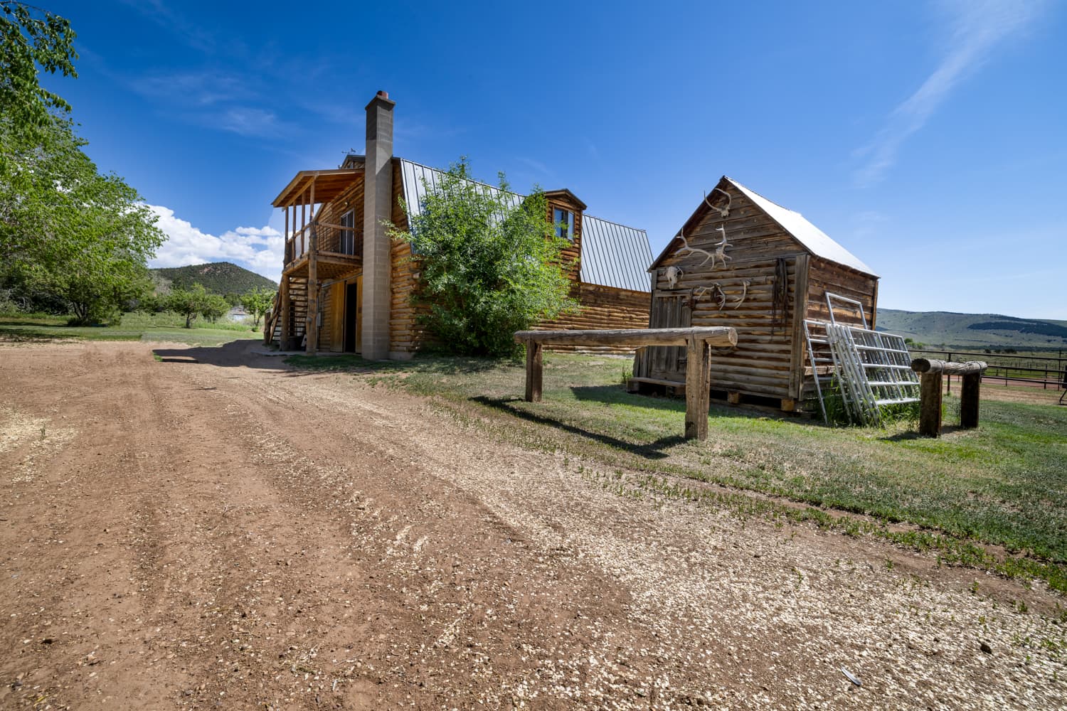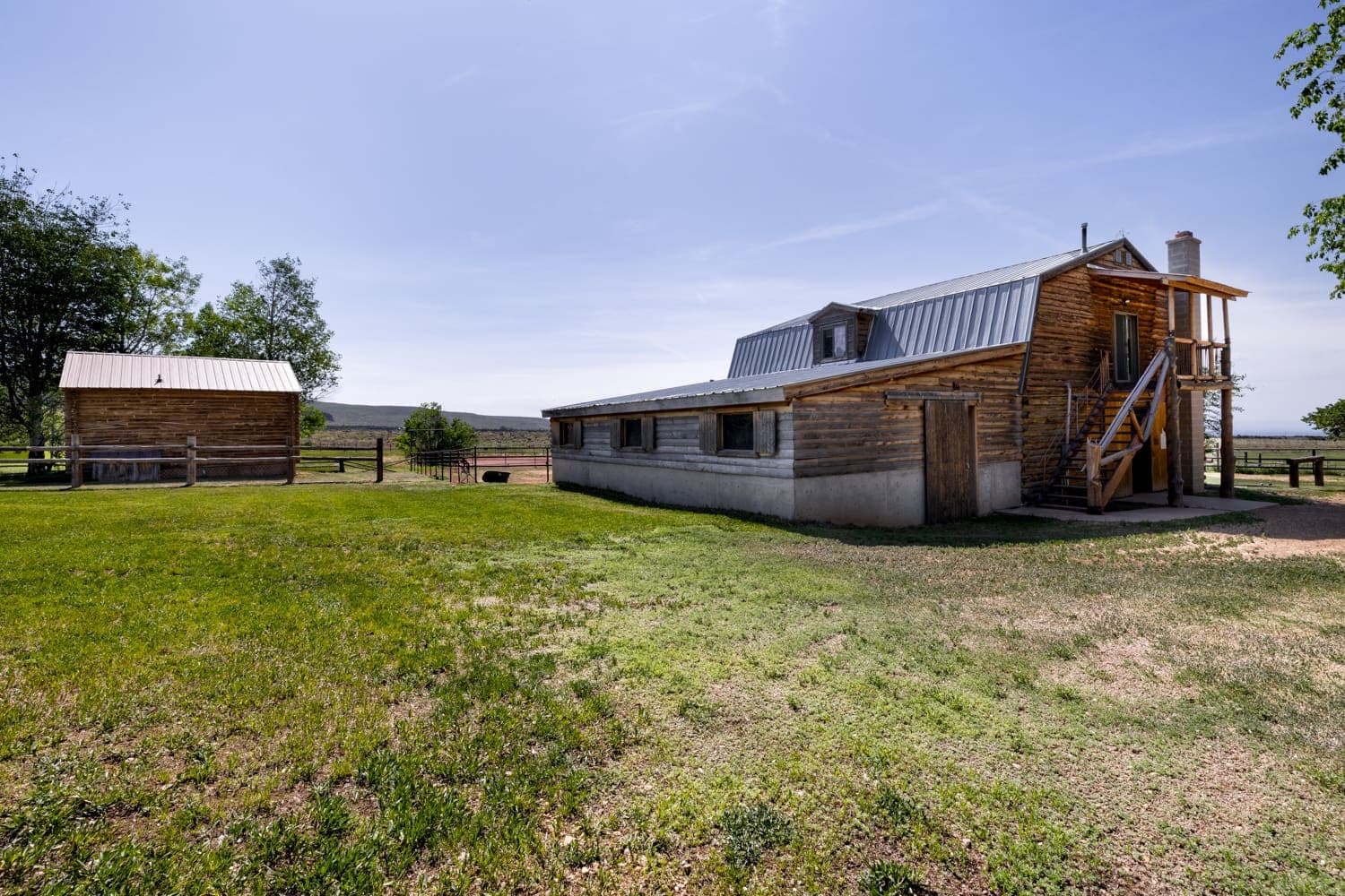 Next door to the barn is a sweet Log Guest Cabin with a shady front porch surrounded by Aspen trees, that overlook the pasture and mountains. It has a downstairs queen size bedroom with a sleeping loft. The sitting room and kitchen are open and cozy, with a propane heater for winter. The full bath has been recently remodeled. This cabin has been very popular with Airbnb rentals and is income producing. A controlled tributary of the Whiterocks river meanders through the entire north end of the property.