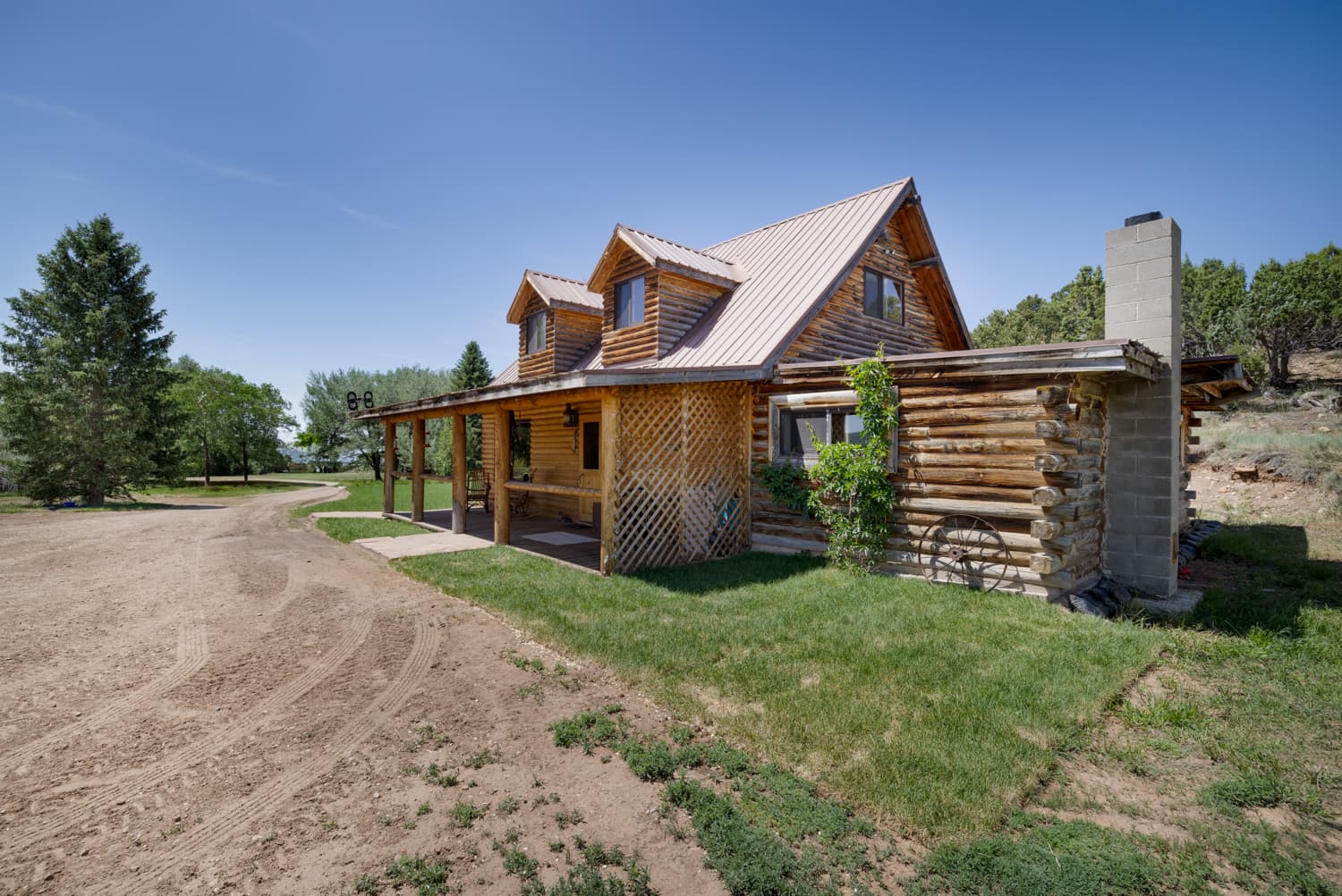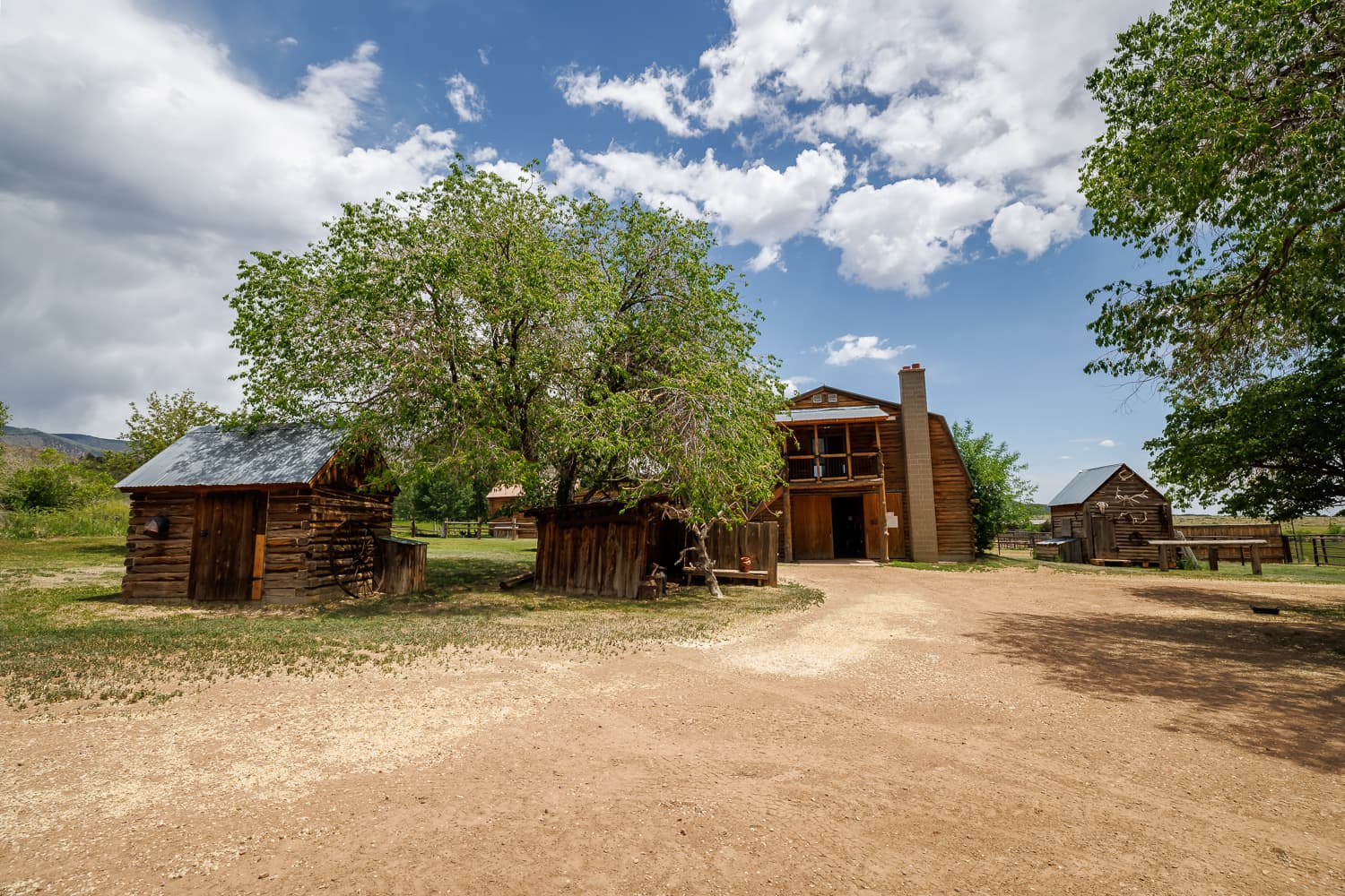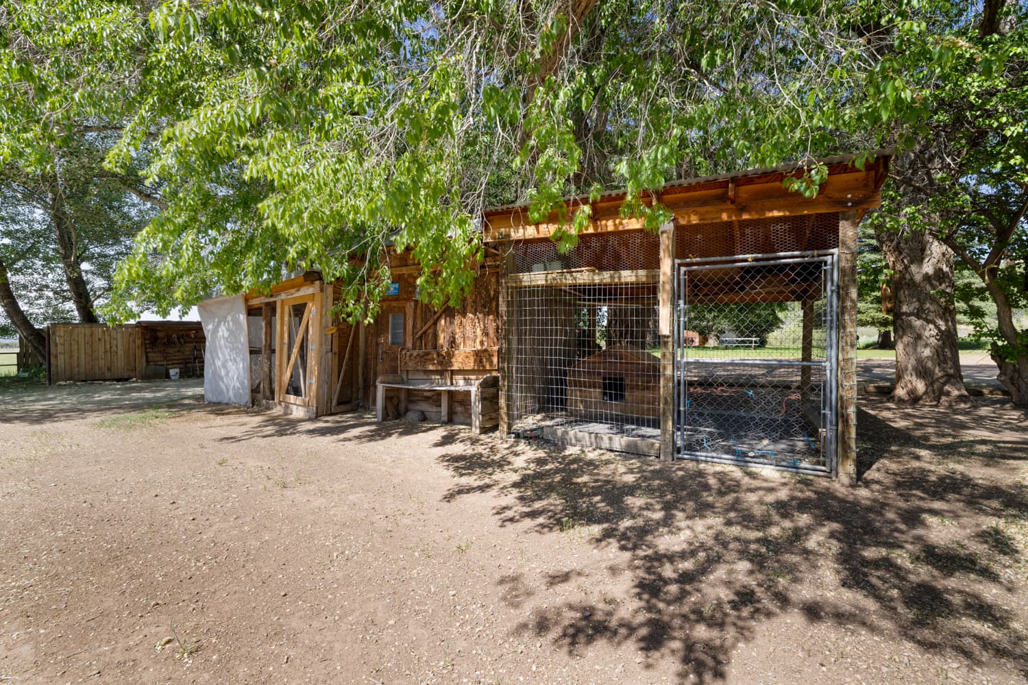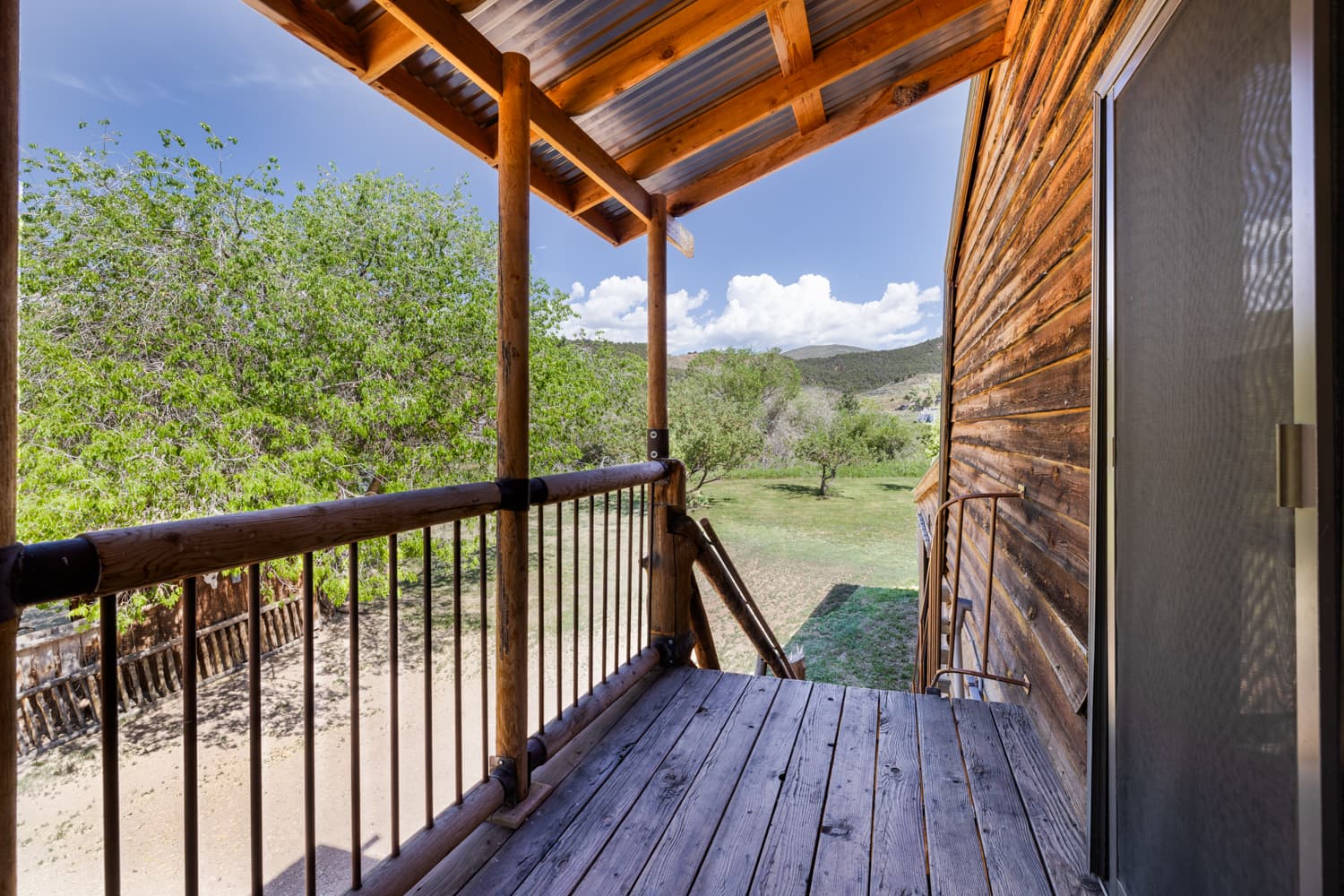 Next door to the barn is a sweet Log Guest Cabin with a shady front porch surrounded by Aspen trees, that overlook the pasture and mountains. It has a downstairs queen size bedroom with a sleeping loft. The sitting room and kitchen are open and cozy, with a propane heater for winter. The full bath has been recently remodeled. This cabin has been very popular with Airbnb rentals and is income producing. A controlled tributary of the Whiterocks river meanders through the entire north end of the property.