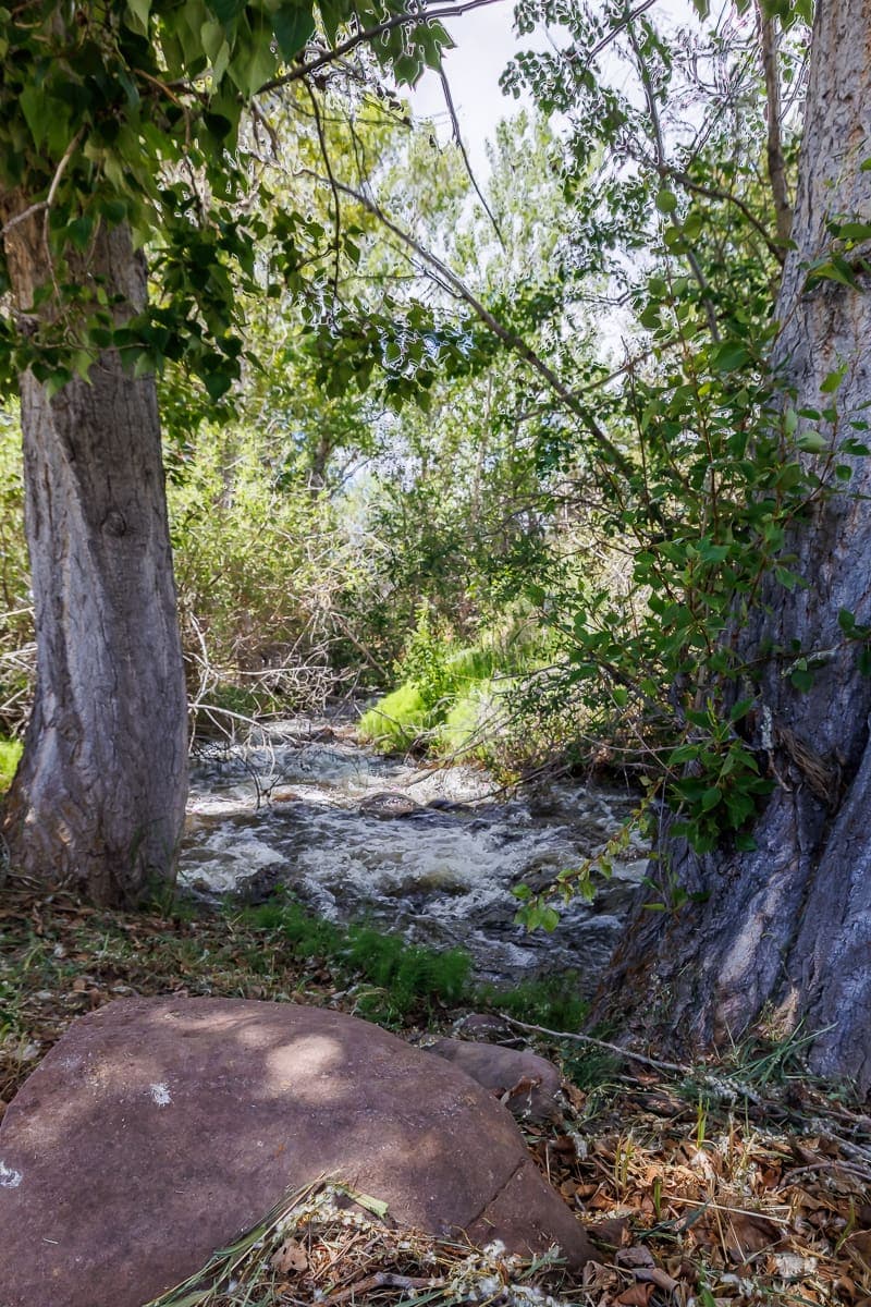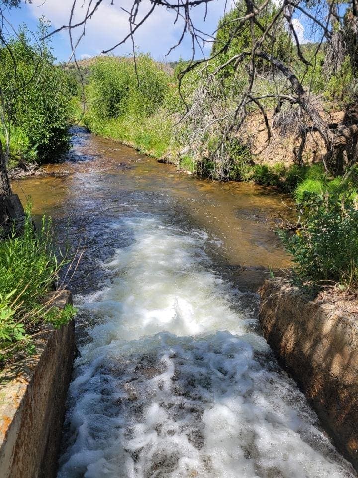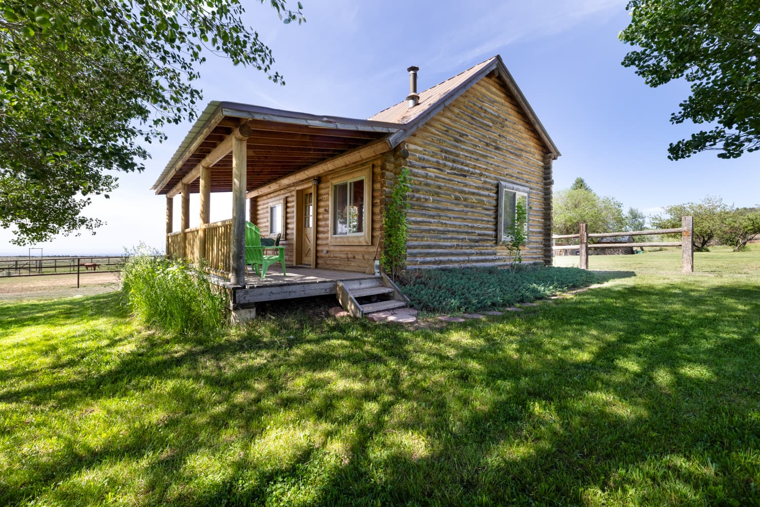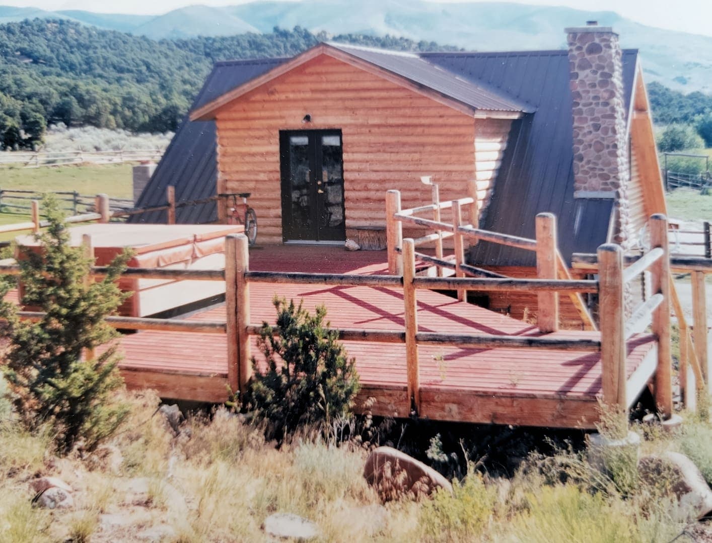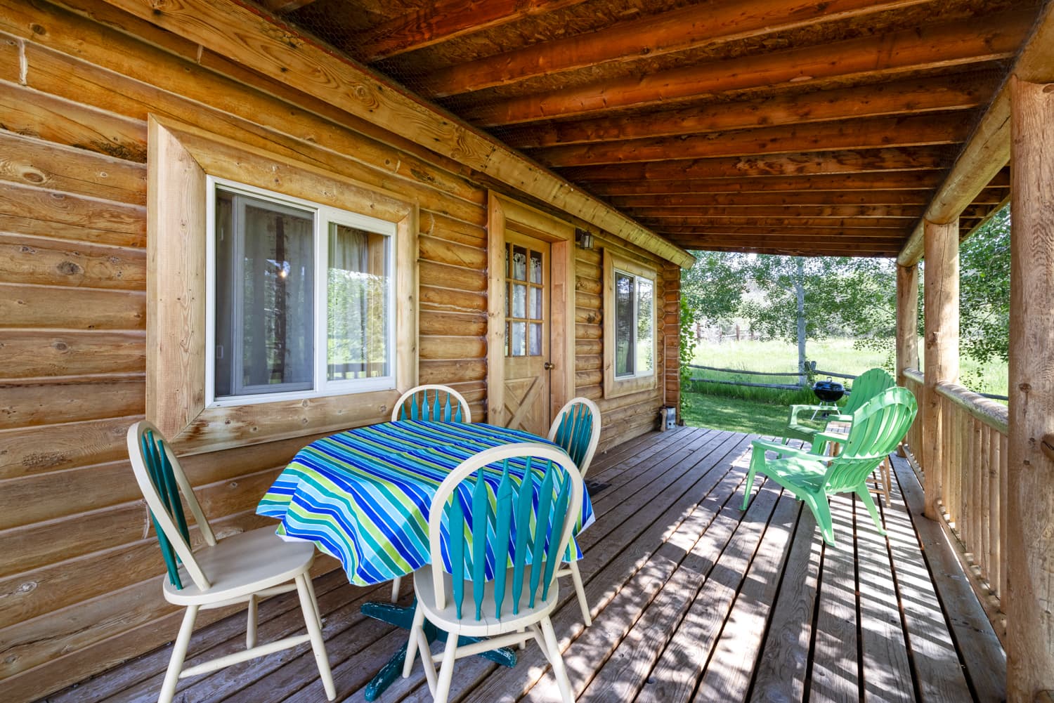 Next door to the barn is a sweet Log Guest Cabin with a shady front porch surrounded by Aspen trees, that overlook the pasture and mountains. It has a downstairs queen size bedroom with a sleeping loft. The sitting room and kitchen are open and cozy, with a propane heater for winter. The full bath has been recently remodeled. This cabin has been very popular with Airbnb rentals and is income producing. A controlled tributary of the Whiterocks river meanders through the entire north end of the property.
