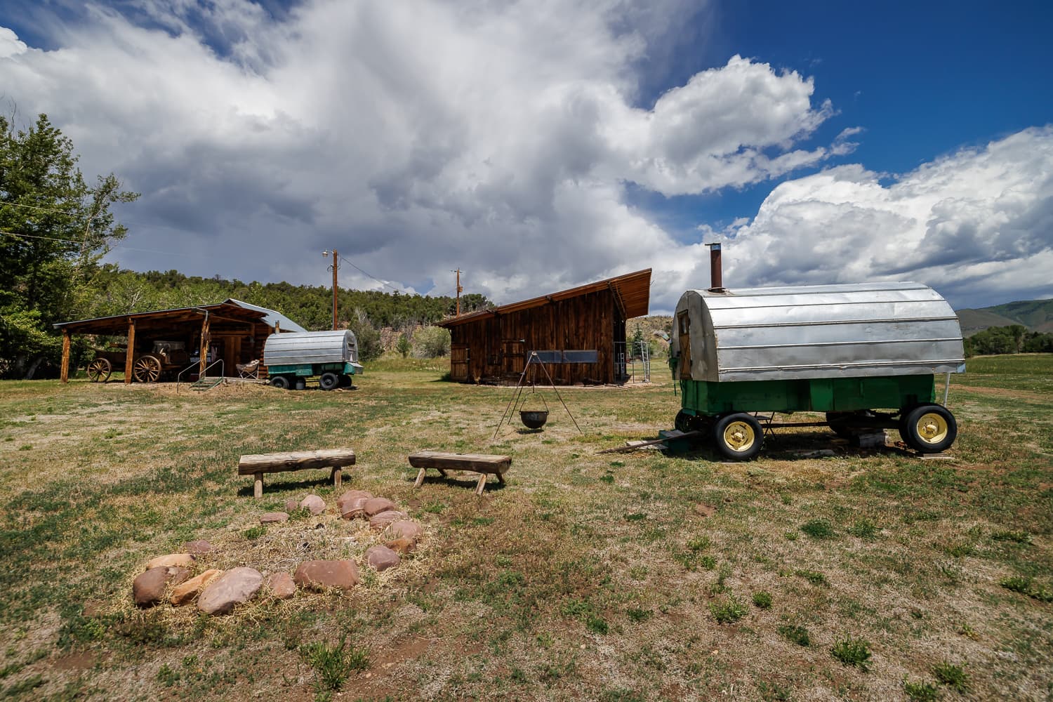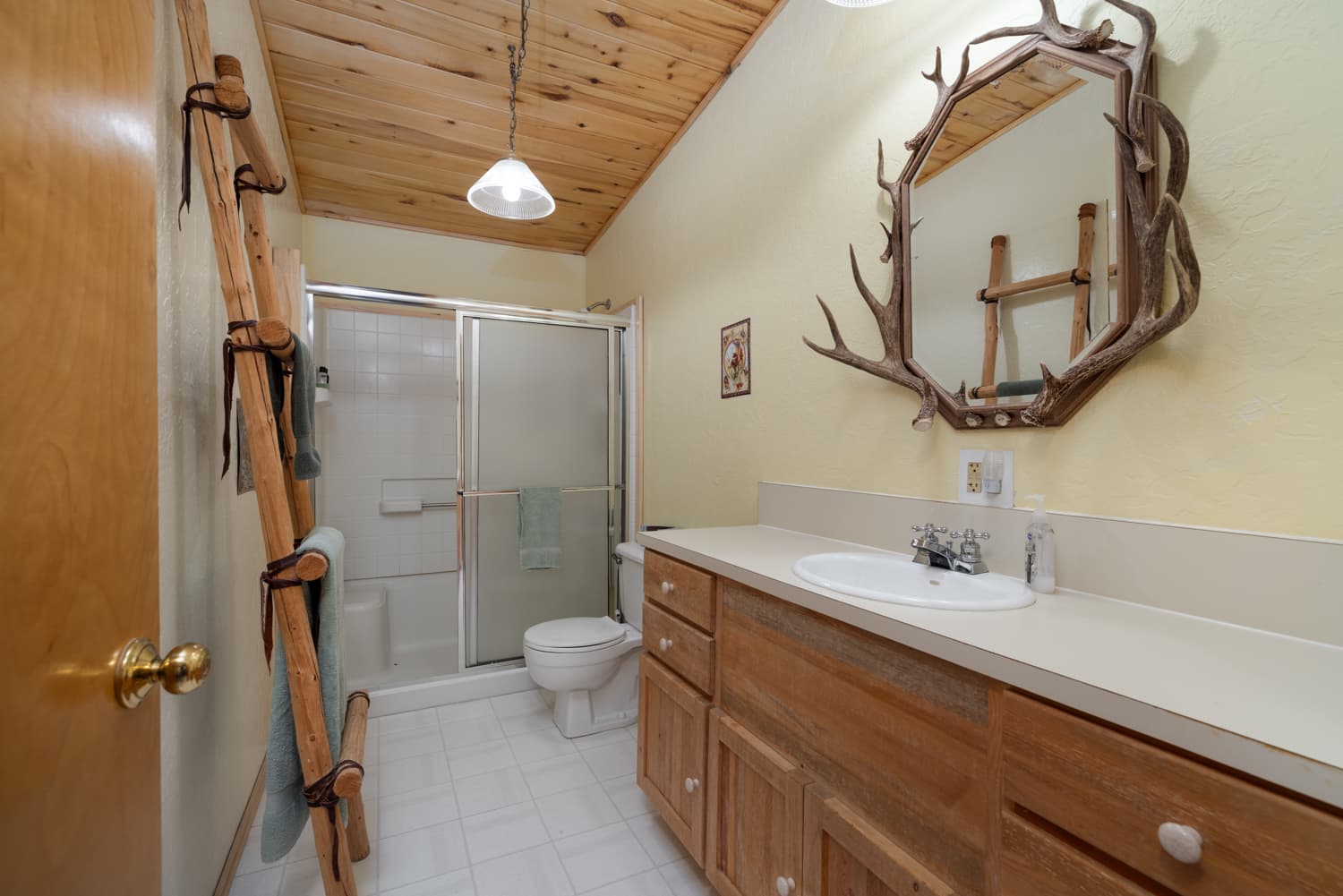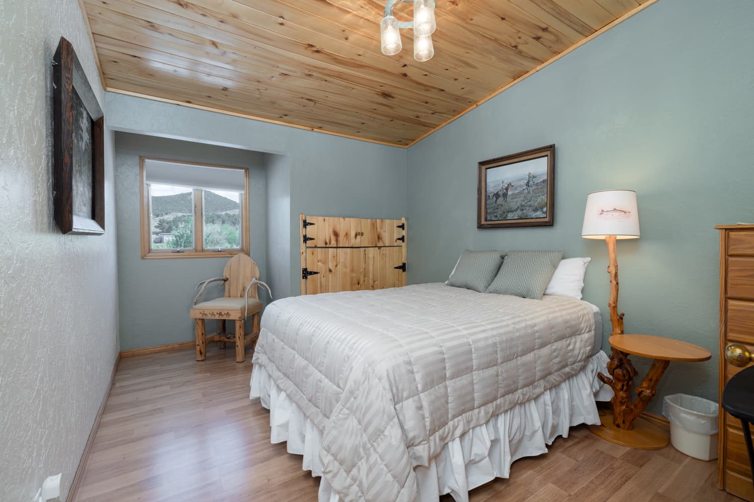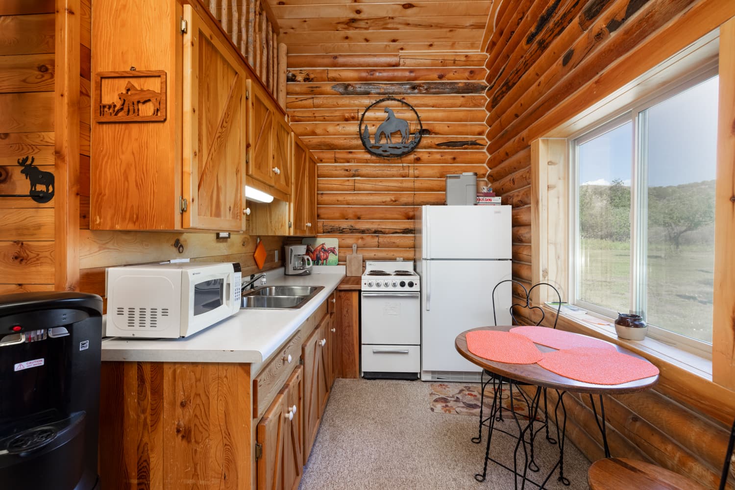 Above the barn is a three Bedroom Apartment with Living Room, full bath with shower. The Aspen wood vaulted ceilings in the living room and the main bedroom give the cabin a great western feel. The kitchen is well equipped with refrigerator, dishwasher, electric stove and laundry area.
