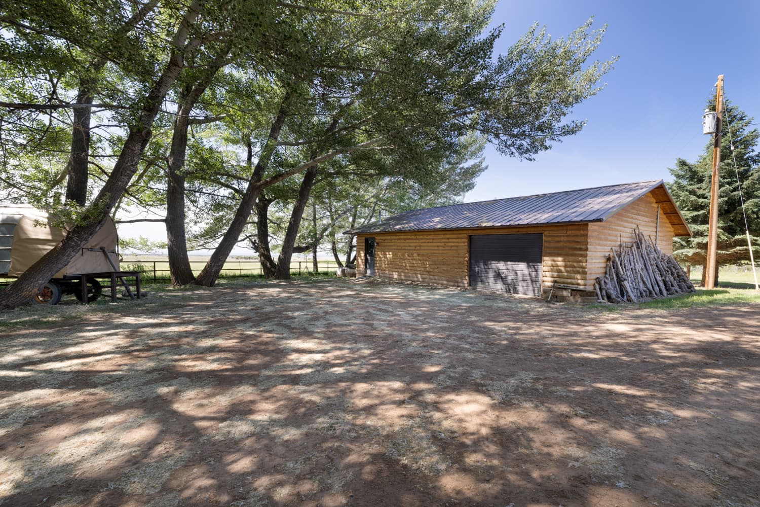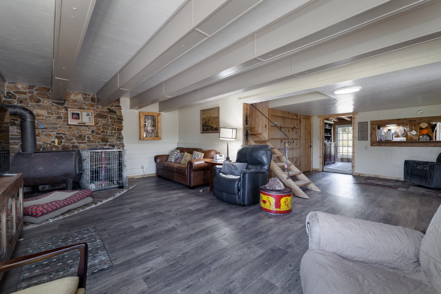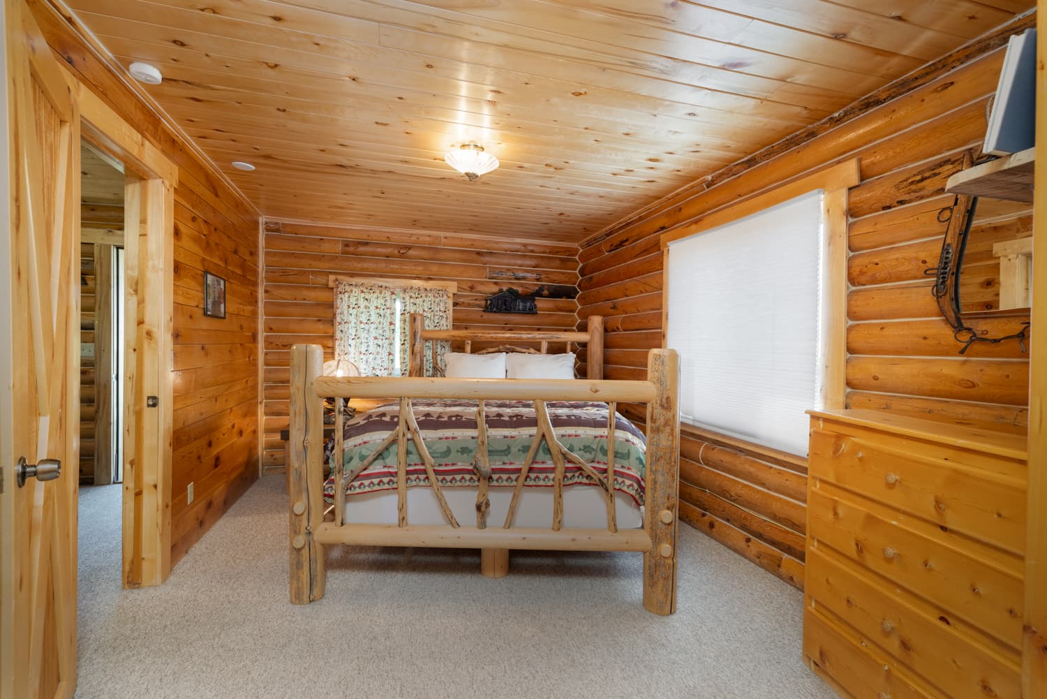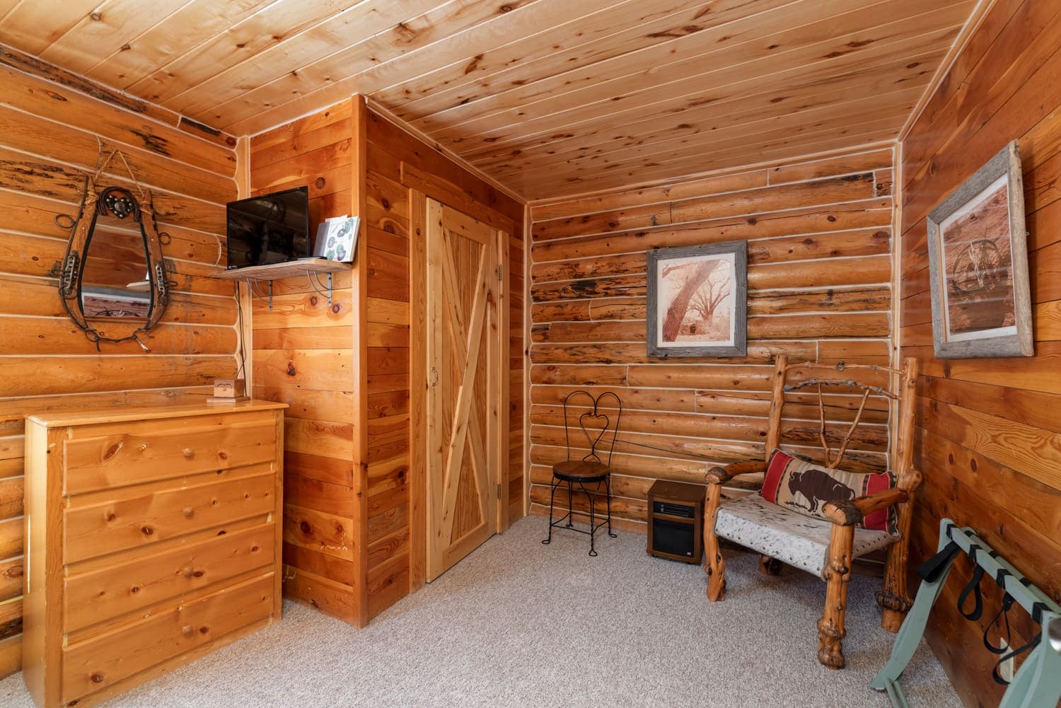 Last but not least is the Main Home on the ranch. It is frame built with Log siding. There is a nice authentic western/rustic feel to the house inside and out. Two large picture windows in the living room display a wide assortment of the wildlife in the area, as they meander around the ranch. The downstairs is a nice open living and dining area. The shiplap walls, with painted ceiling beams and laminate wood flooring were recently remodeled. The Kitchen is rustic with log walls and ceiling. There is an electric range refrigerator and dishwasher. The Bathroom is also log, with large antique claw foot tub and shower.